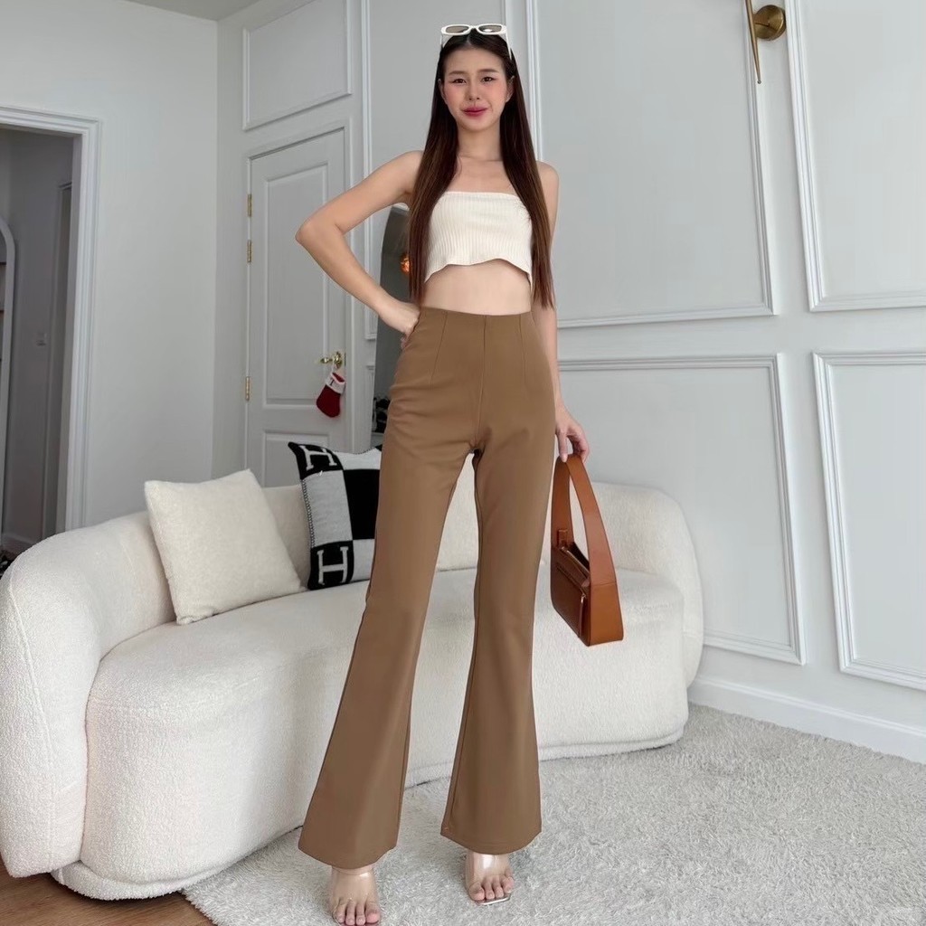 [asava ss24] Addison Straight-Leg Pants กางเกงผู้หญิง ทรงตรง เอวสูง ขายาว แต่งตะเข็บหน้า แต่งดีเทลกระเป๋าด้านหน้า