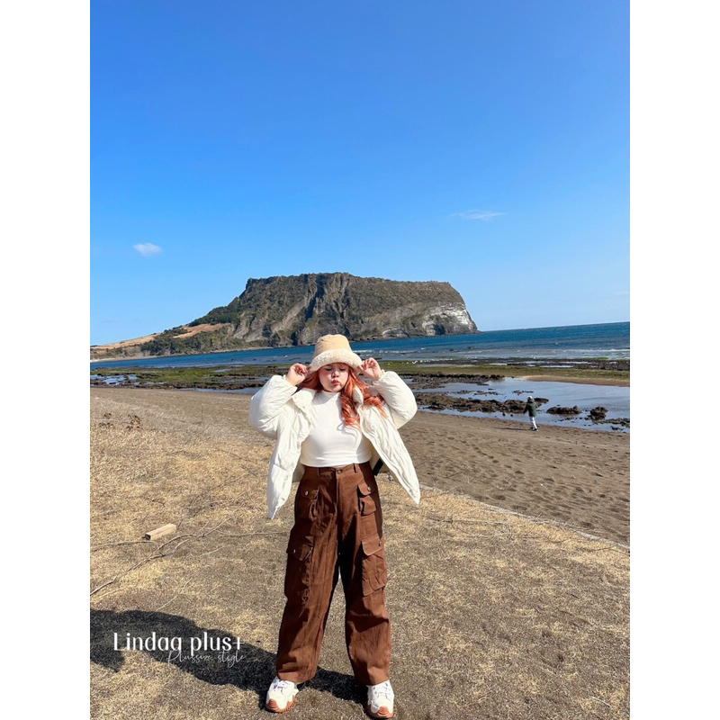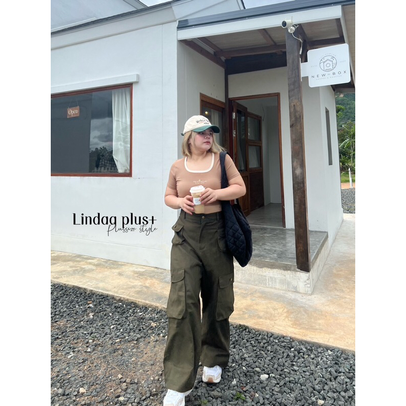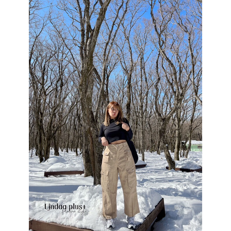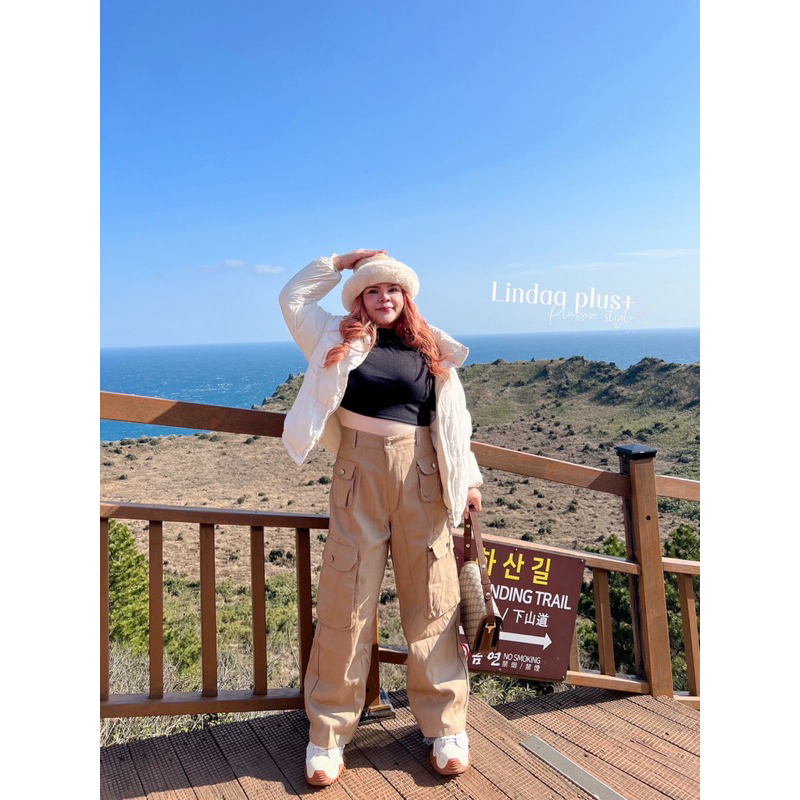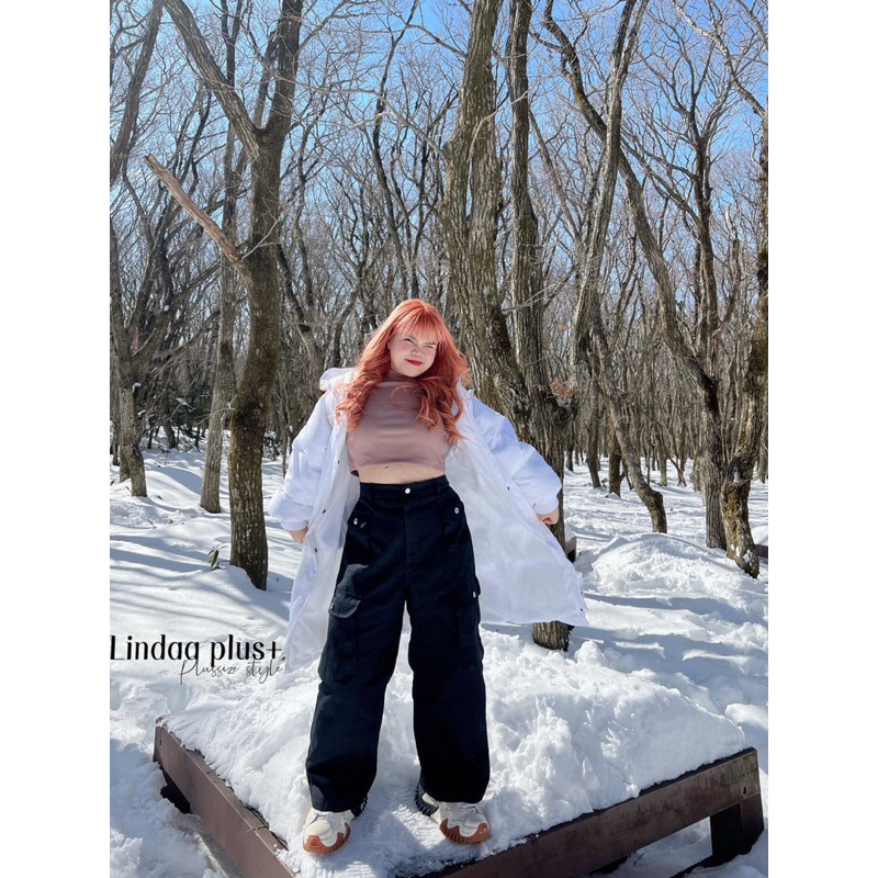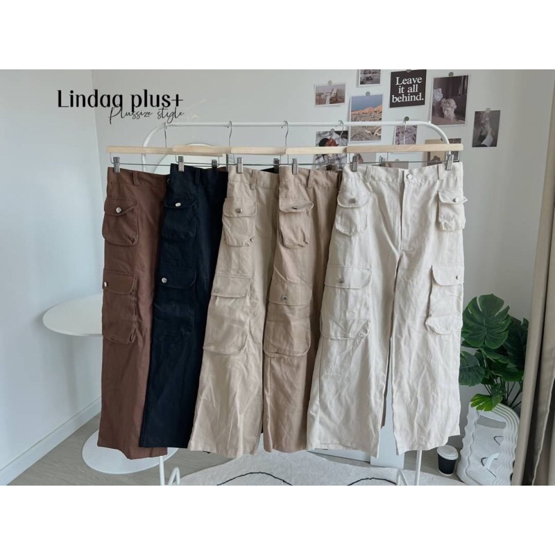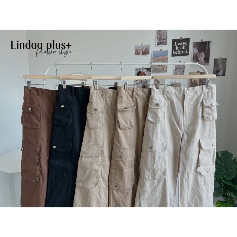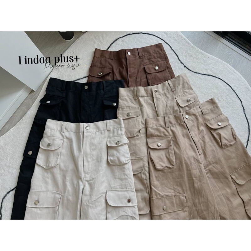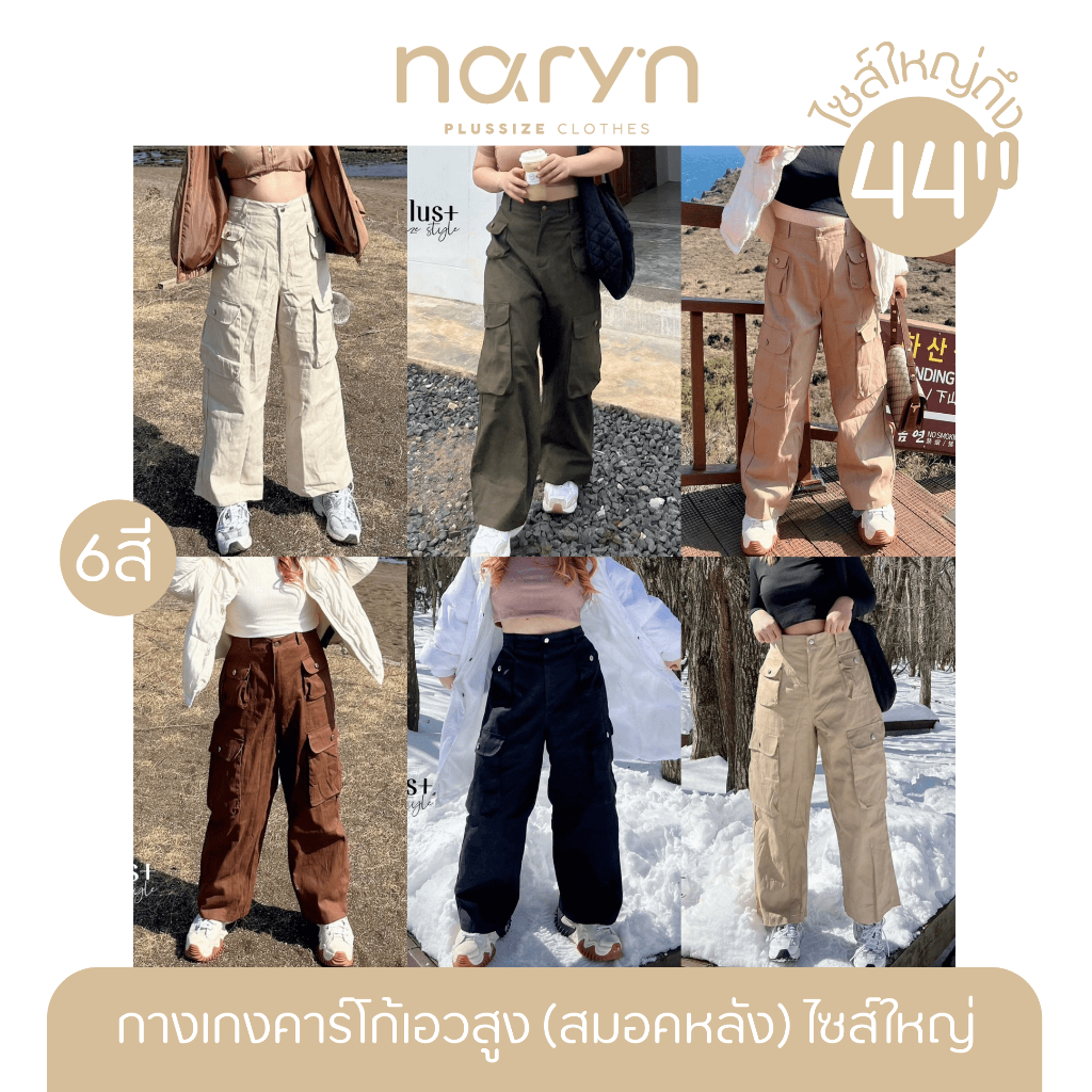 [LIVEมีโค้ดลด50% รุ่นขายดี!] กางเกงคาร์โก้เอวสูง รุ่นกระเป๋าโค้งปั๊มกระดุม สาวอวบไซส์ใหญ่ (มีไซส์เอว30-44)
