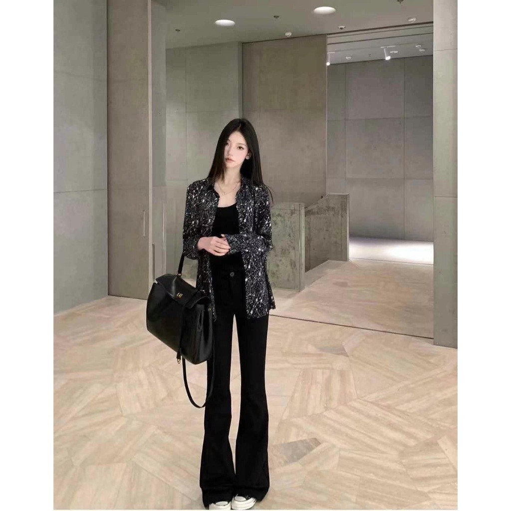 🔥กางเกงผู้หญิงทรงหลวมผ้าลื่น🔥 กางเกง 8 ส่วน ผ้าไหมน้ำแข็ง กางเกงผู้หญิง ขากว้าง ขาบาน ทรงสูง ผ้าลื่น ใส่สบาย K929