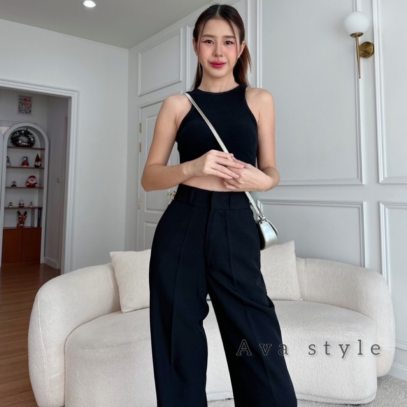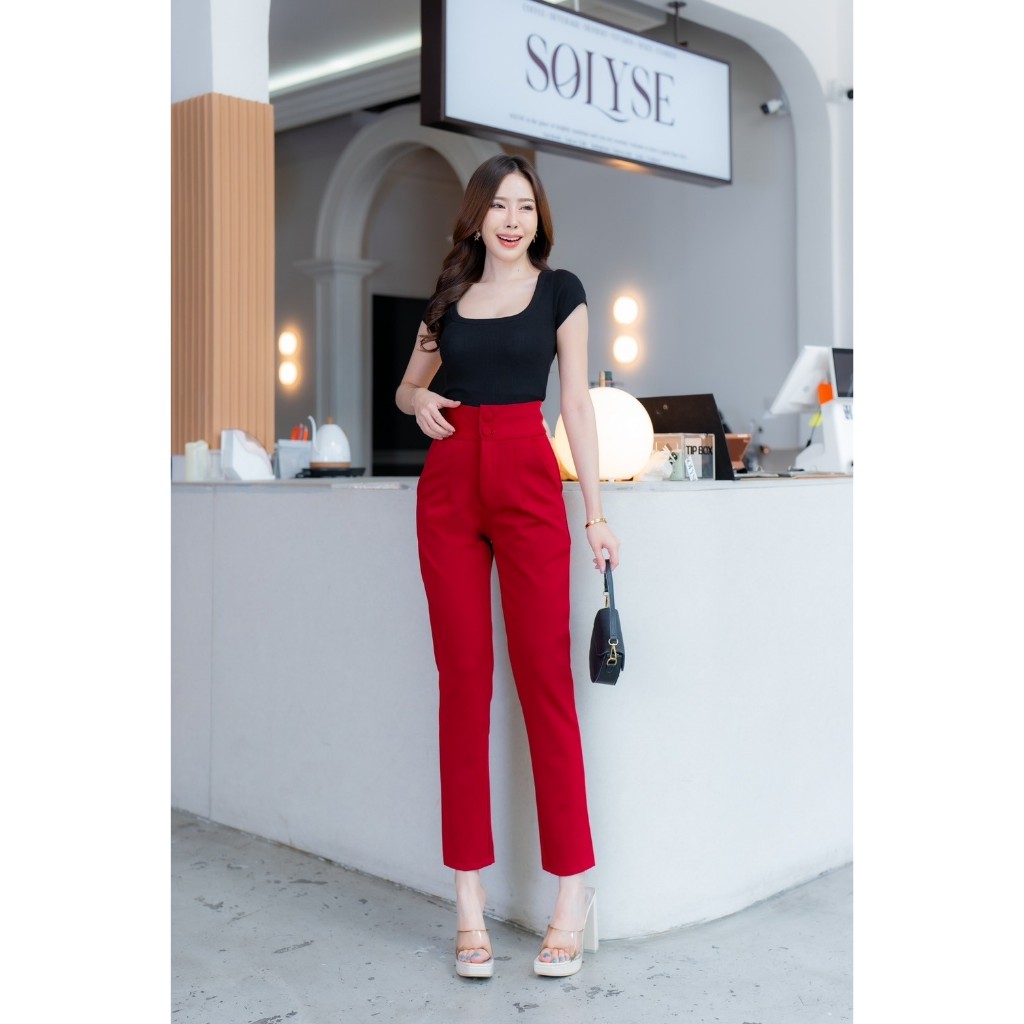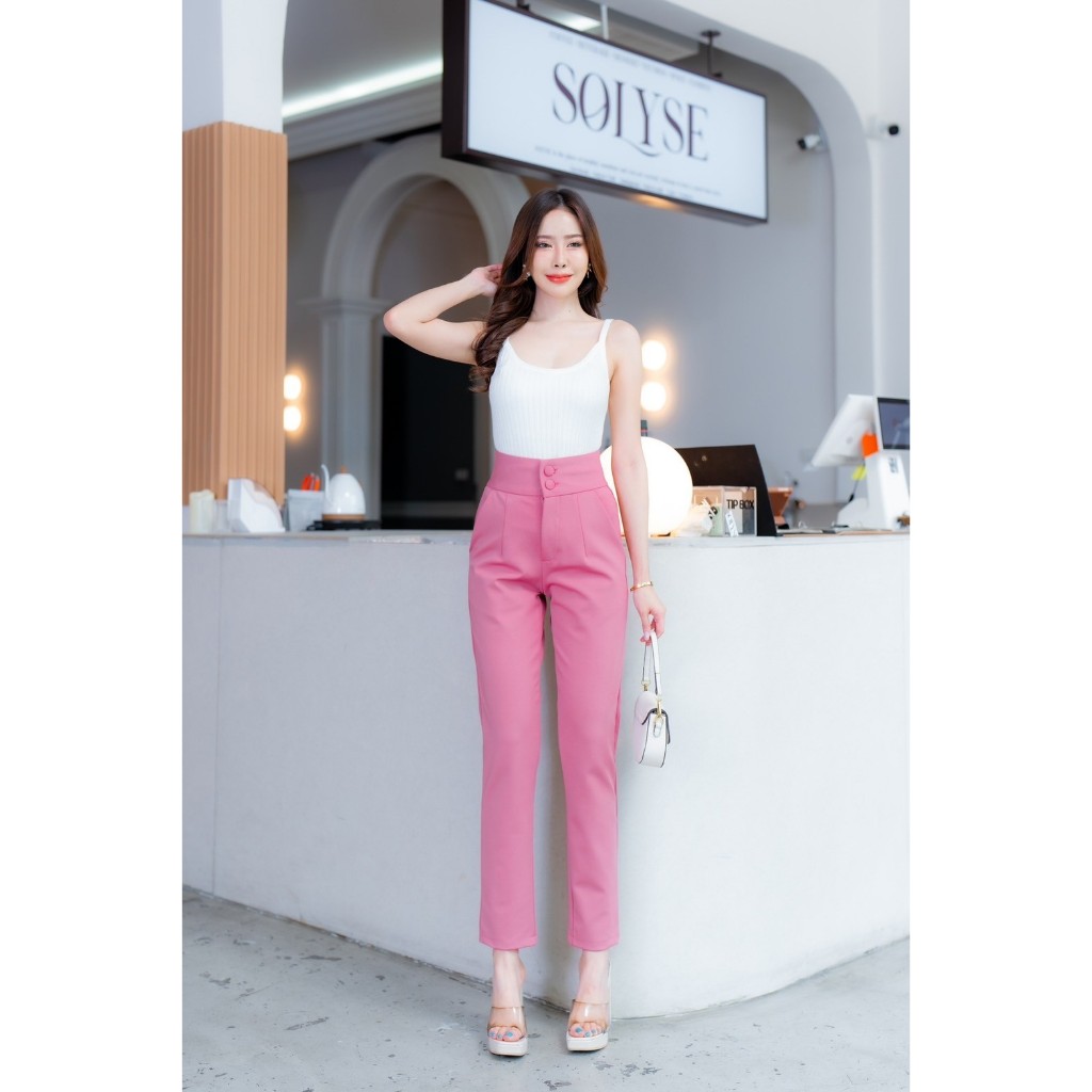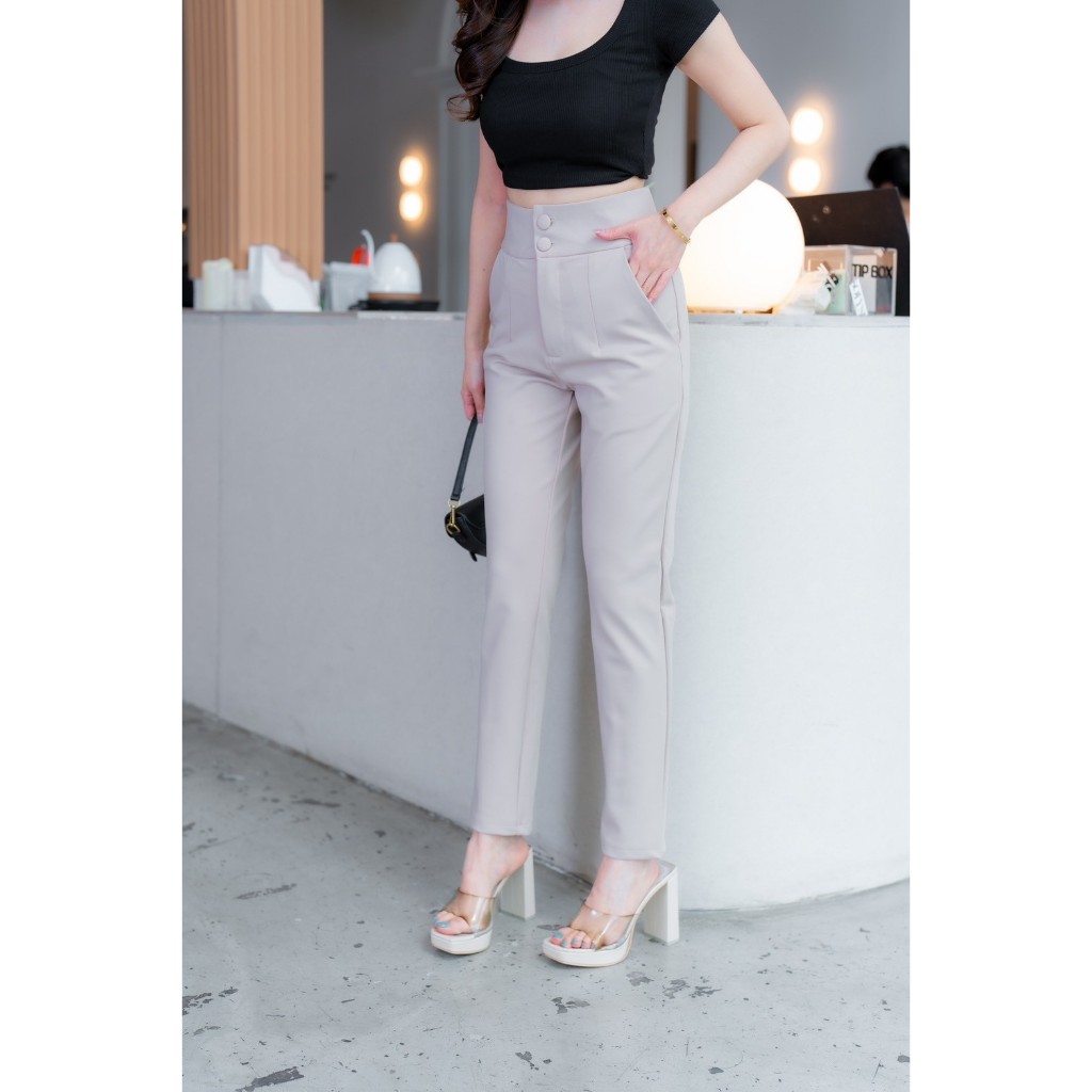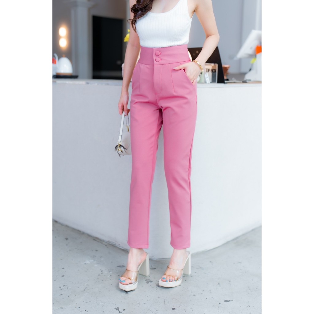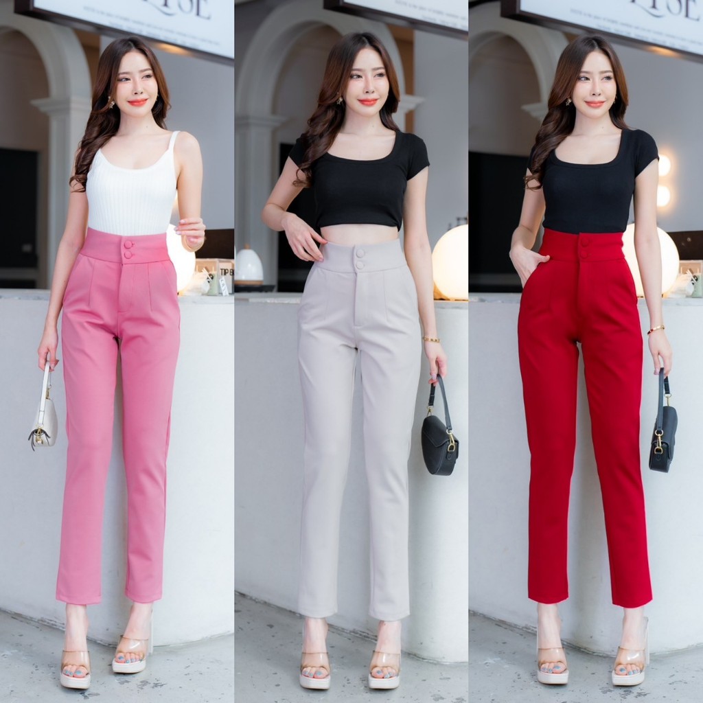 🔥G377#1🔥 กางเกงเอวสูง ขาเก้าส่วน กระดุมปั้ม 2 เม็ด ผ้าโรเชฟ ขาเดฟ 9 ส่วน กางเกงเก้าส่วน ใส่ทำงาน