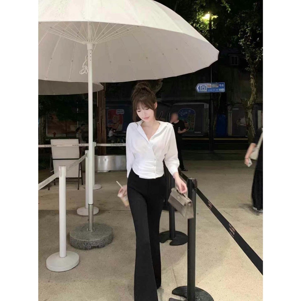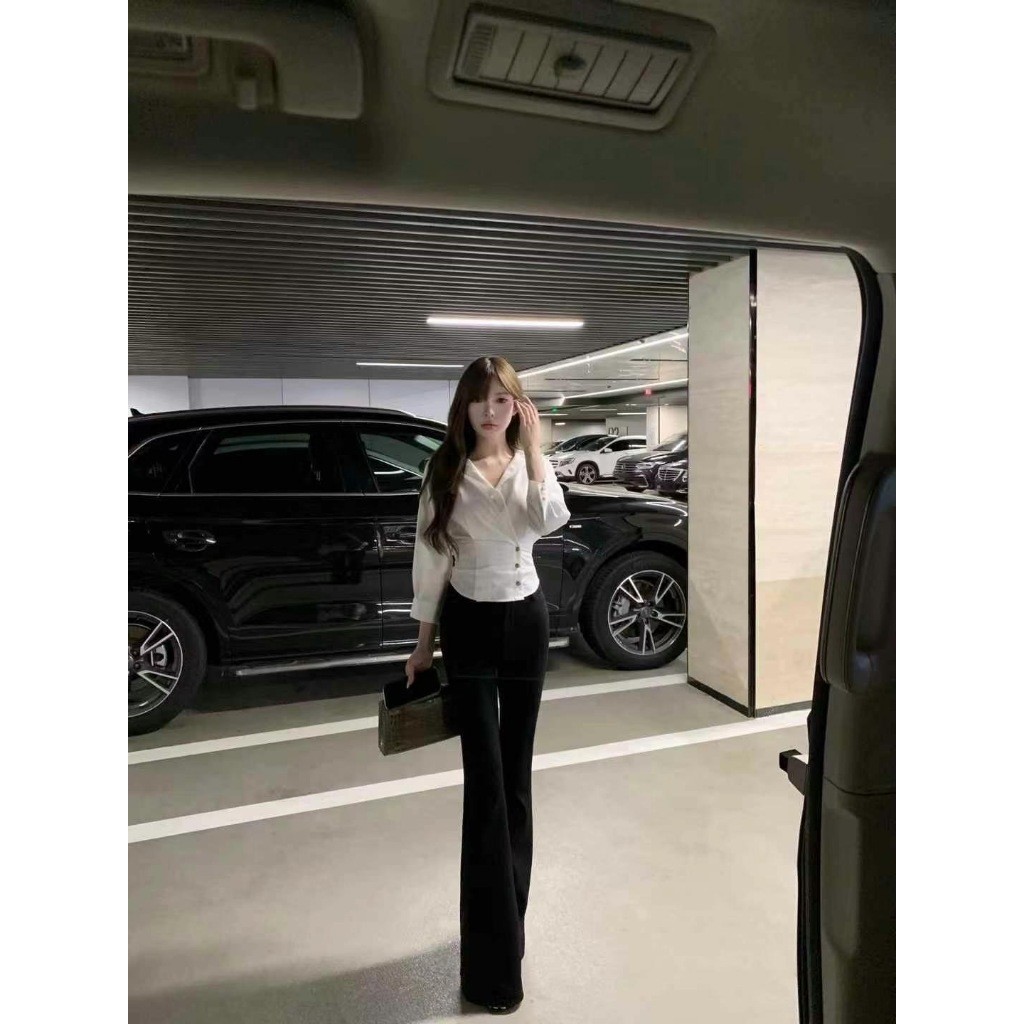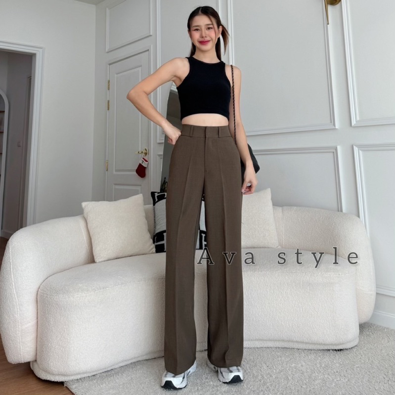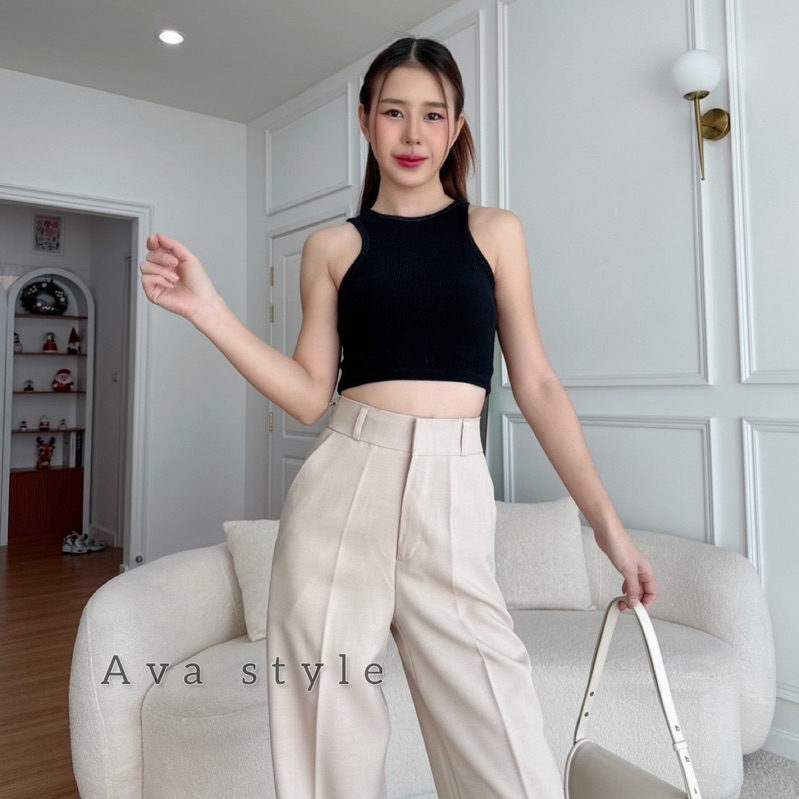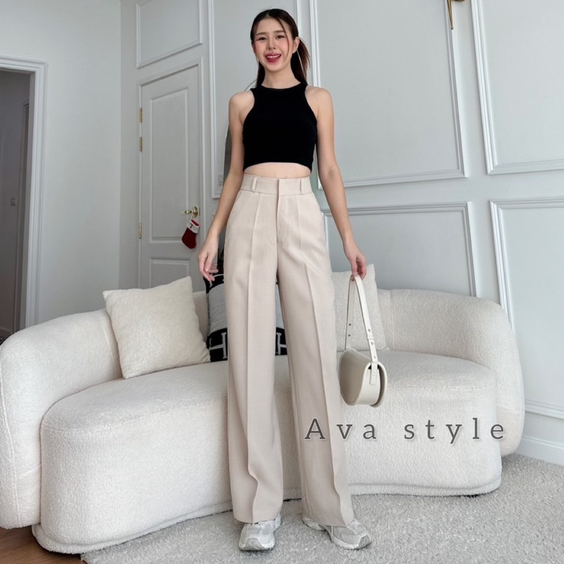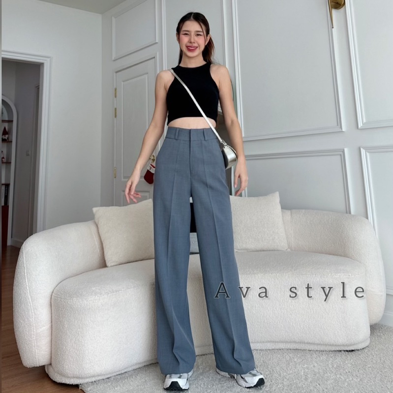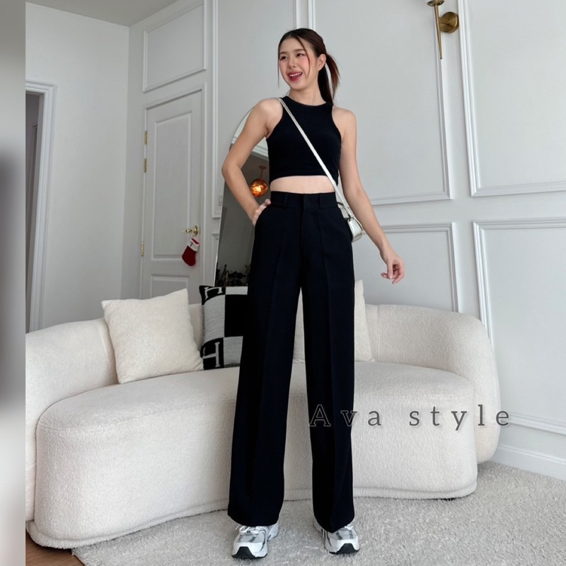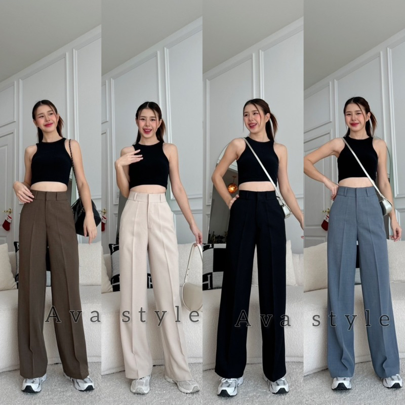 🔥G377#1🔥 กางเกงเอวสูง ขาเก้าส่วน กระดุมปั้ม 2 เม็ด ผ้าโรเชฟ ขาเดฟ 9 ส่วน กางเกงเก้าส่วน ใส่ทำงาน