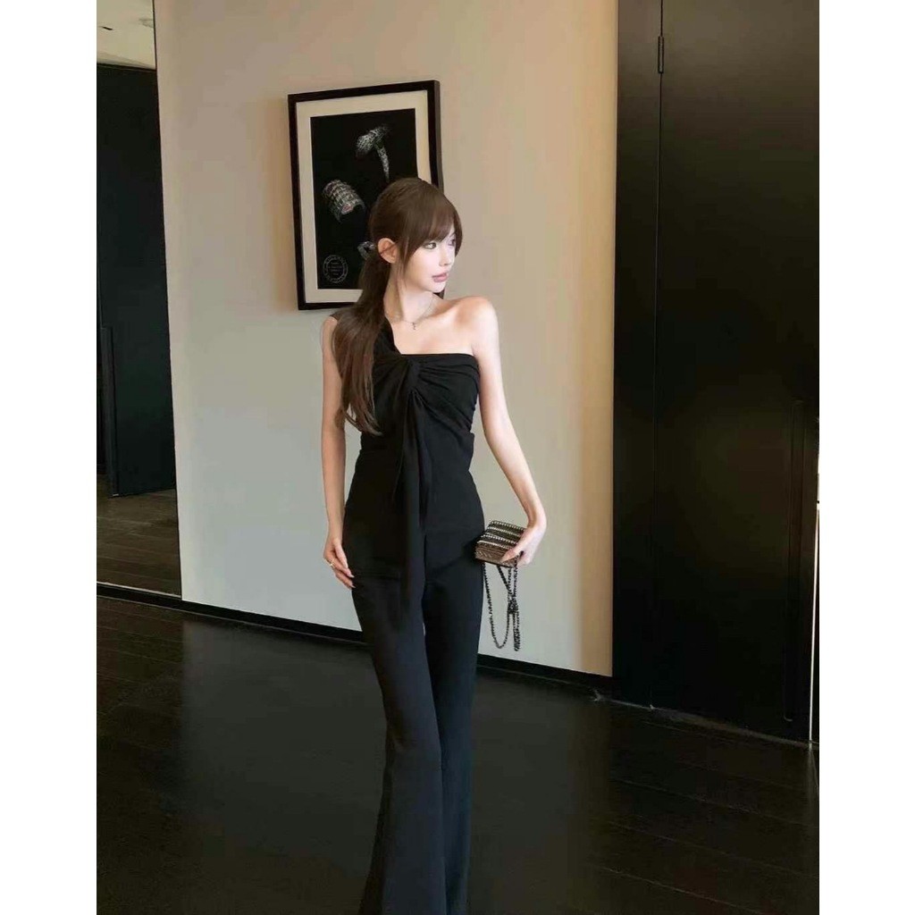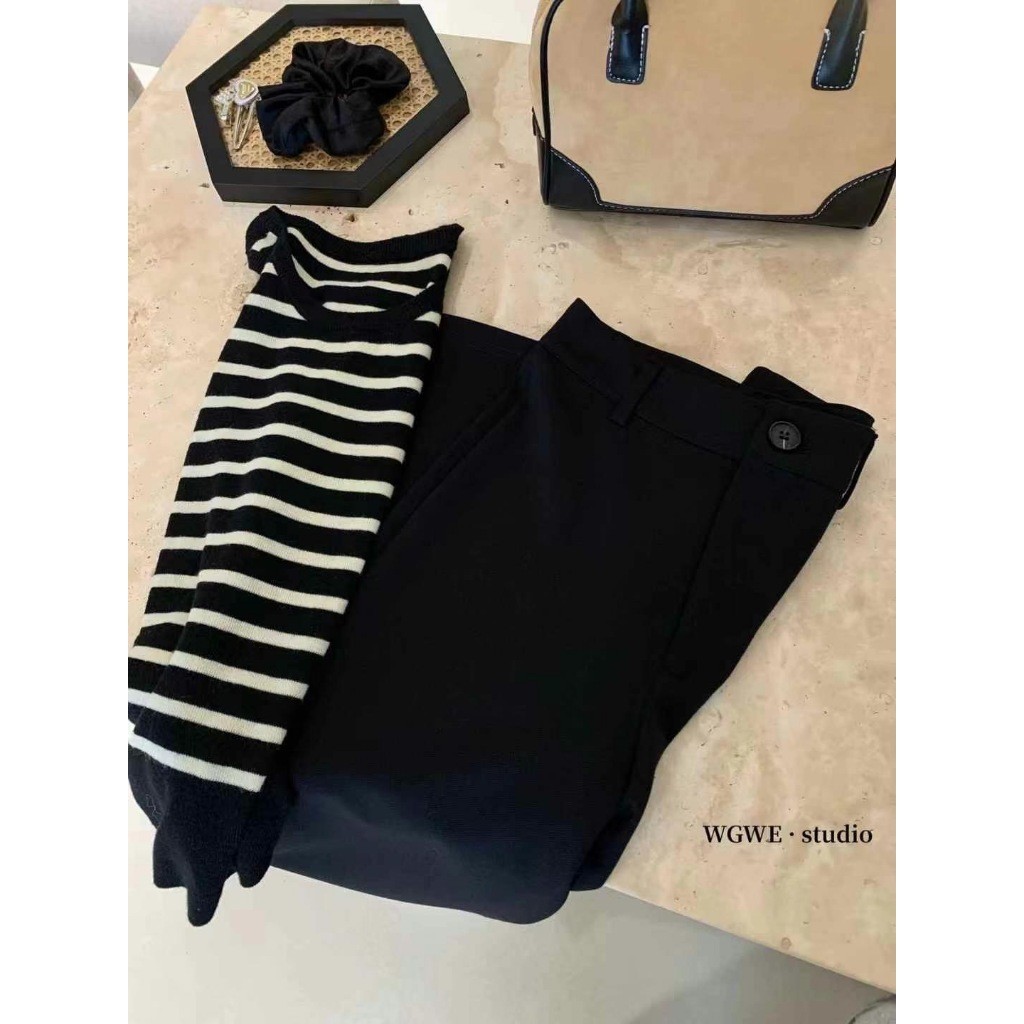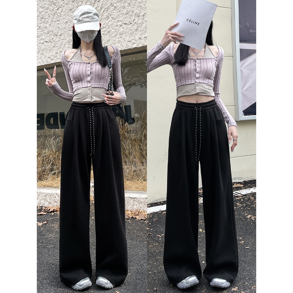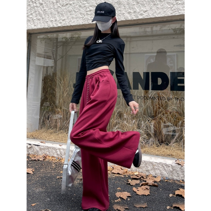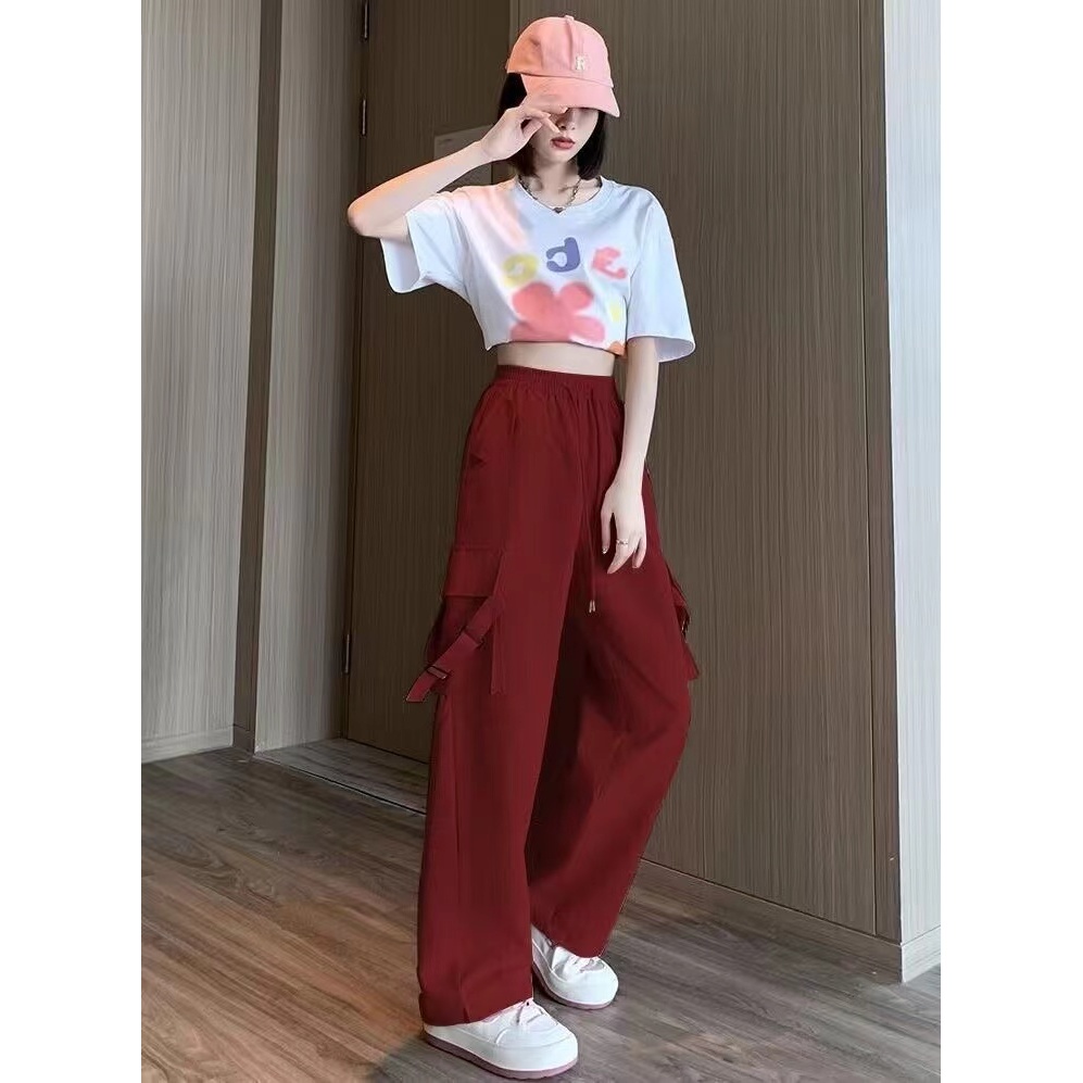 🤗กางเกงเอวสูงสไตล์เกาหลีผู้หญิง กางเกงขากว้าง กางเกงลำลอง ทรงหลวม มีเชือกผูก