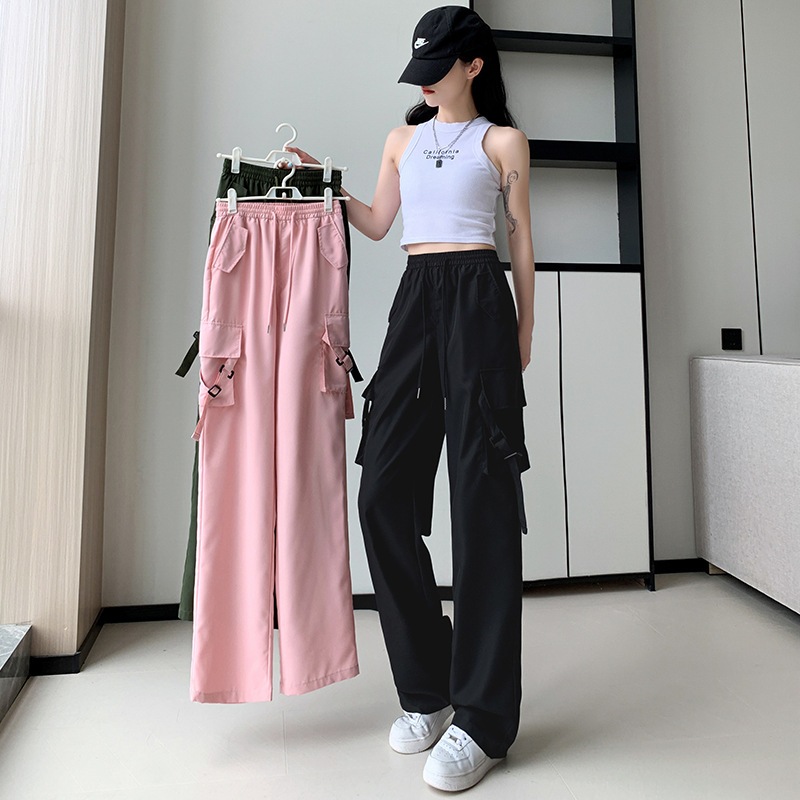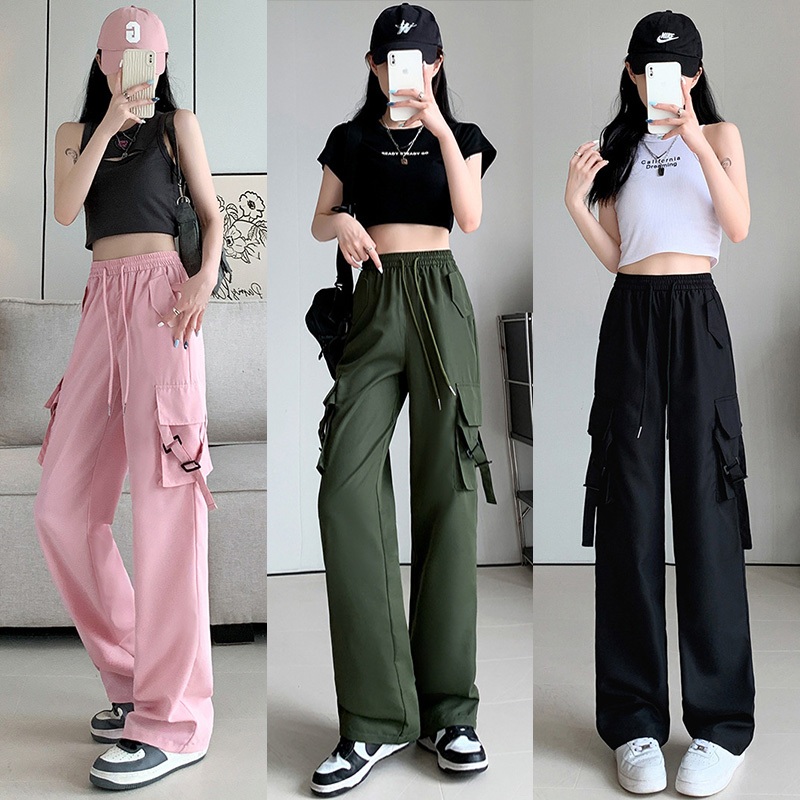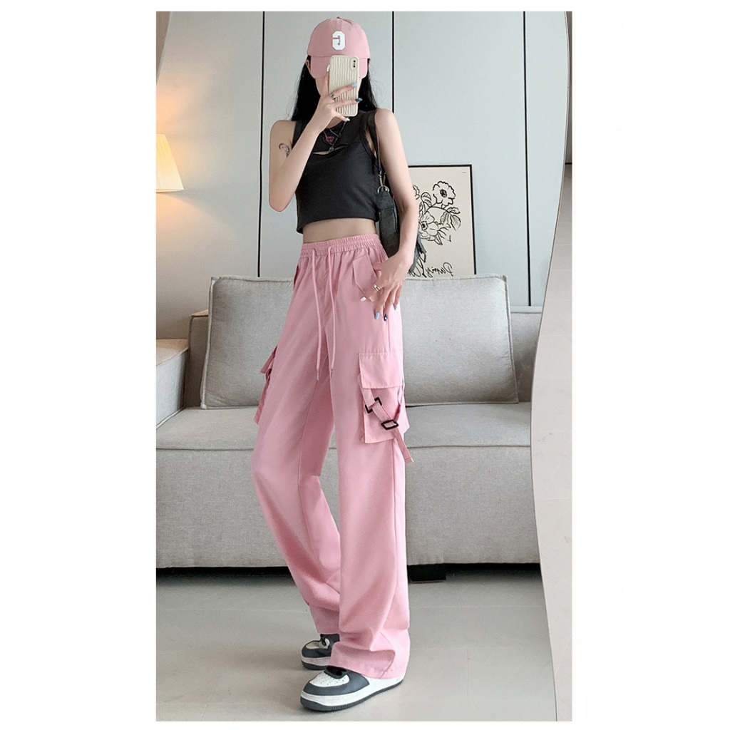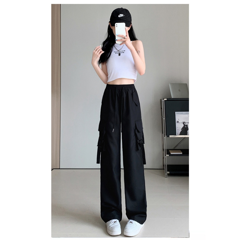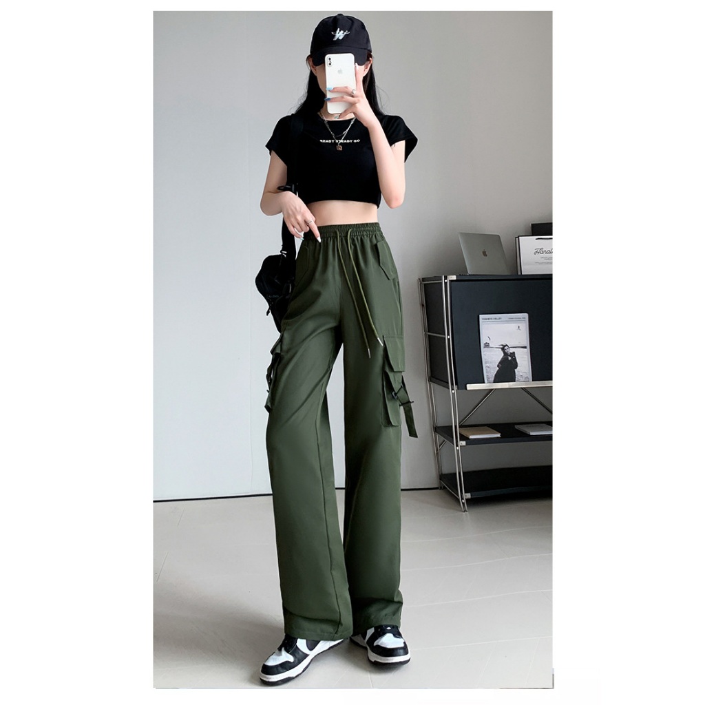 🚚พร้อมส่ง* ใหม่ ! กางเกงคาร์โก้ผู้หญิ กางเกงลำลอง กางเกงเอวสูง กระเป๋าตรง 2ใบ มีเชือกที่เอว S-2XLมี5ไซส์