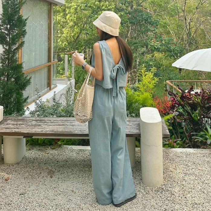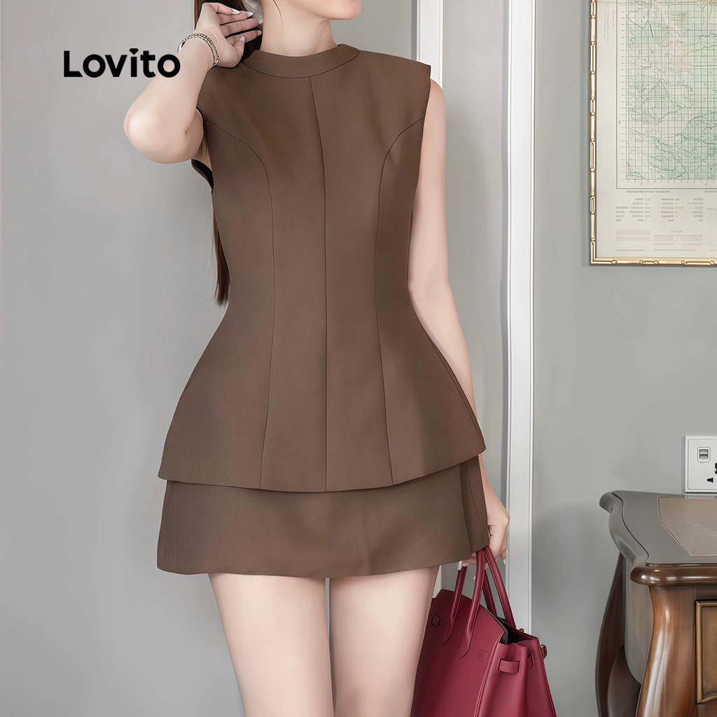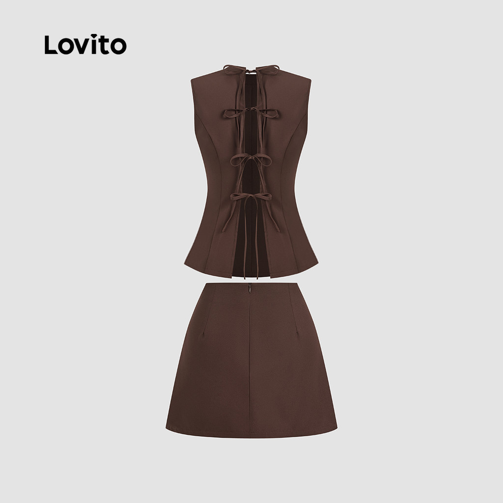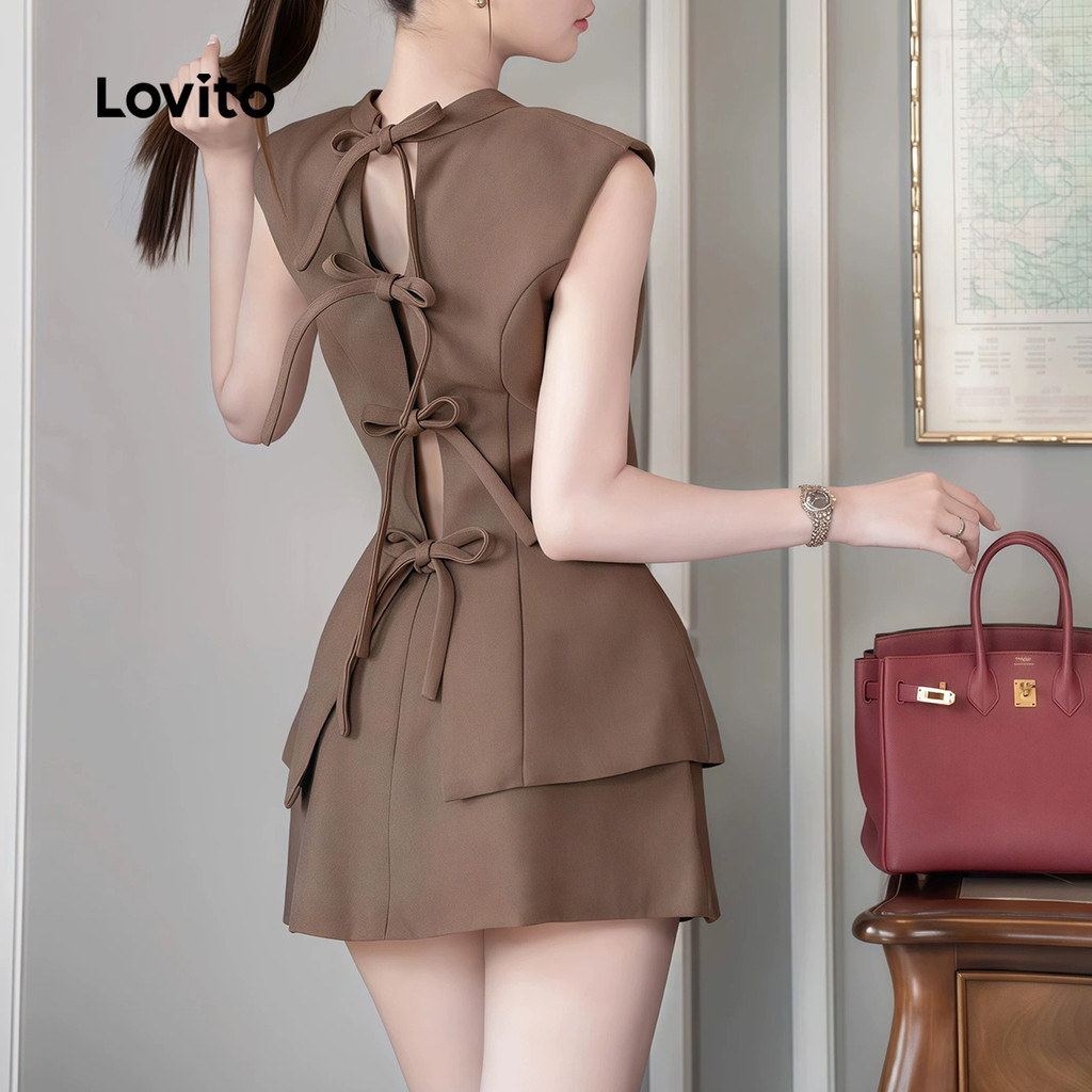 (New) Lovito ชุดกระโปรงเรียบหรูผูกด้านหลัง หลังเปลือย ฤดูใบไม้ผลิ/ฤดูร้อน L142ED436