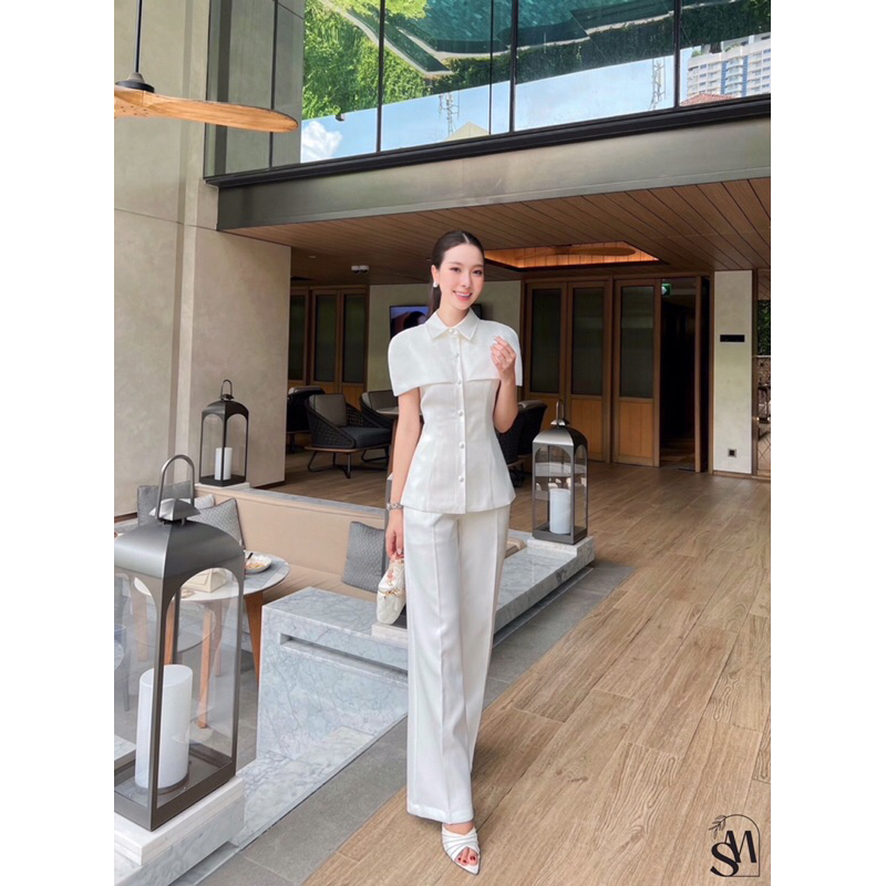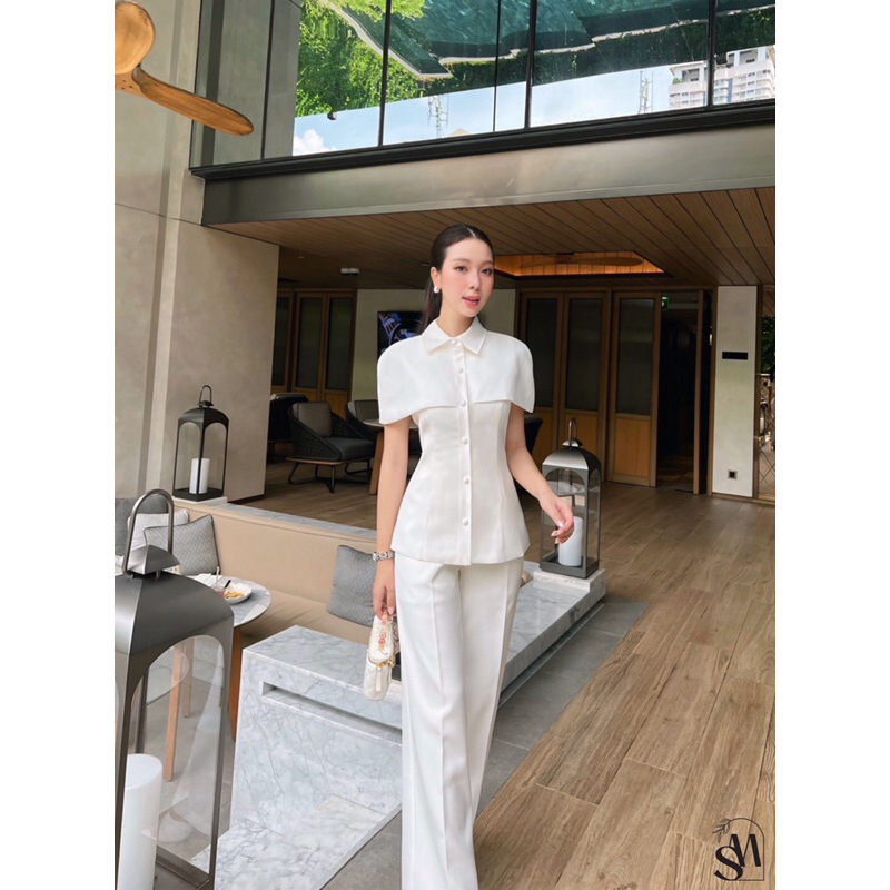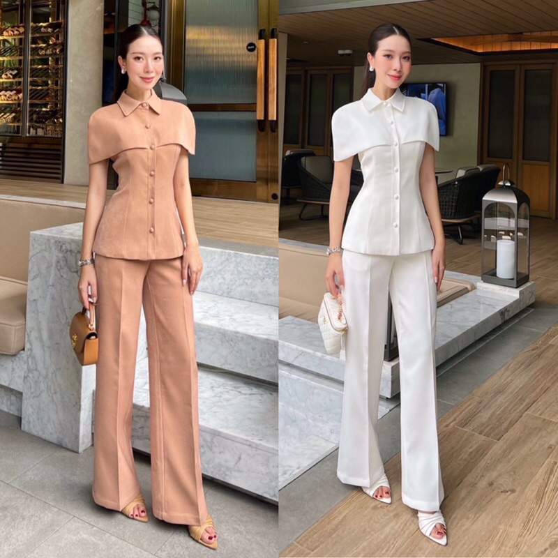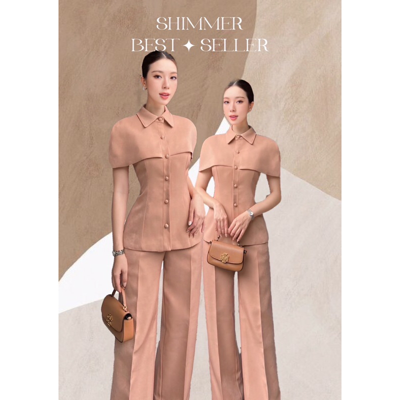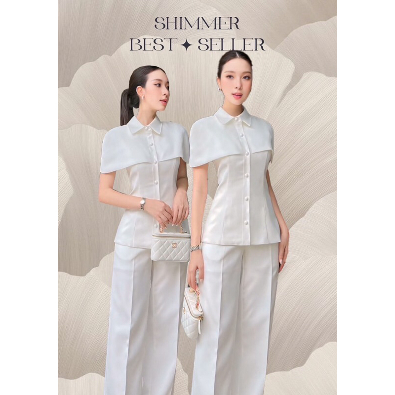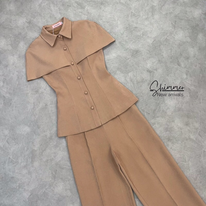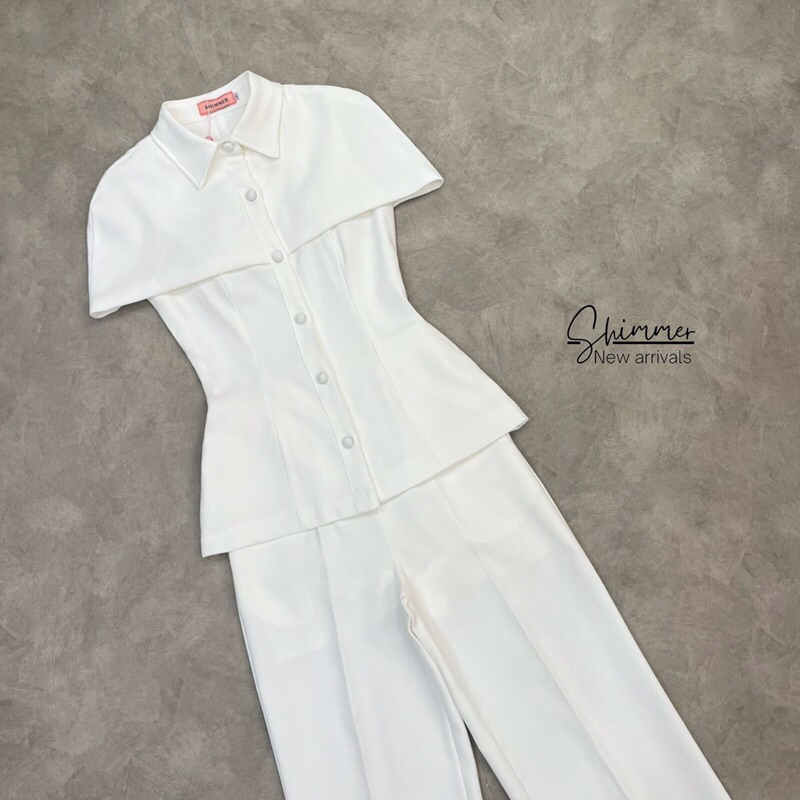 (S-XL)SHIMMER🎯set เสื้อคลุมไหล่+กางเกงขายาว••ออกงาน ทำงาน สวยเรียบหรู
