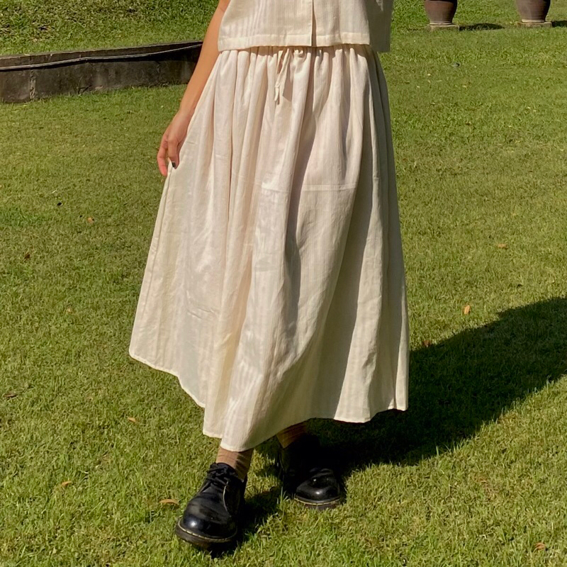 (12.12.โปรเดือน12)E6 ชุดเซตคอกลมโบว์-กระโปรงเวียดนามมีซับใน อก 36-50 เอว28-48 หน้าผ้า44″ ผ้ายูนิโคล่ ยืด นิ่ม