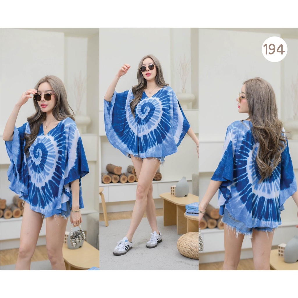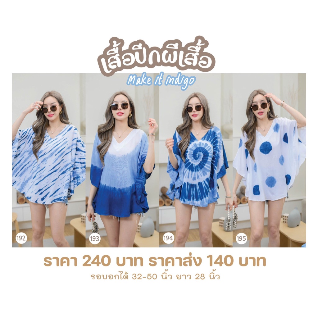 (ร้านค้าส่งไว) ชุดคู่รัก เสื้อปีกผีเสื้อ ชุดไปทะเล เดรสมัดย้อมไปทะเล ย้อมจากครามธรรมชาติ