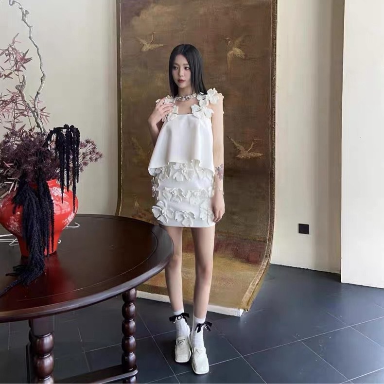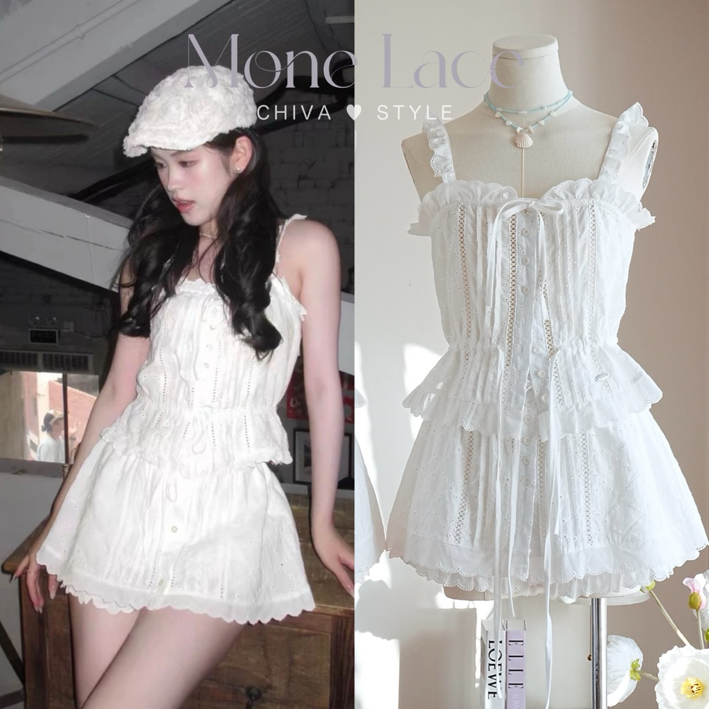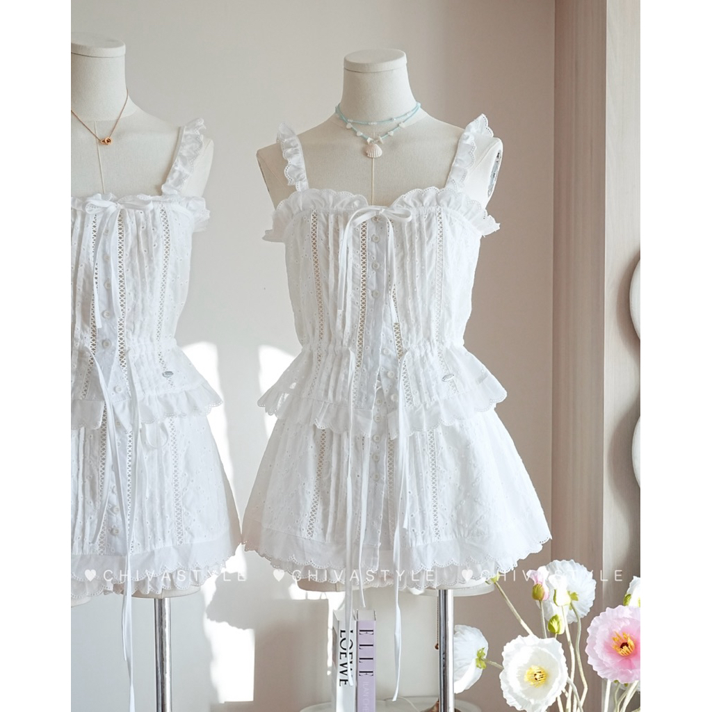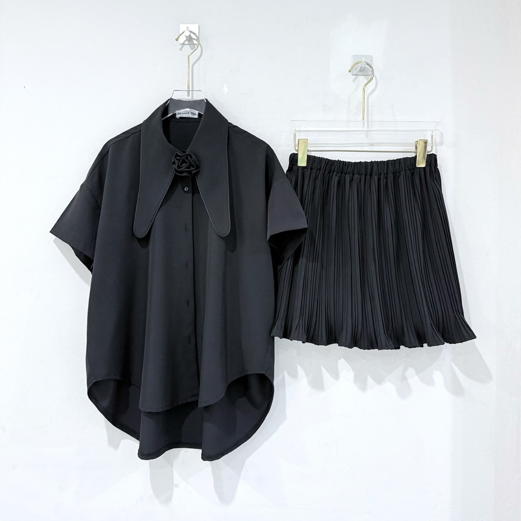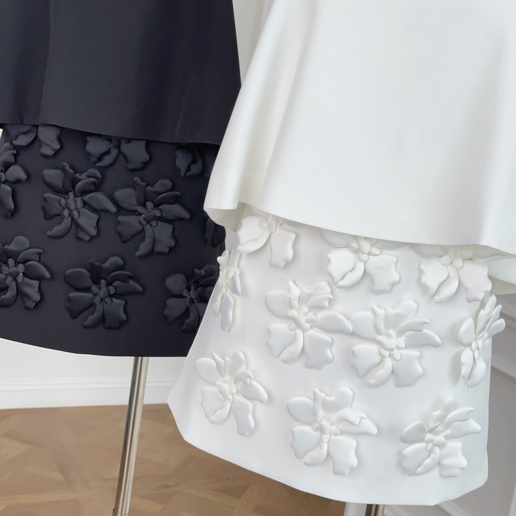 (พร้อมส่ง)รุ่น(GMGTO-เซตสายเดี่ยวดอกไม้สีดำ,สีขาว)ชุดเซ็ท(เสื้อ+กระโปรง)ผ้าซาติน ดีเทลปักดอกไม้สามมิติสายเดี่ยว