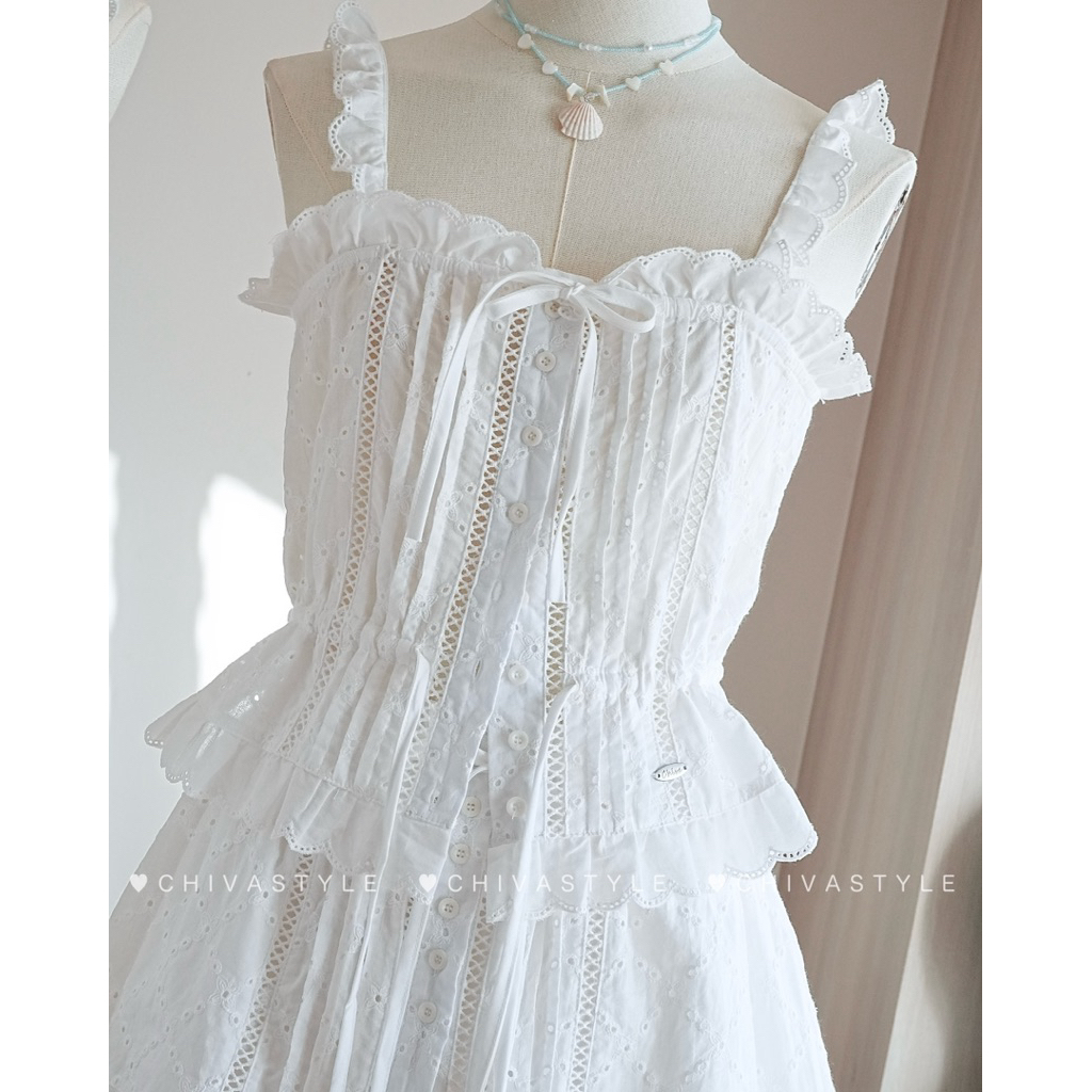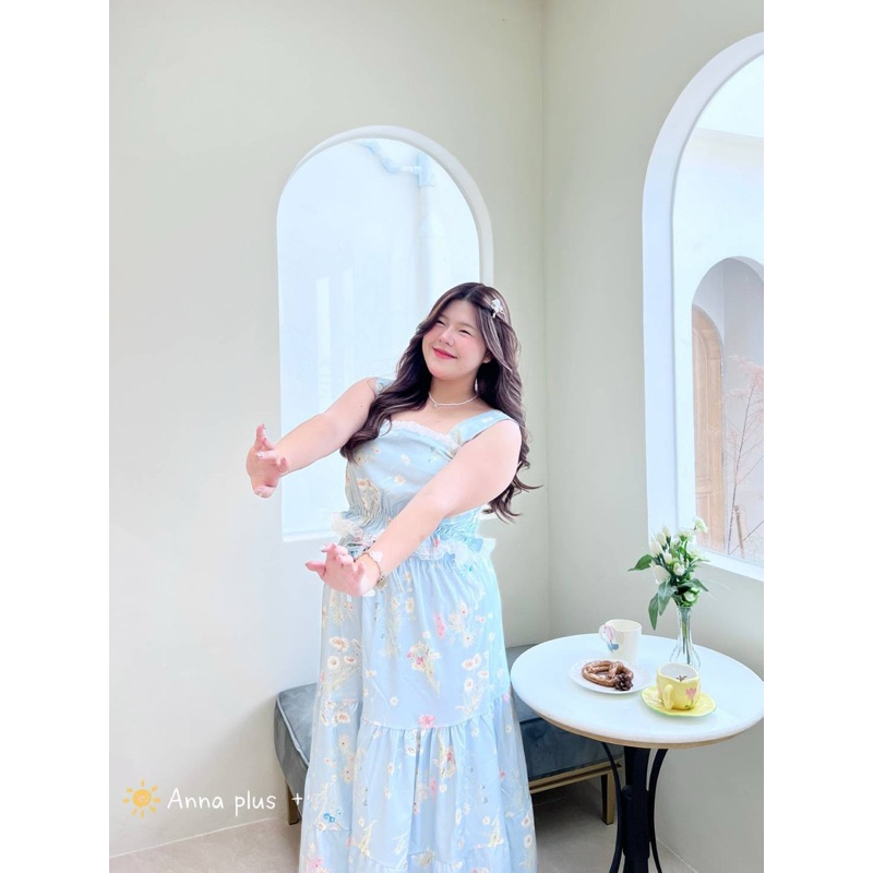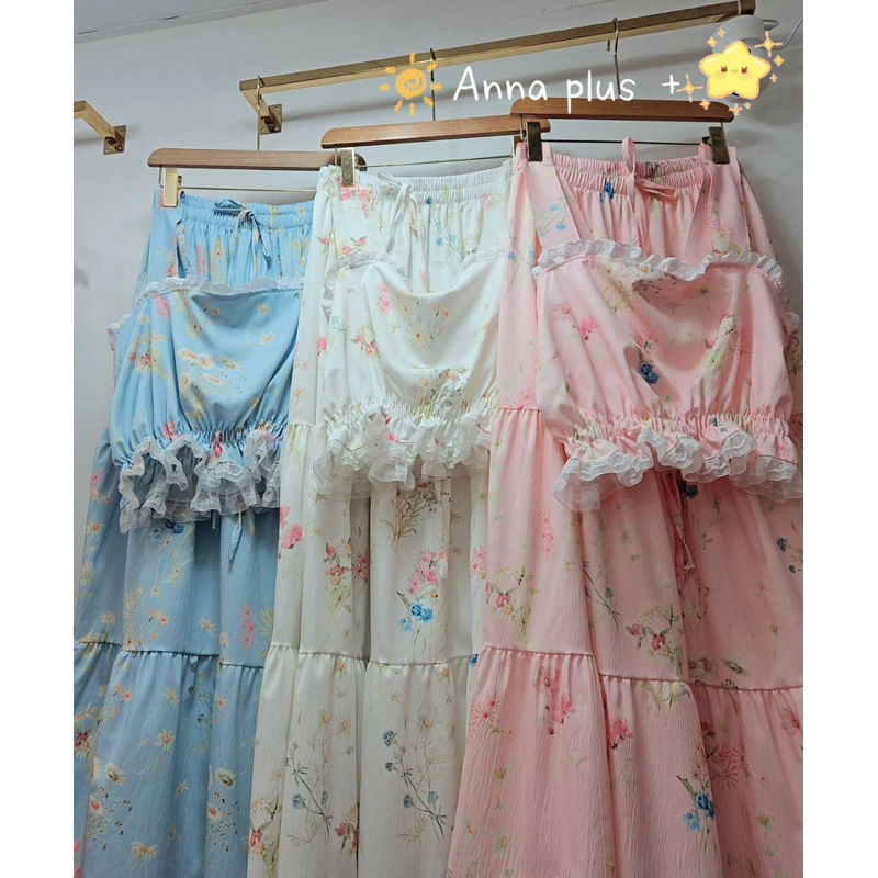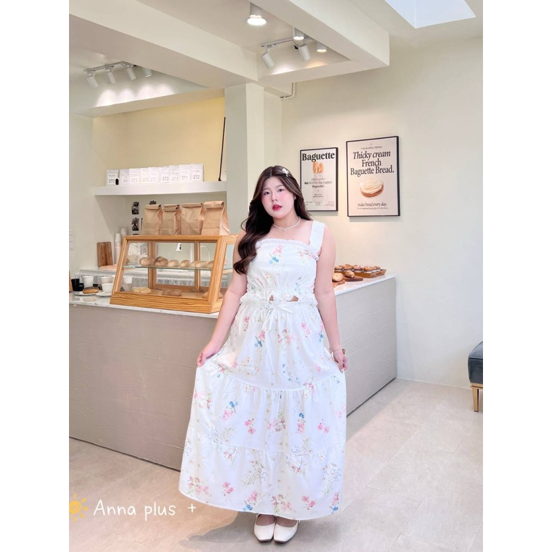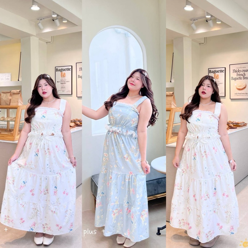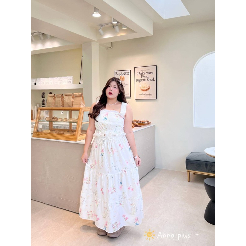 (AN) เซต เสื้อกล้าม + กระโปรงยาว ผ้าลายดอกไม้ หวานละมุนๆ เรียบร้อย น่ารักมาก เสื้อผ้าสาวอวบอ้วน พลัสไซส์ ไซส์ใหญ่