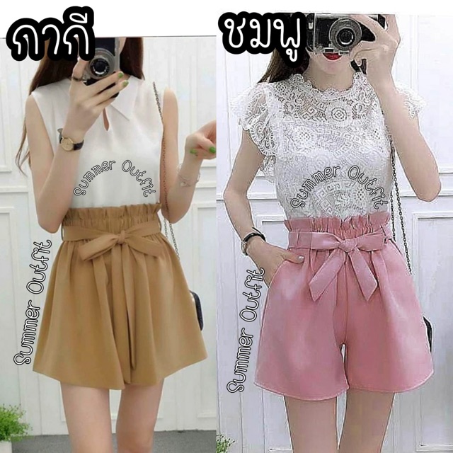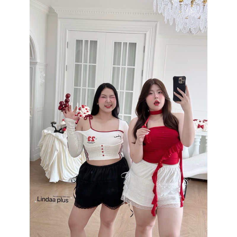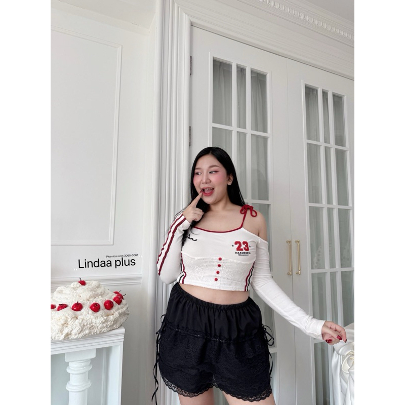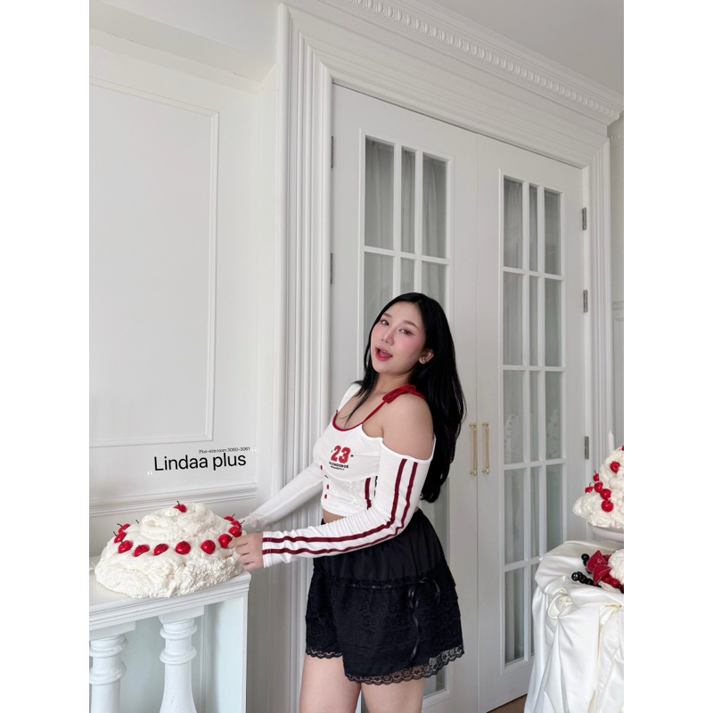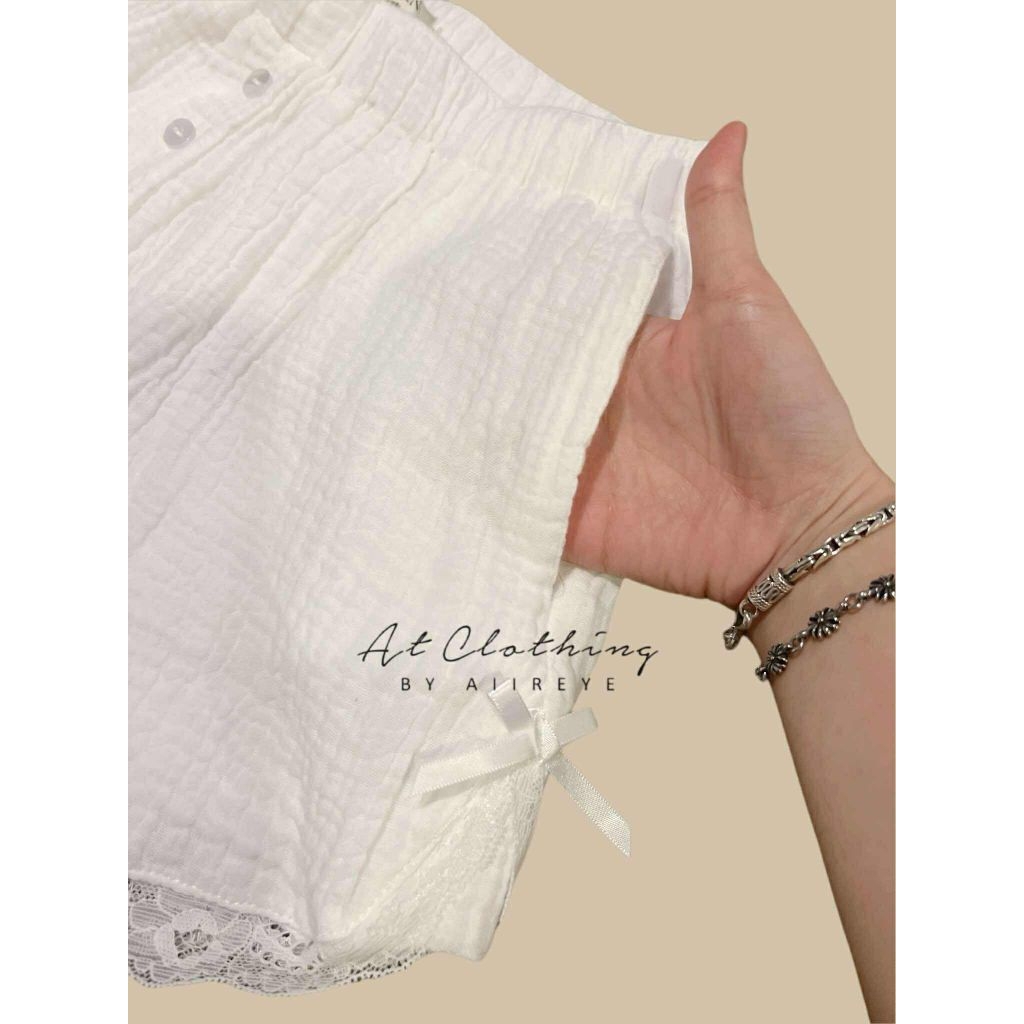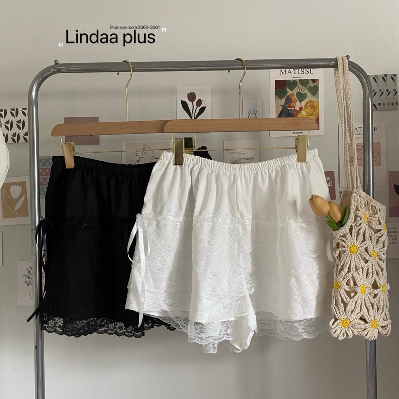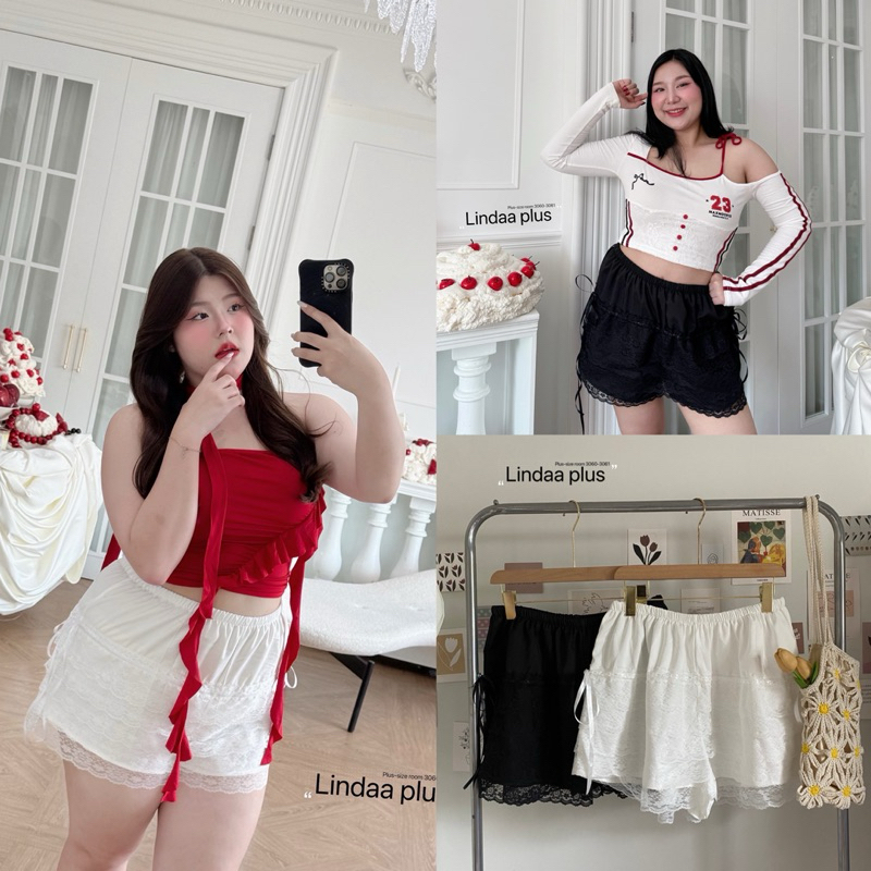 (LD) กางเกงขาสั้น แต่งลูกไม้รอบตัว มีริบบิ้นสุดน่ารัก เสื้อผ้าสาวอวบอ้วน พลัสไซส์ ไซส์ใหญ่