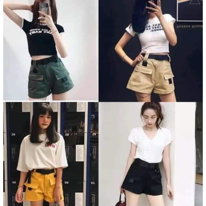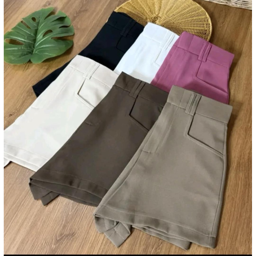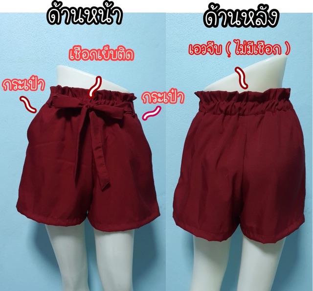 [KG] กางเกงขาสั้น (ทรงสวย หูคู้หน้า 4 หลัง4 รวม8 หู กระเป๋าหน้า ผ้าเปเปบาบี้ )