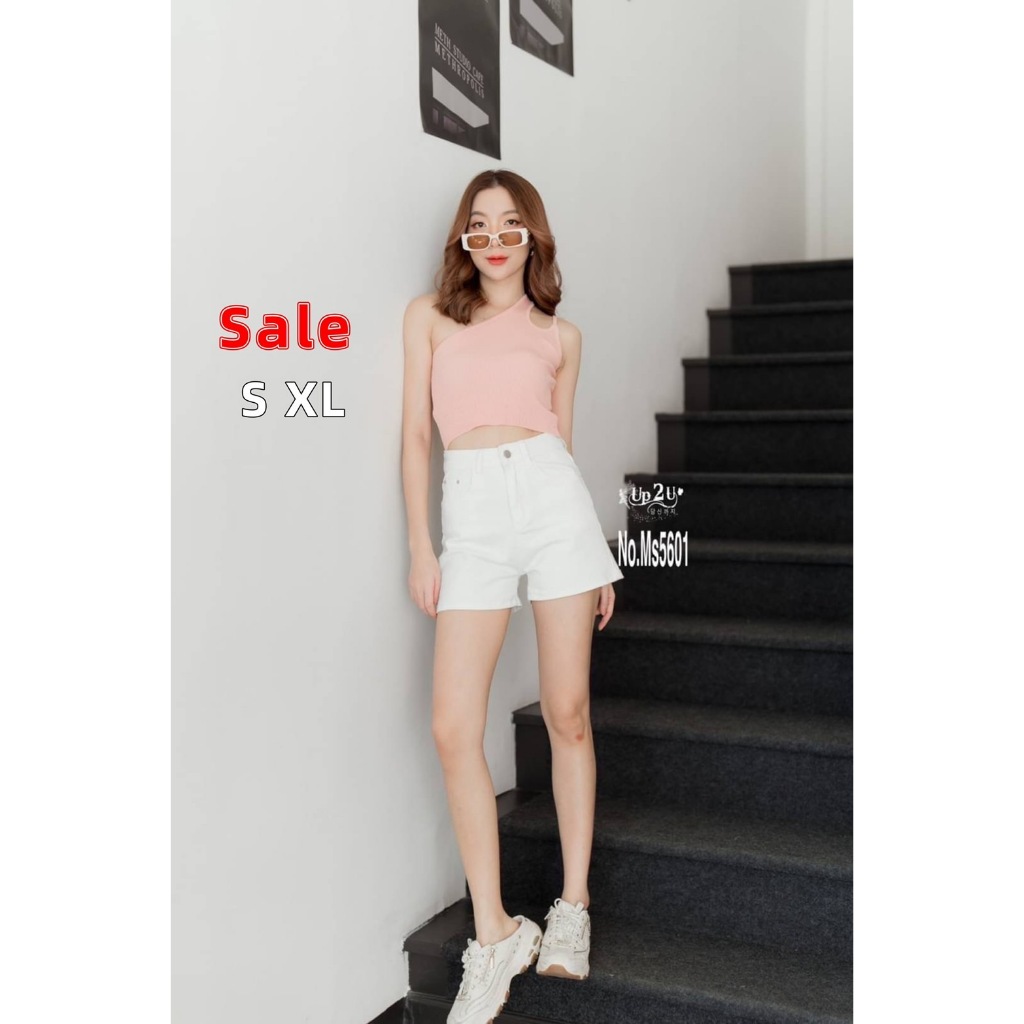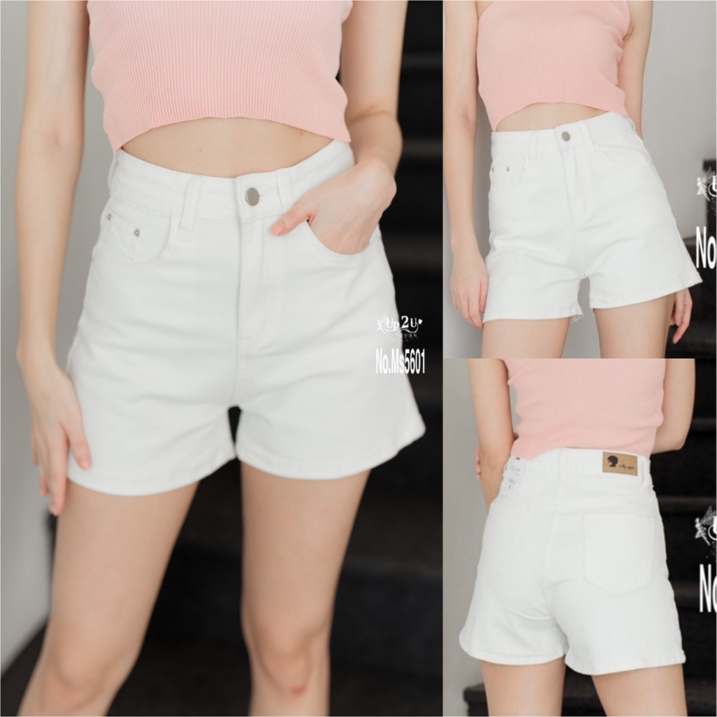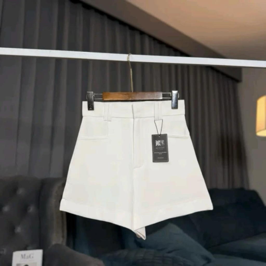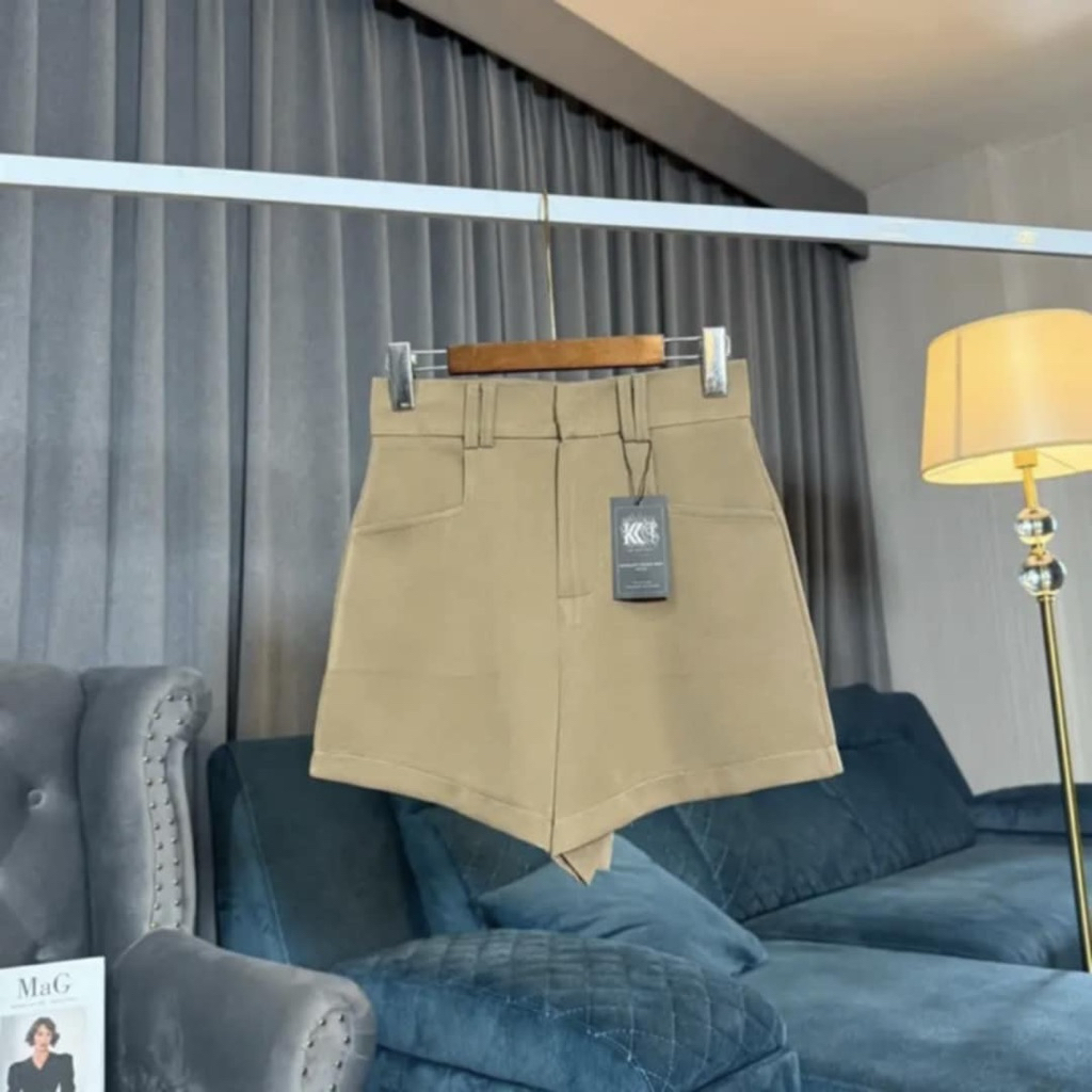 [modimood Designer] กางเกงขาสั้นไม่สม่ำเสมอสำหรับผู้หญิง ทำจากผ้าฝ้ายแท้ มีปุ่มสามจุด
