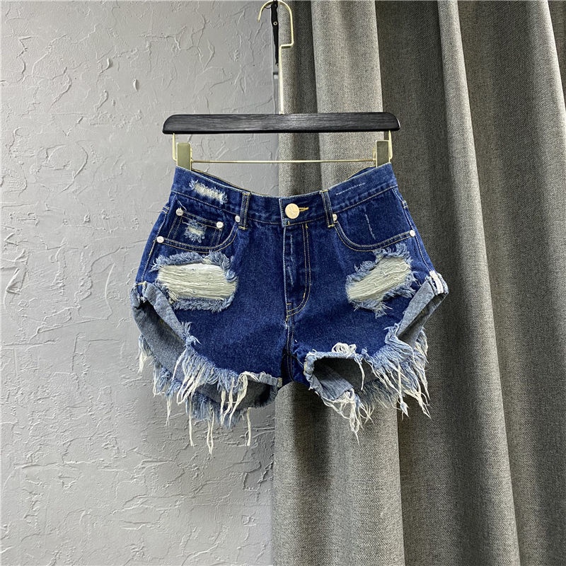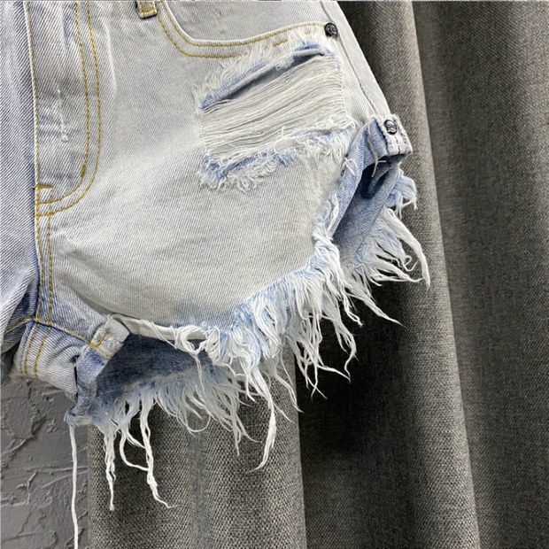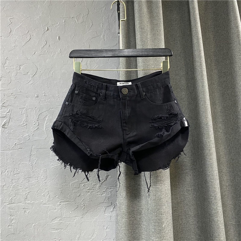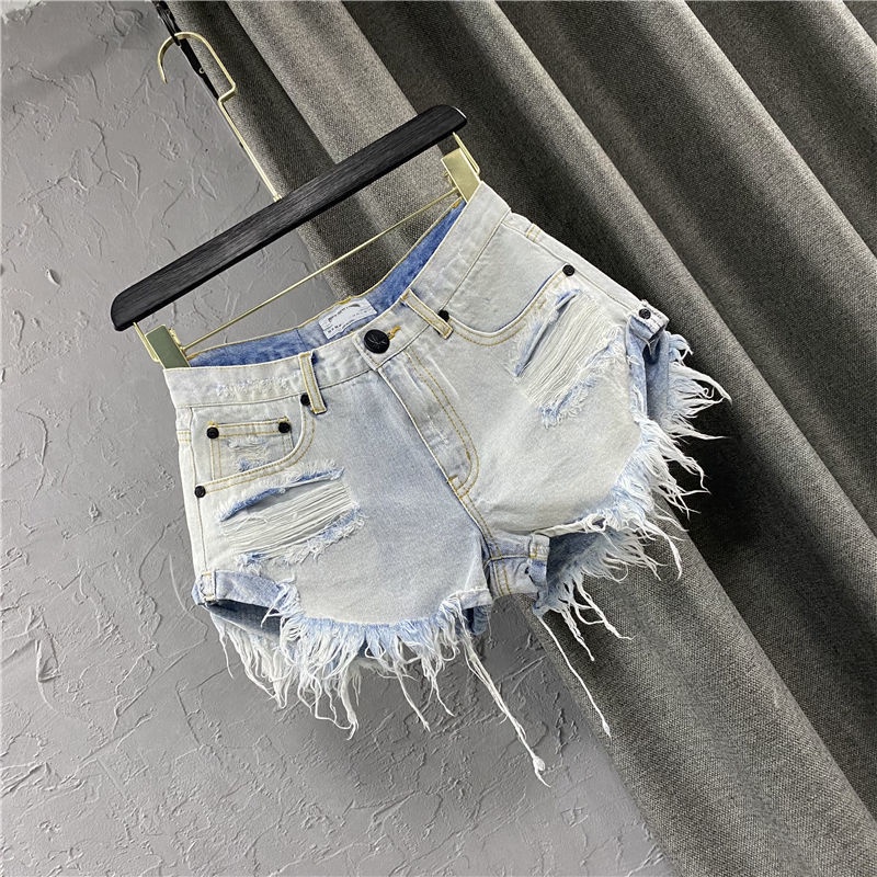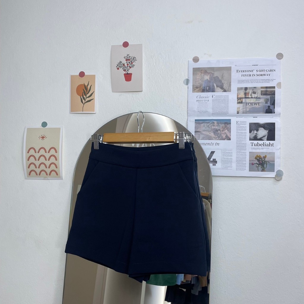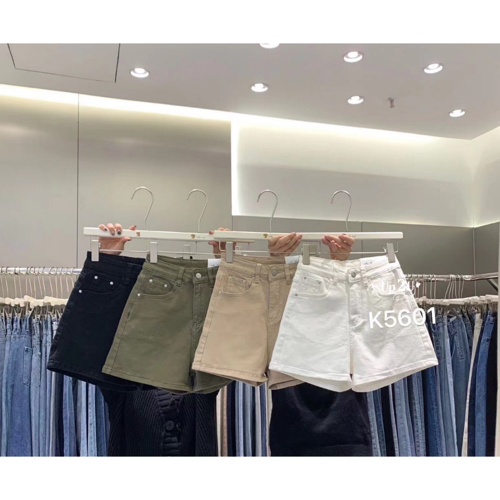 [modimood Designer] กางเกงขาสั้นไม่สม่ำเสมอสำหรับผู้หญิง ทำจากผ้าฝ้ายแท้ มีปุ่มสามจุด