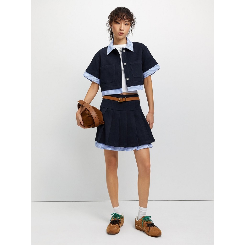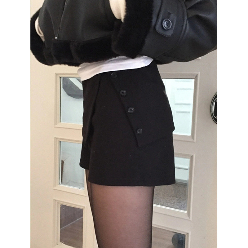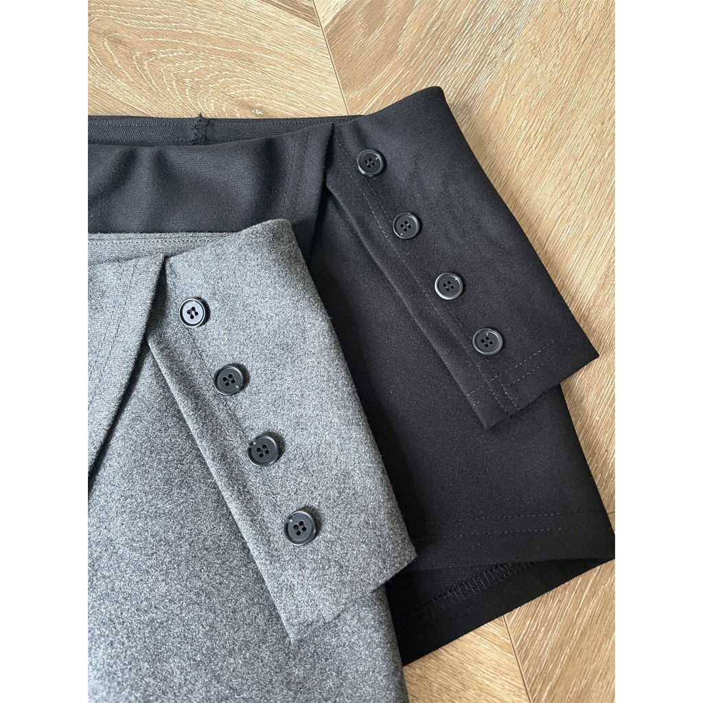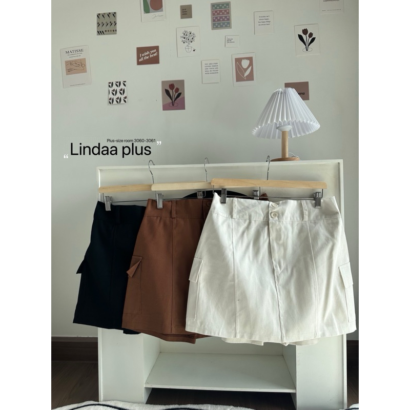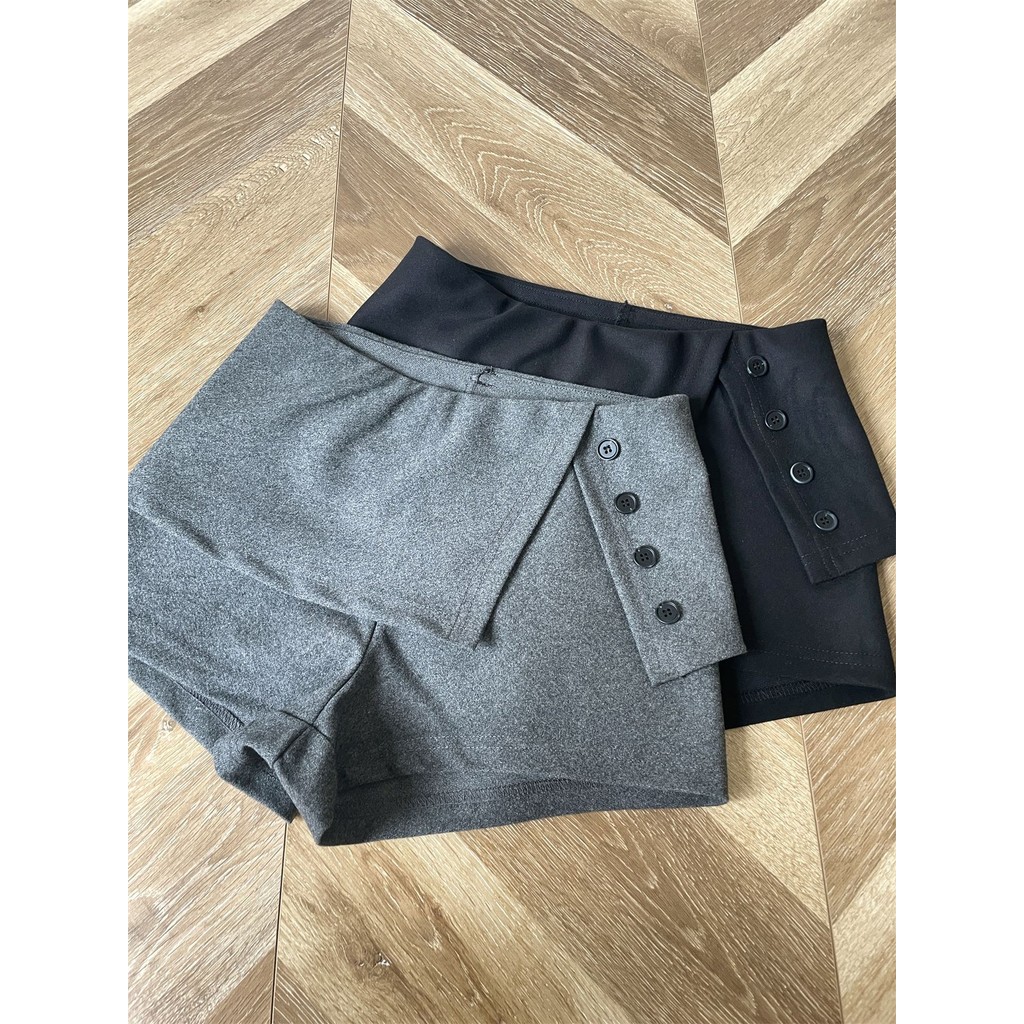 (LD) กางเกงกระโปรงรอบ กระดุมหน้า2เม็ด แต่งกระเป๋าข้าง น่ารัก แมทซ์ง่าย เสื้อผ้าสาวอวบอ้วน พลัสไซส์ ไซส์ใหญ่