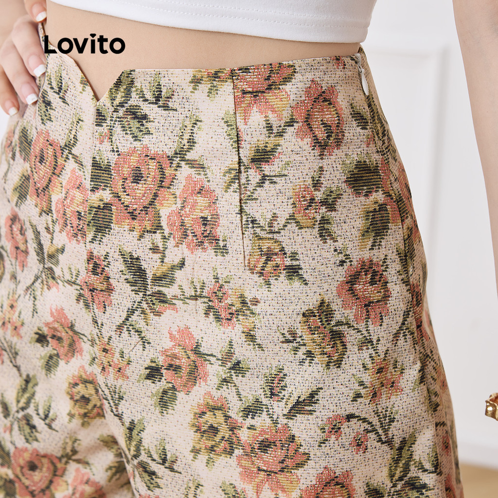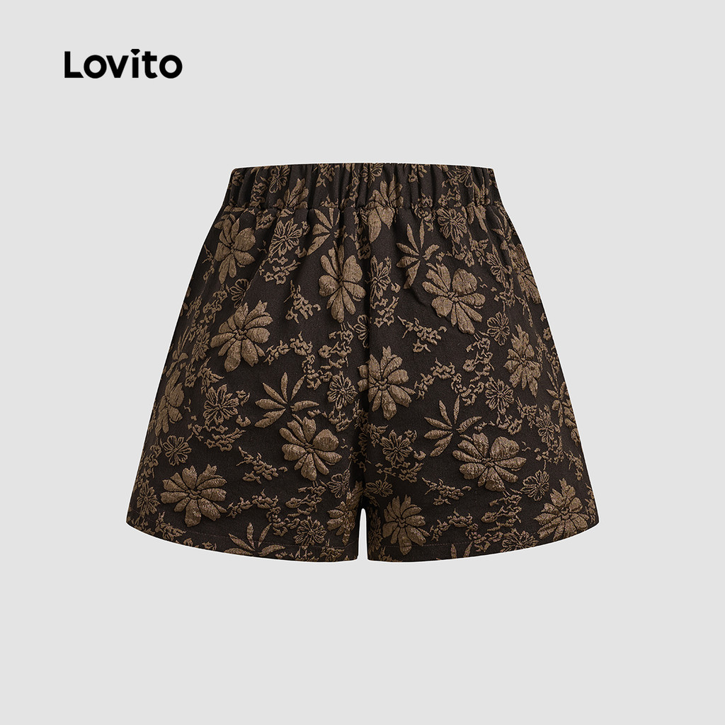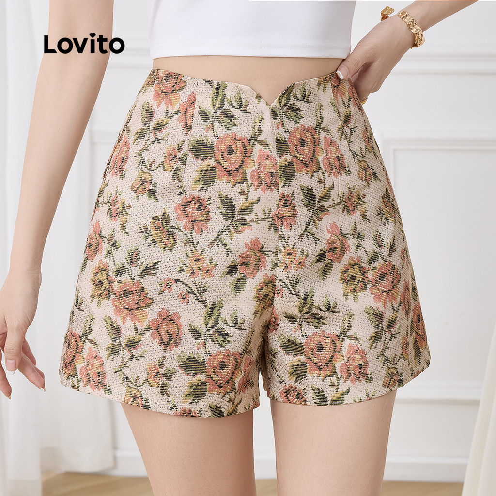 (New) Lovito กางเกงขาสั้นโบฮ์ลายดอกไม้ย้อนยุคสำหรับผู้หญิงบ็อกซ์ถุงเท้าขายาวหญิง L143ED569