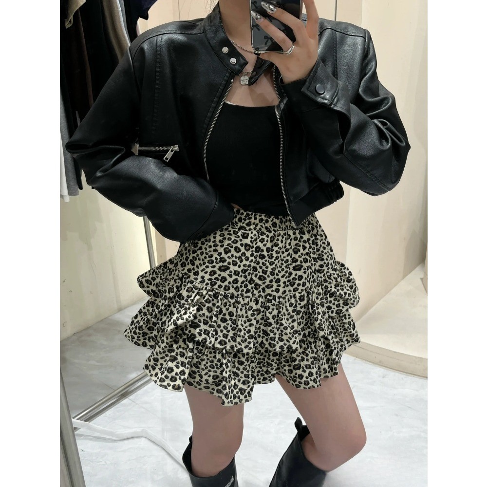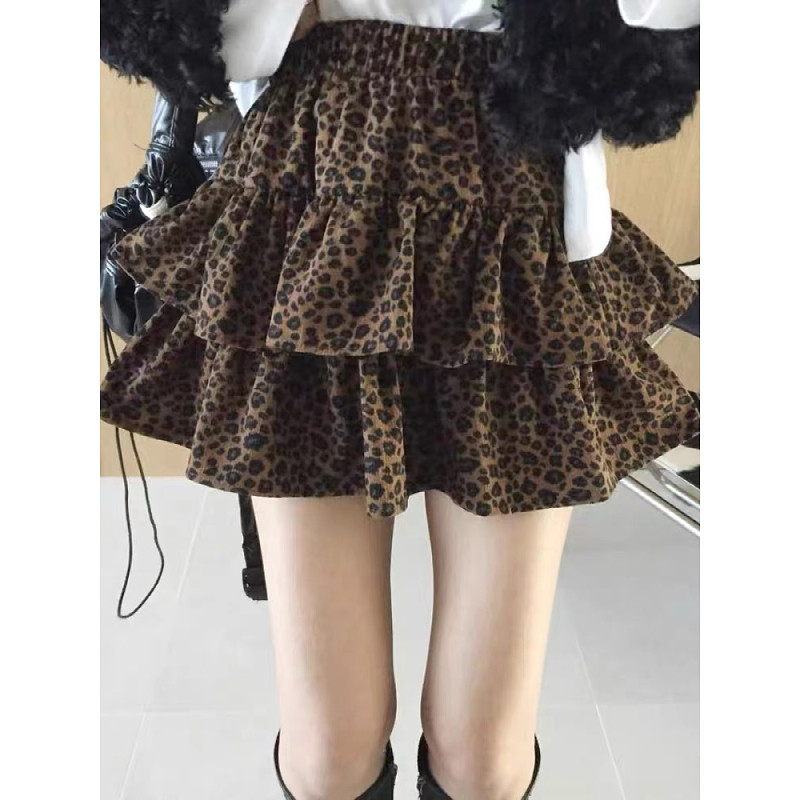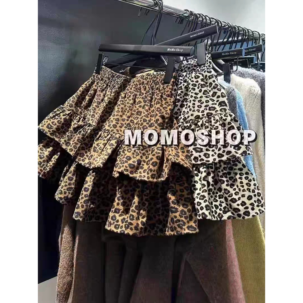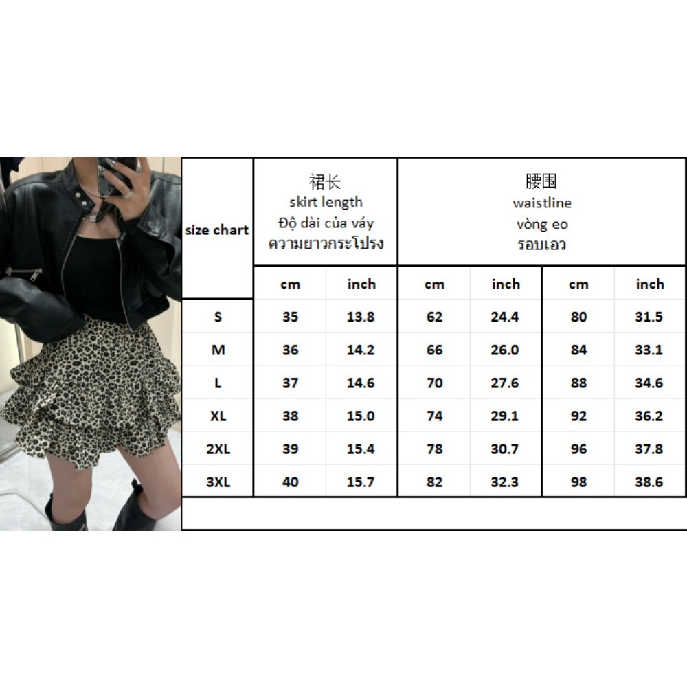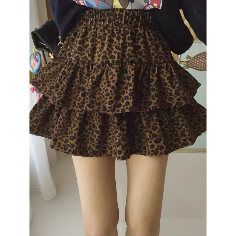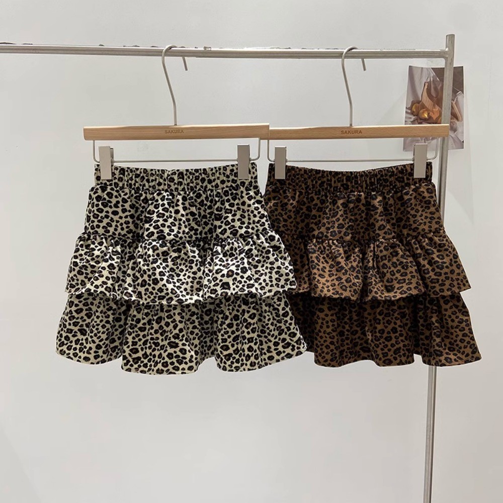 (ส่งจากไทย)เอวยางยืดเสือดาวพิมพ์กางเกงลำลองผู้หญิง กระโปรงทรงเอมีซับใน