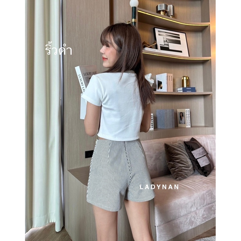 กางเกงกระโปรงลายริ้ว เอวสูง ทรงสวย