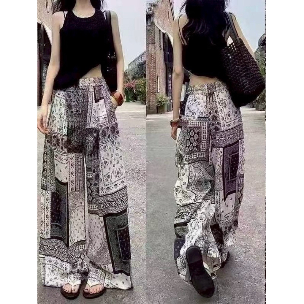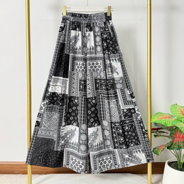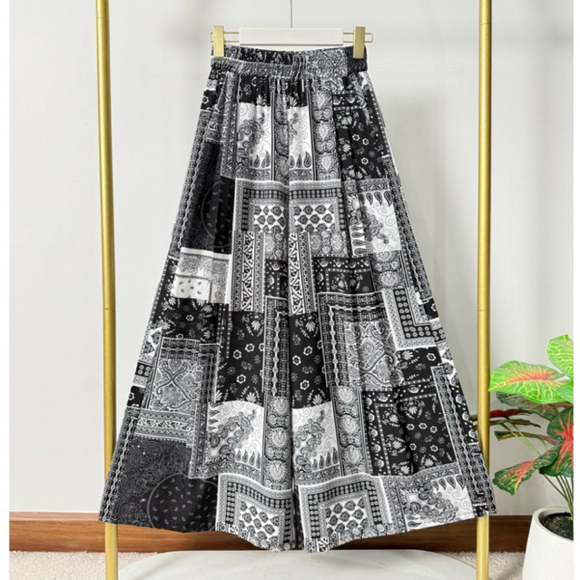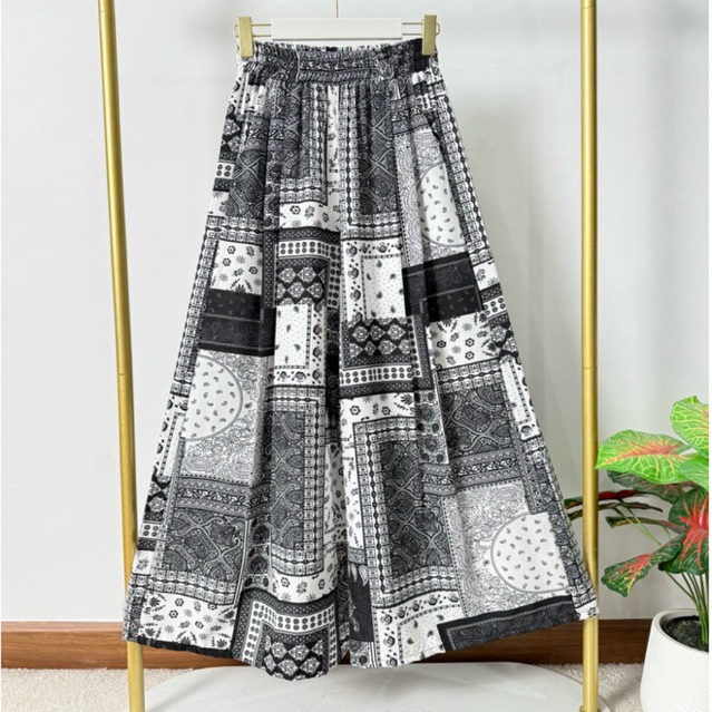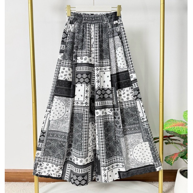 กางเกงกระโปรงสไตล์วินเทจ -ลายผ้าเช็ดหน้า (เอว25-38) ผ้าไหมญี่ปุ่น ผ้าบางเบาใส่สบาย