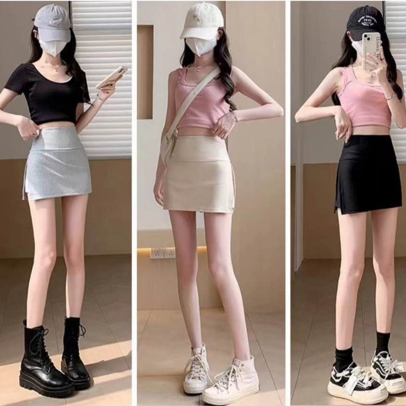 กางเกงโยคะผ่าข้างสไตล์ใหม่ยอดนิยมสำหรับผู้หญิงทุกฤดูกาล ป้องกันแสง กระโปรงทรงสลิมคลุมสะโพก กระโปรงกีฬาทรงเอ