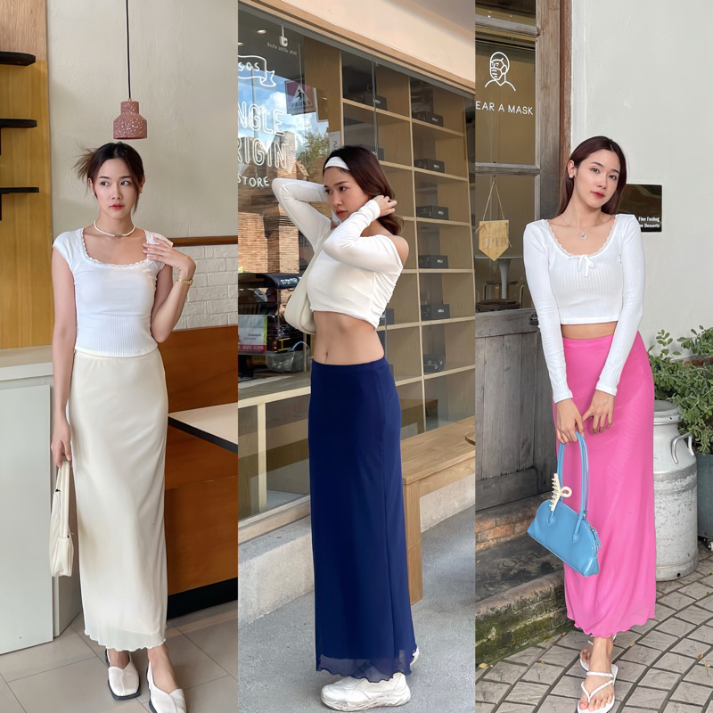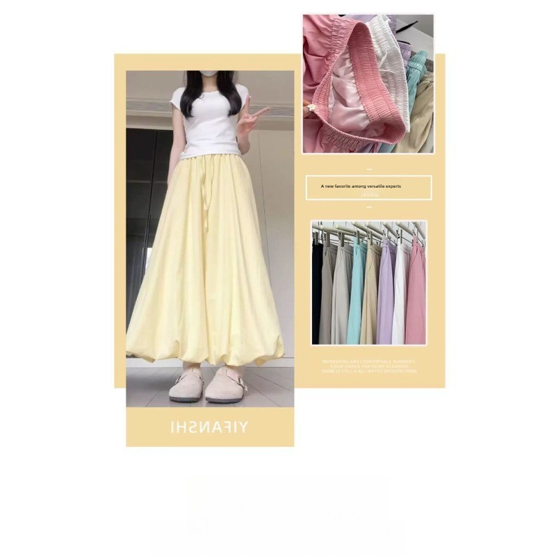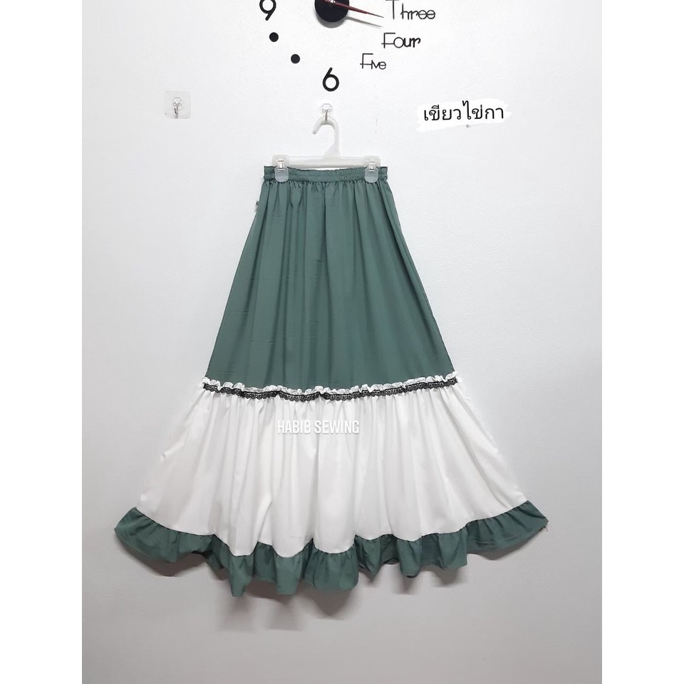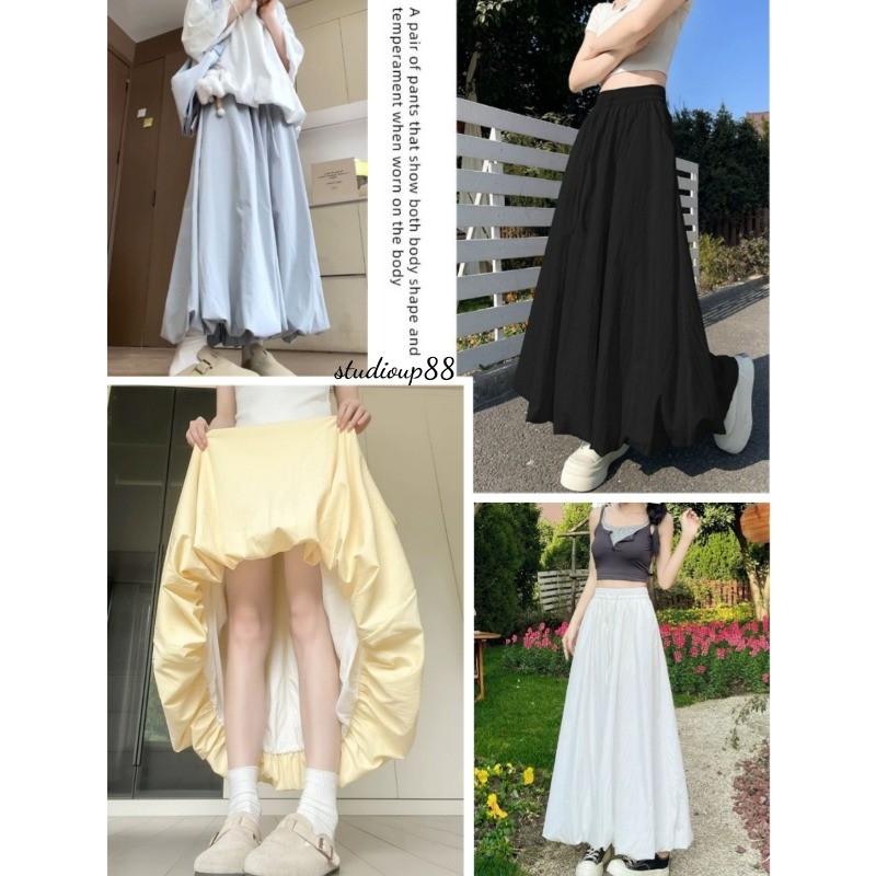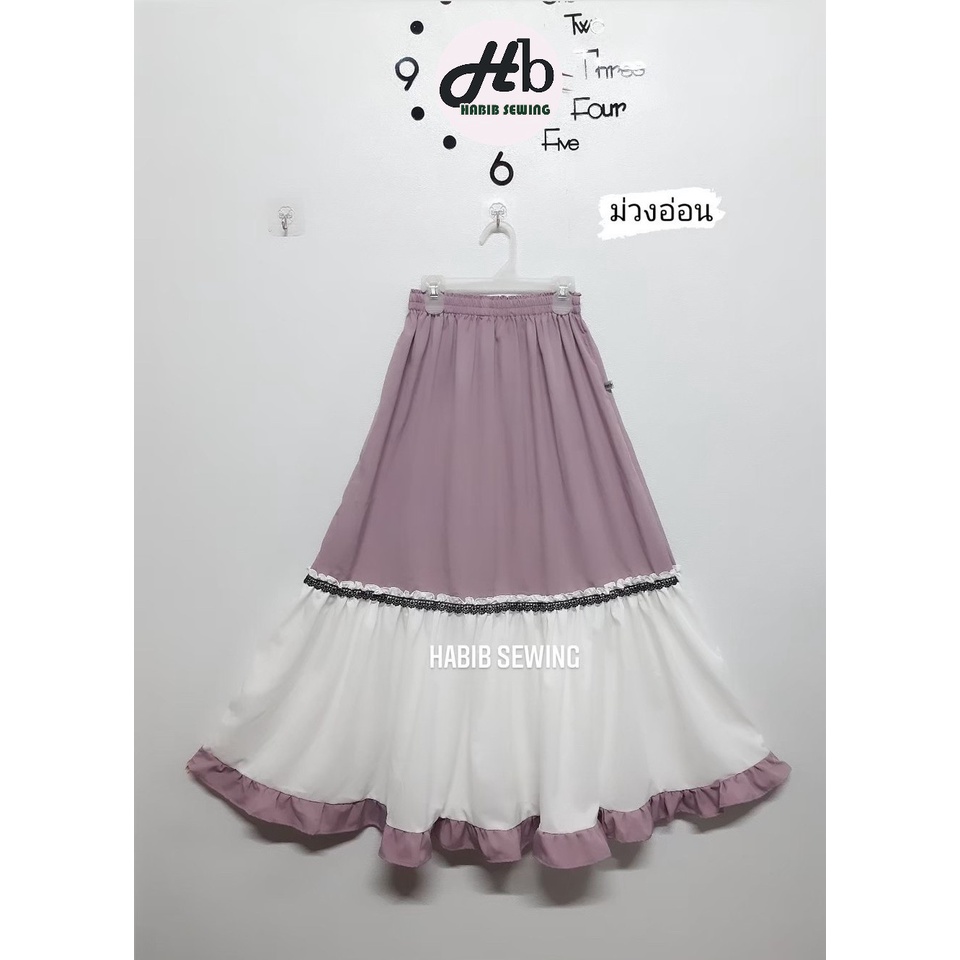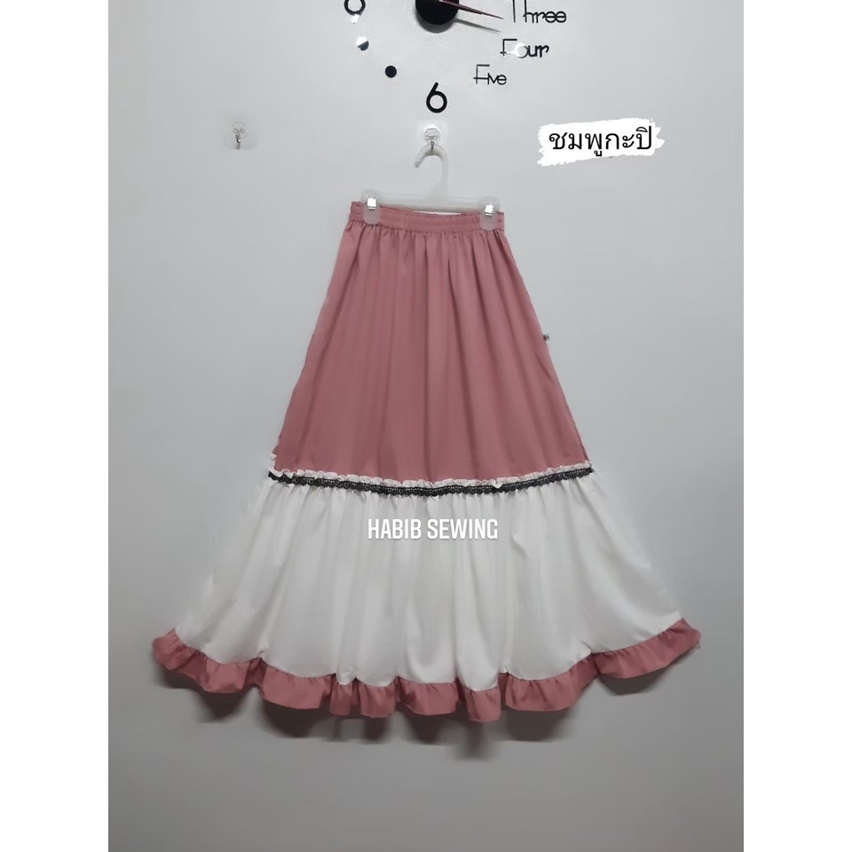 (ส่งจากไทย)กระโปรงยาว กระโปรงเอวสูง(มีซับในค่ะ)เนื้อผ้าอย่างดี เอวยางยืด หวานๆ สีพื้น สไตล์โรแมนติก