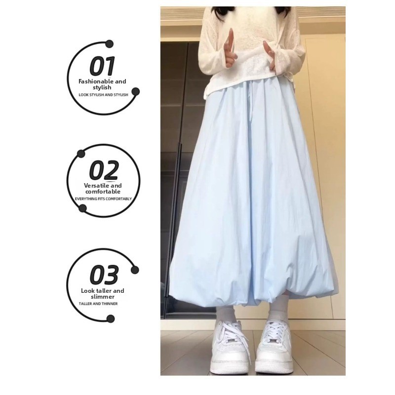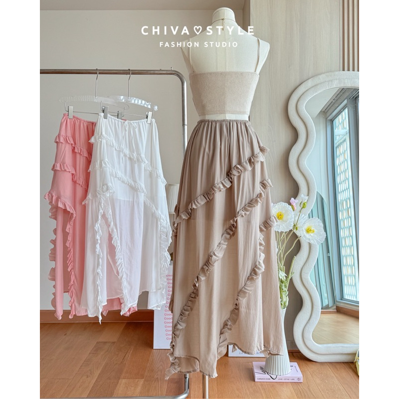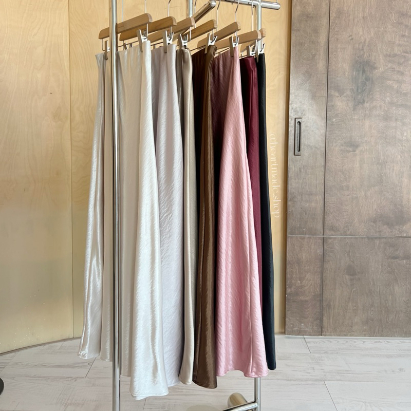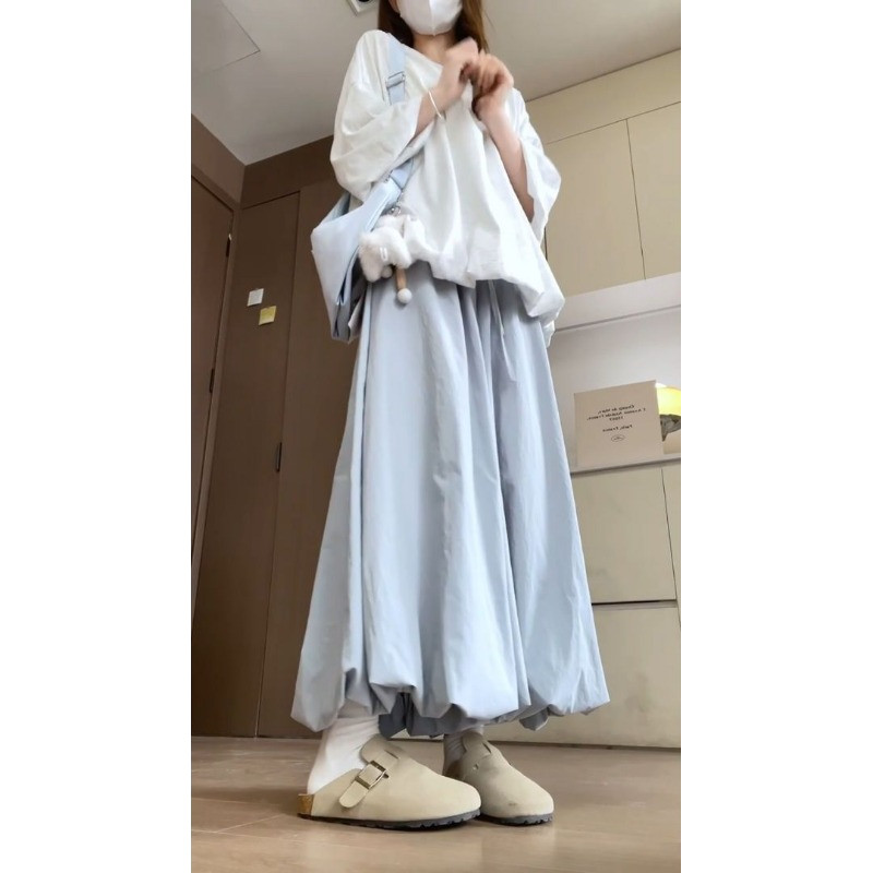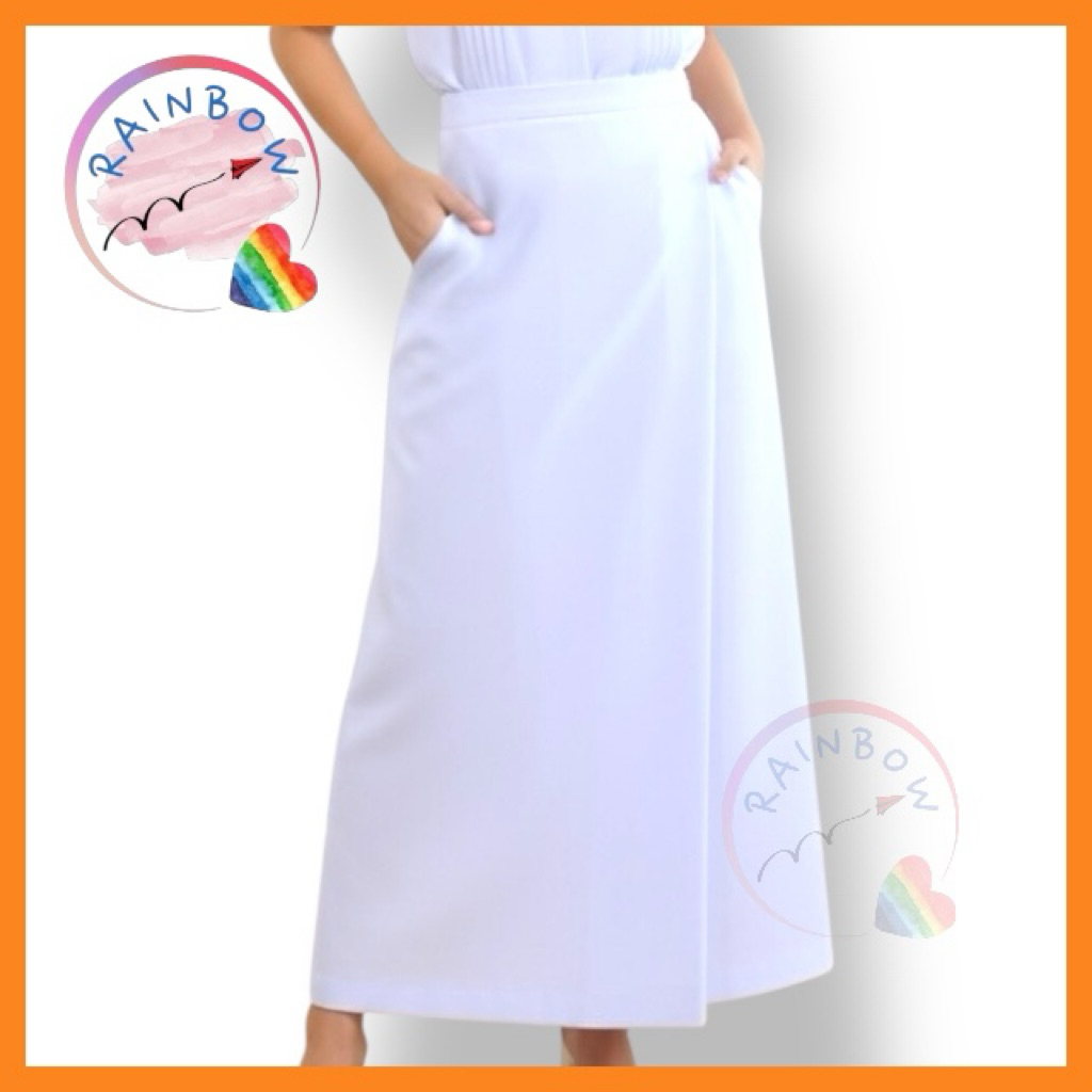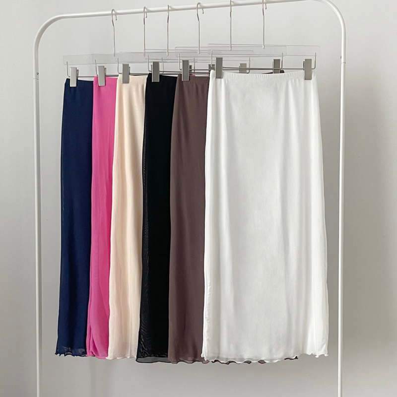 (ส่งจากไทย)กระโปรงยาว กระโปรงเอวสูง(มีซับในค่ะ)เนื้อผ้าอย่างดี เอวยางยืด หวานๆ สีพื้น สไตล์โรแมนติก