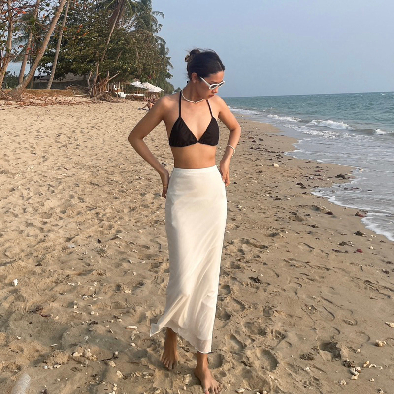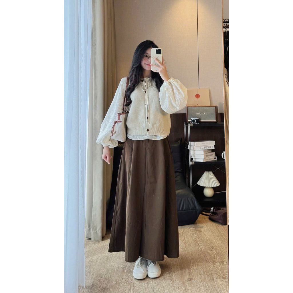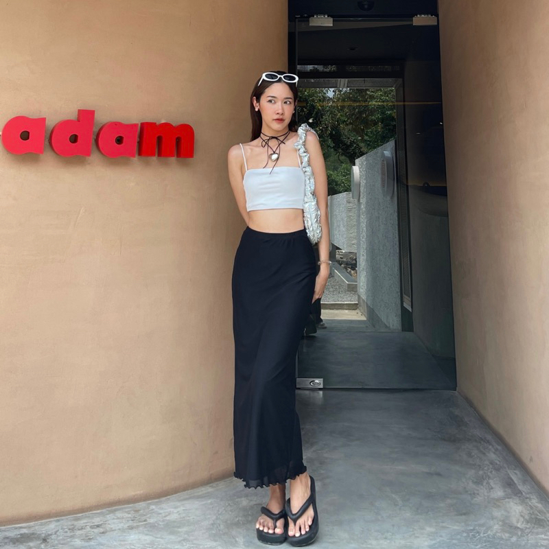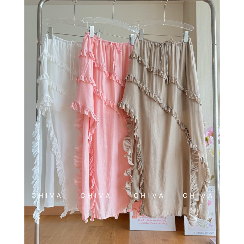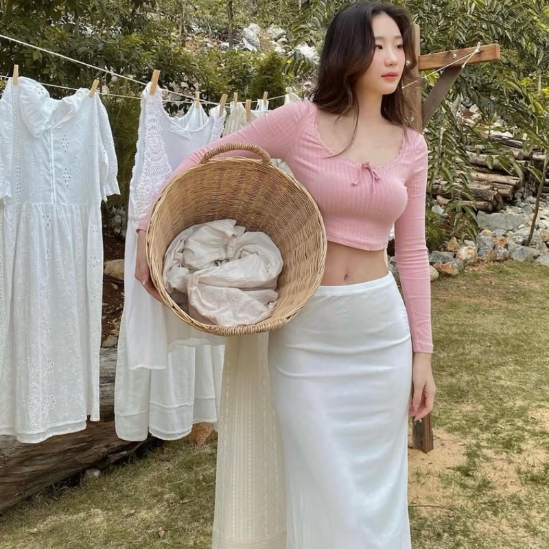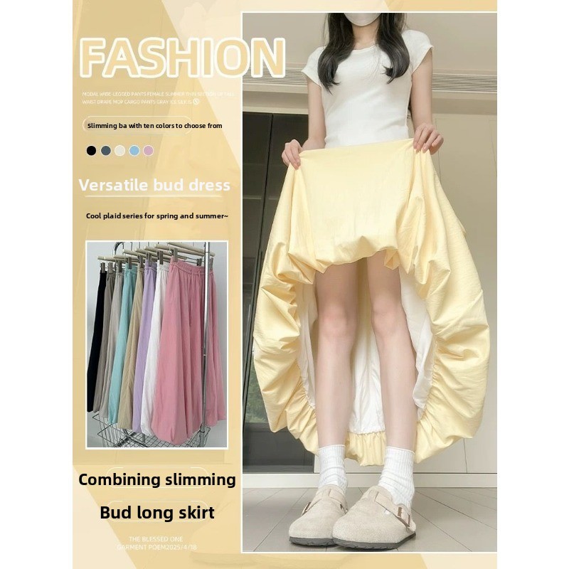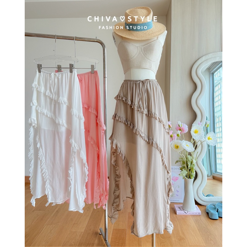 (ส่งจากไทย)กระโปรงยาว กระโปรงเอวสูง(มีซับในค่ะ)เนื้อผ้าอย่างดี เอวยางยืด หวานๆ สีพื้น สไตล์โรแมนติก