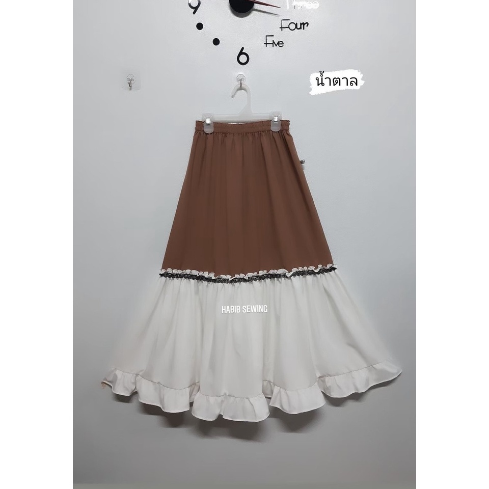 (มี 5 สี) กระโปรงรุ่นระบายเข่าลูกไม้ แบบสามชั้นริมนอก ใส่ได้ทุกโอกาส ฟรีไซส์ เอว 22-38 นิ้ว ยาว 38 นิ้ว (#04)