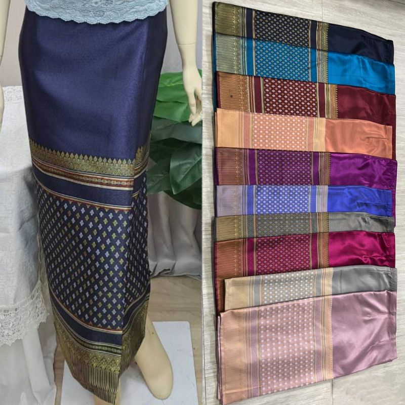 (วิดีโอลดสูงสุด50%)ผ้าถุงทอลายเนื้อพรีเมี่ยมไหมแกมฝ้าย ตัดเย็บสำเร็จอัดกาว มีตะขอให้ปรับตามสรีระ สีไม่ตก ใส่ได้24-44นิ้ว