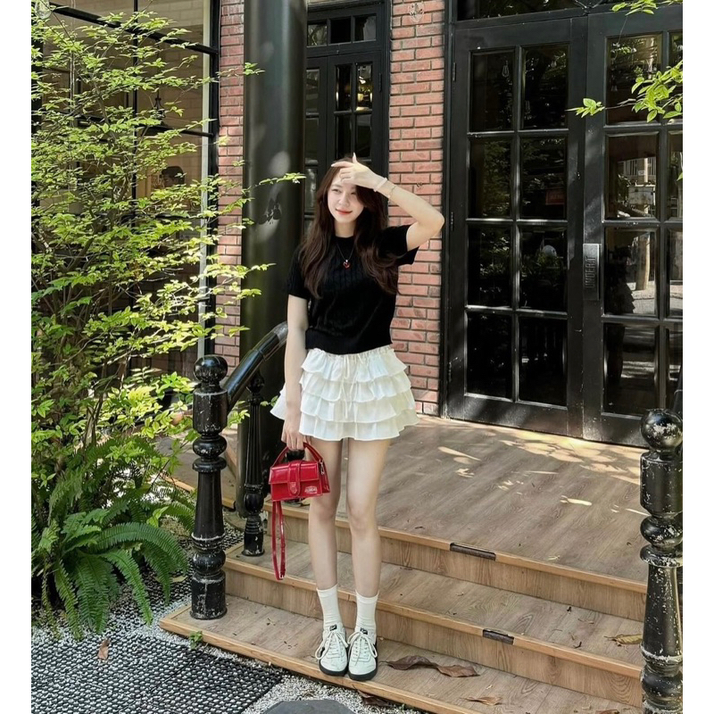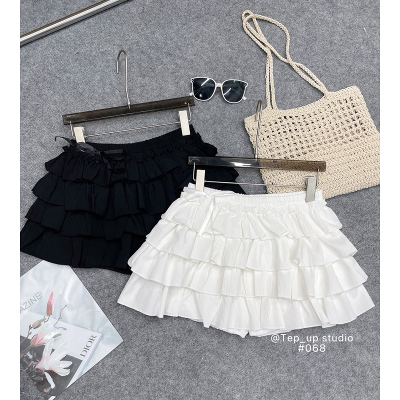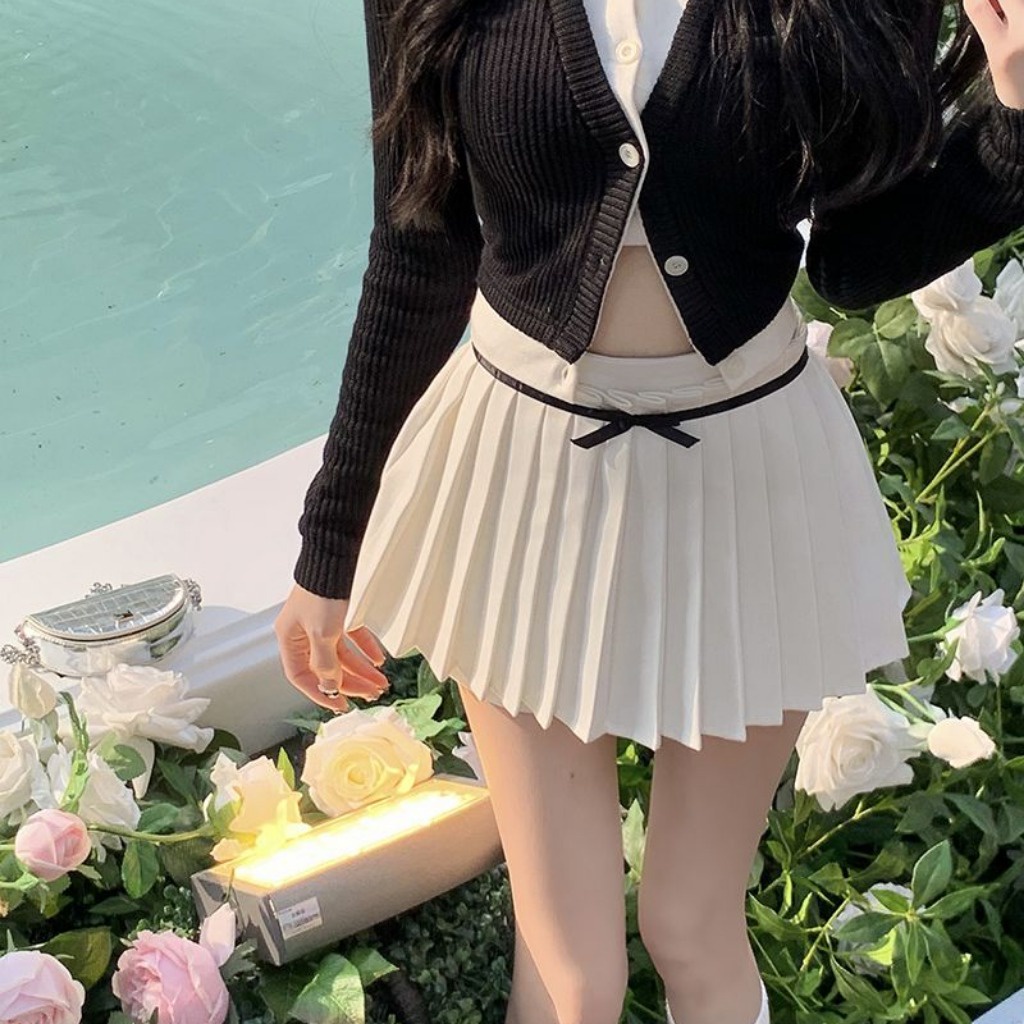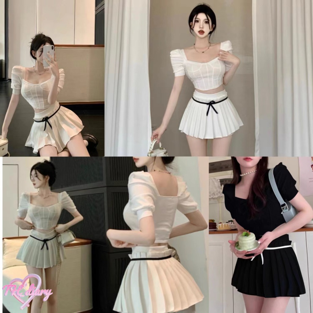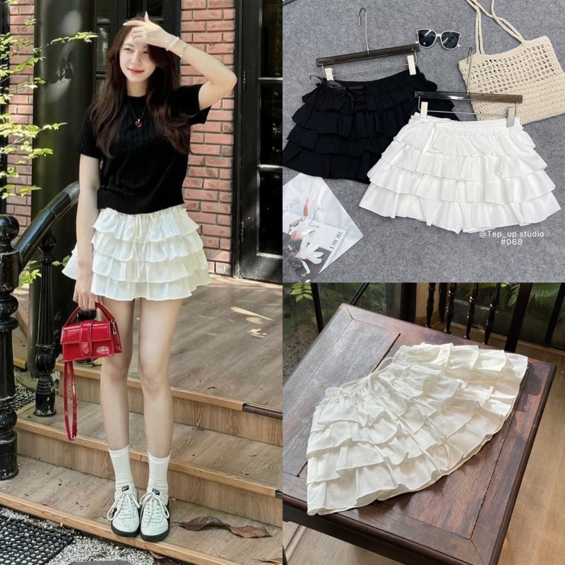 (จัดส่งจากกรุงเทพฯ) กระโปรงจีบเอวสูงของผู้หญิง กระโปรงสั้นทรงเอมีซับใน
