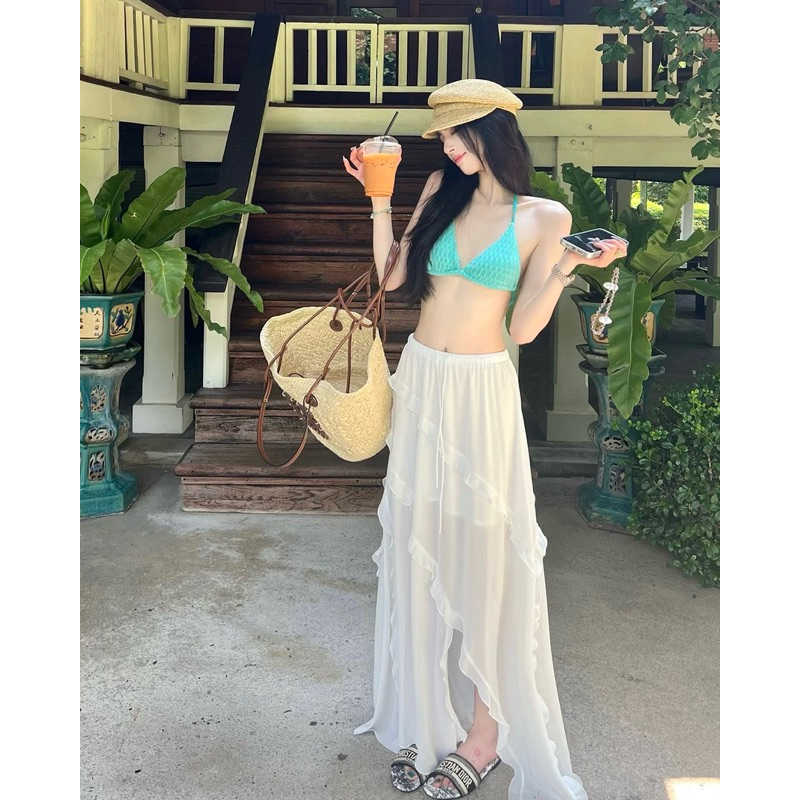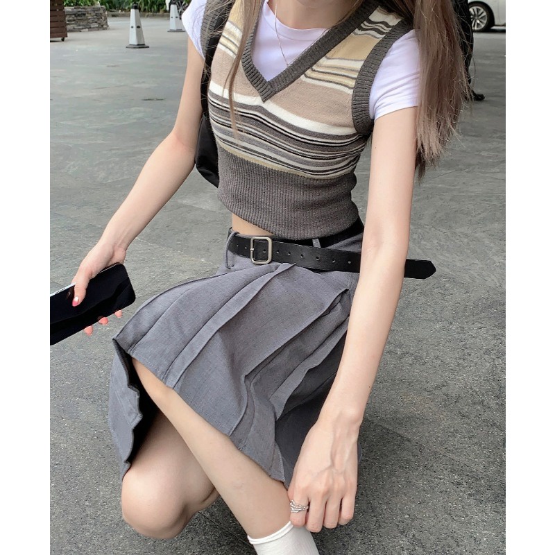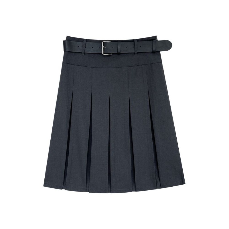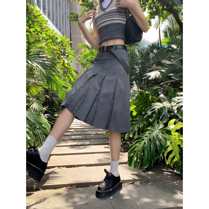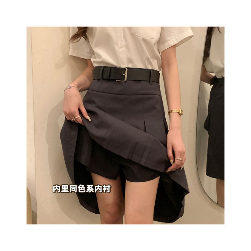 (จัดส่งในกรุงเทพฯ🇹🇭) กระโปรงลำลองสตรี + เข็มขัด ใหม่กระโปรงจีบเอวสูงฤดูร้อน L035