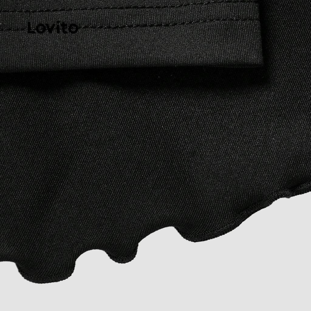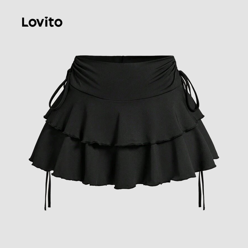 (Trendy) Lovito ลำลองสีพื้นผูกเชือกระบายชายเสื้อชั้นชั้นชั้นชั้นชั้นระบายกระโปรงสําหรับผู้หญิง L133AD424