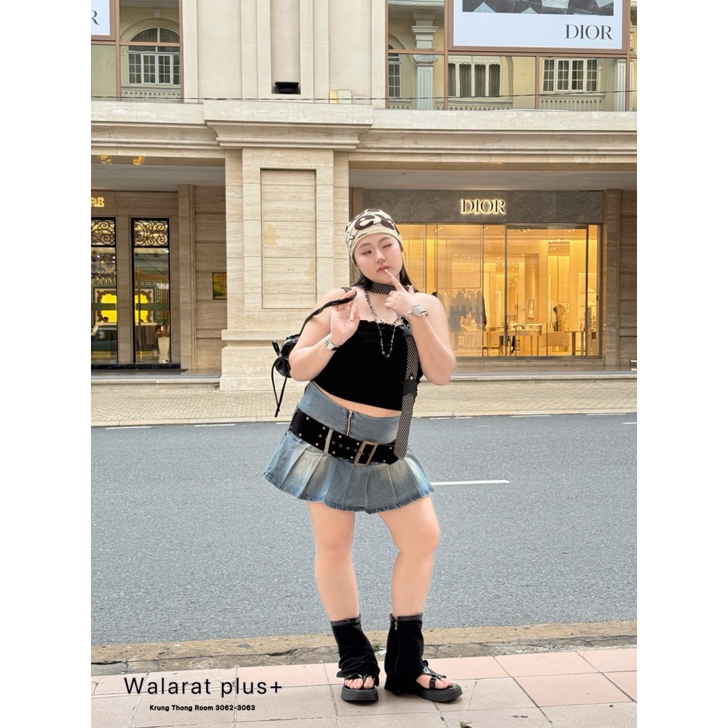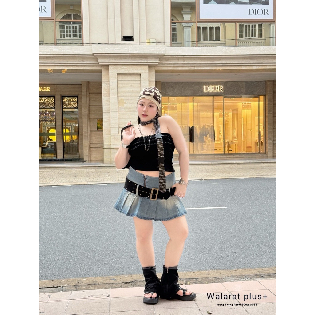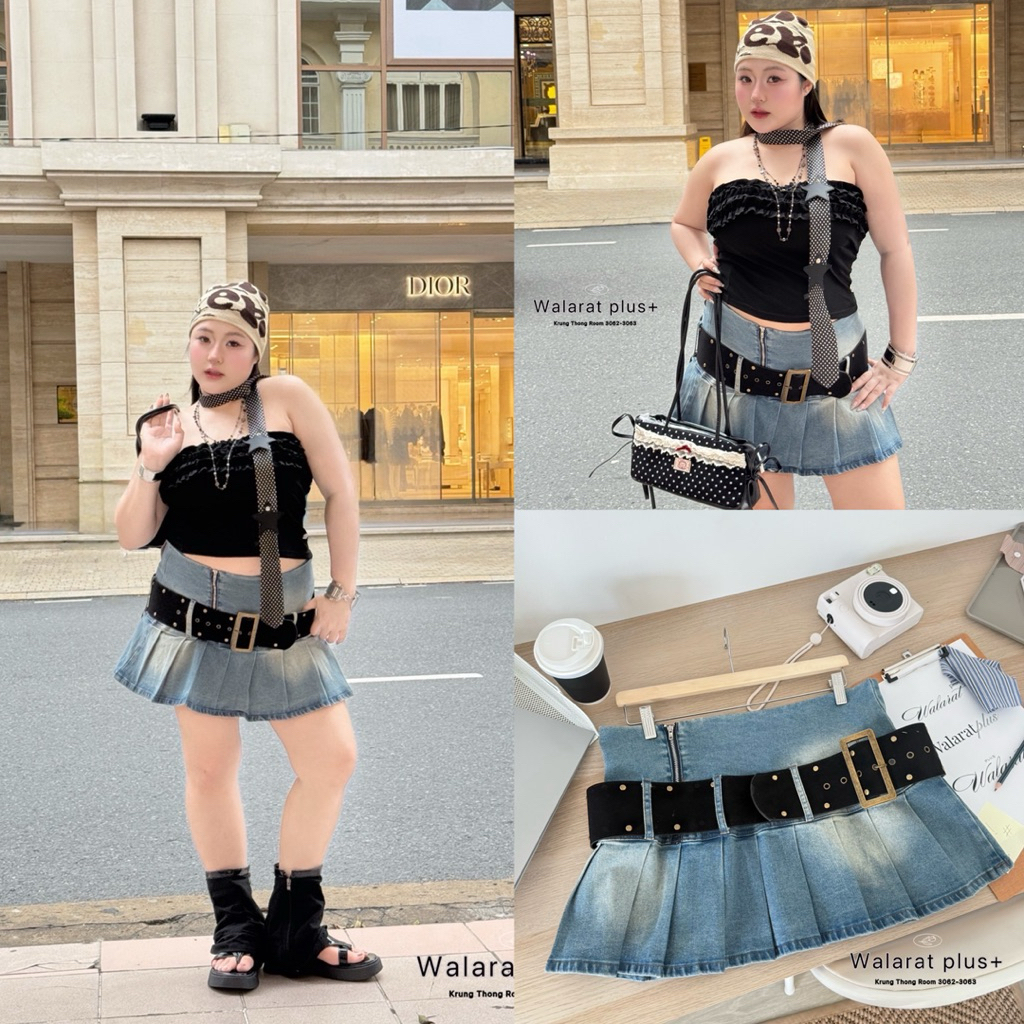 (WR) กระโปรงยีนส์ จีบทวิสด้านล่าง (มีเข็มขัดให้) สายแฟชั่น สายคอน มีตัวนี้บอกเลย เริ่ดเลยหล่ะ!! ไซส์ใหญ่