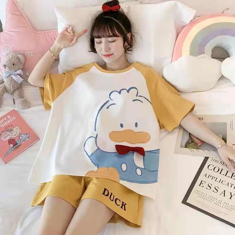 ลายใหม่ ชุดนอนผู้ใหญ่แขนสั้นขาสั้น ชุดนอนลายน่ารัก เซตชุดนอน
