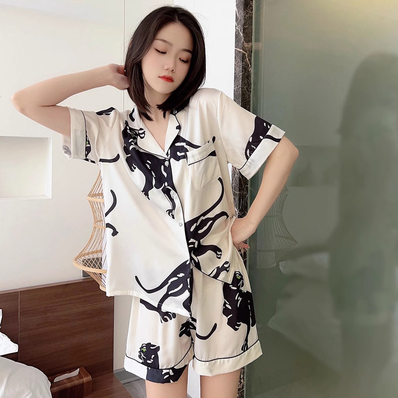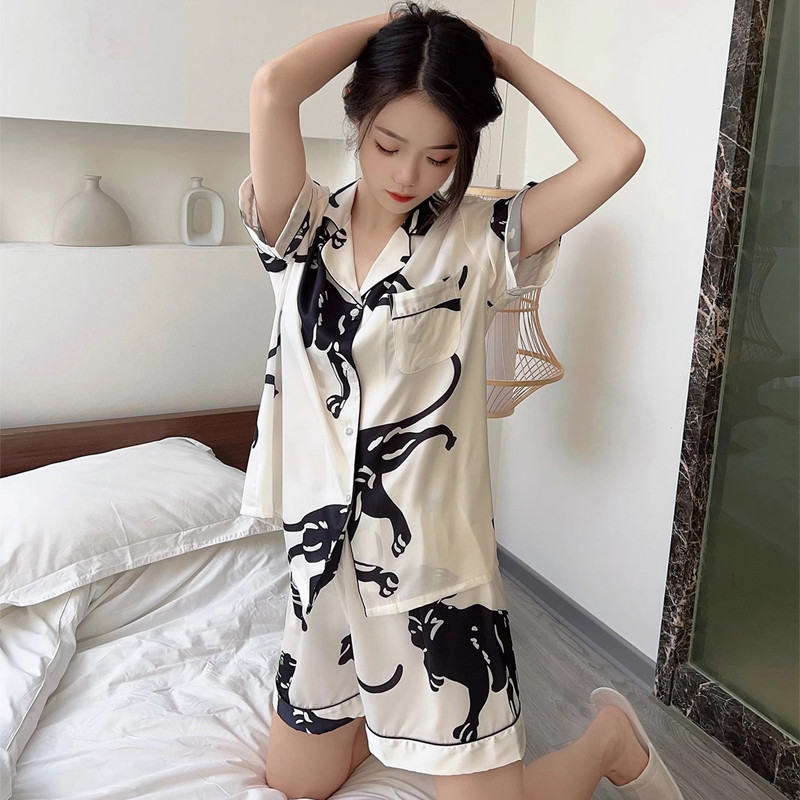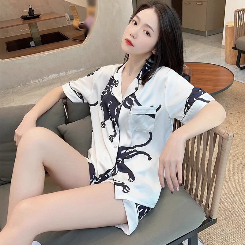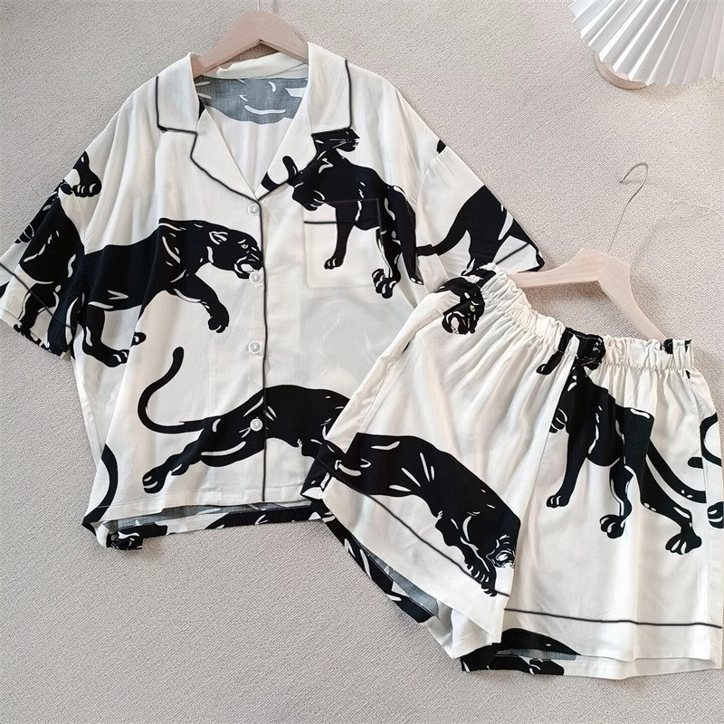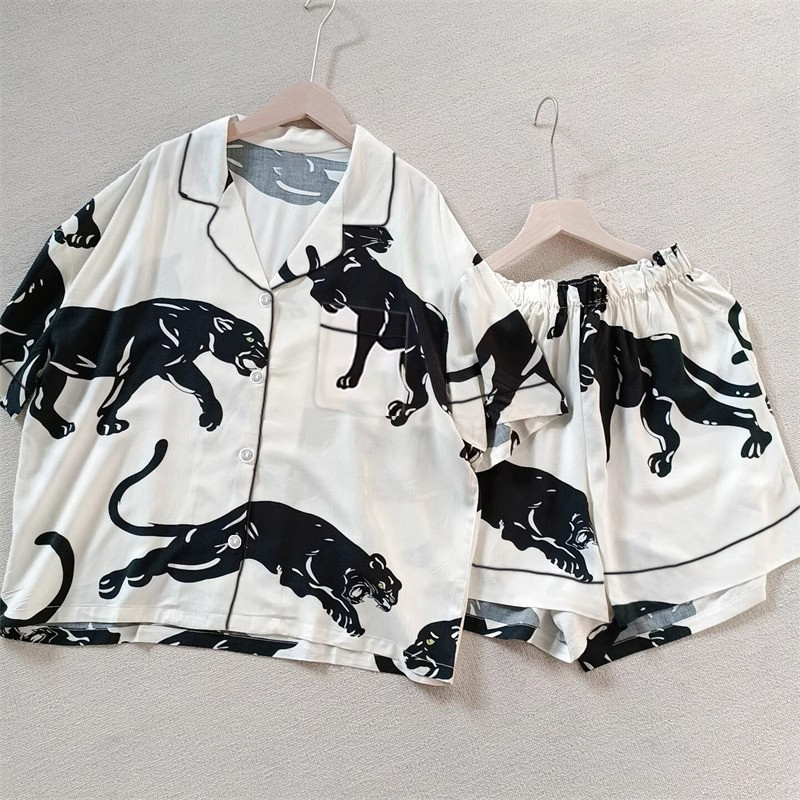 ฤดูร้อนบางเสือดาวพิมพ์เนียนแขนสั้นสบายๆความสะดวกสบายชุดนอนชุด