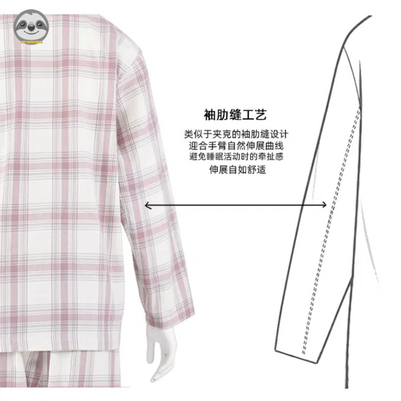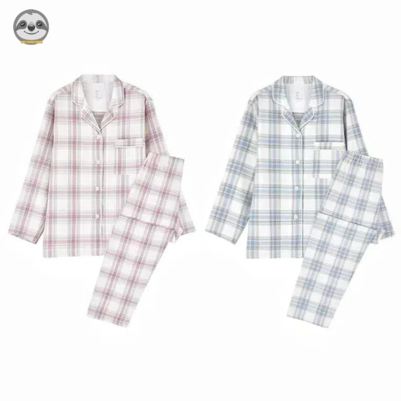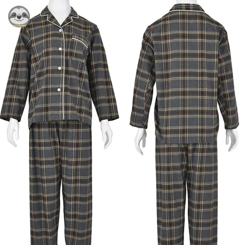 สไตล์ญี่ปุ่น Muji Style/Flannel Checkered Loungewear/Warm สบายแปรงชุดนอน/Seamless Soft Loungewear