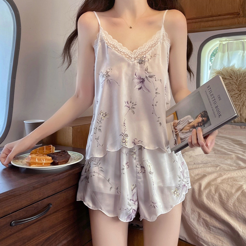 ผ้าคุณภาพสูงสุด✨ ชุดนอนผ้าซาติน 👙สวมใส่สบายมาก🌈ชุดนอนสตรีชุดเซ็ท(H9051)