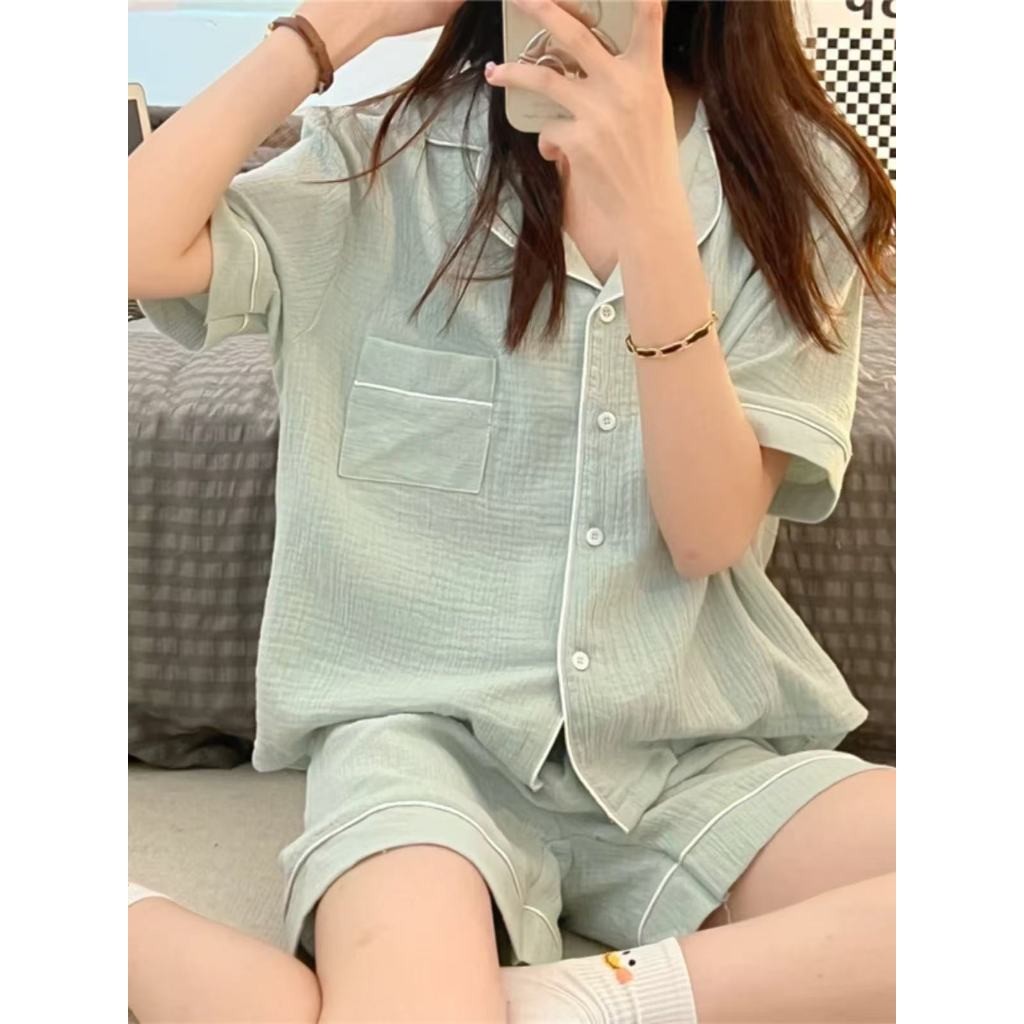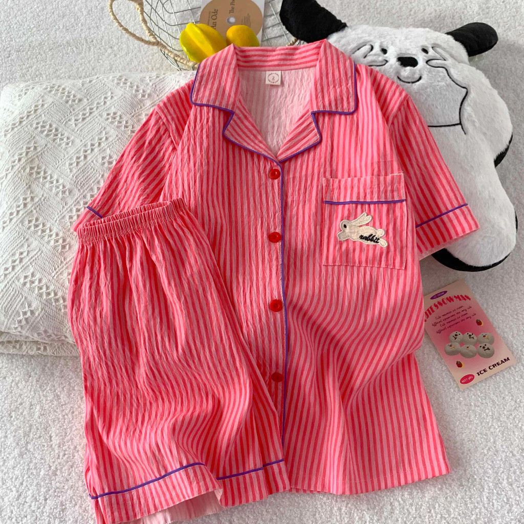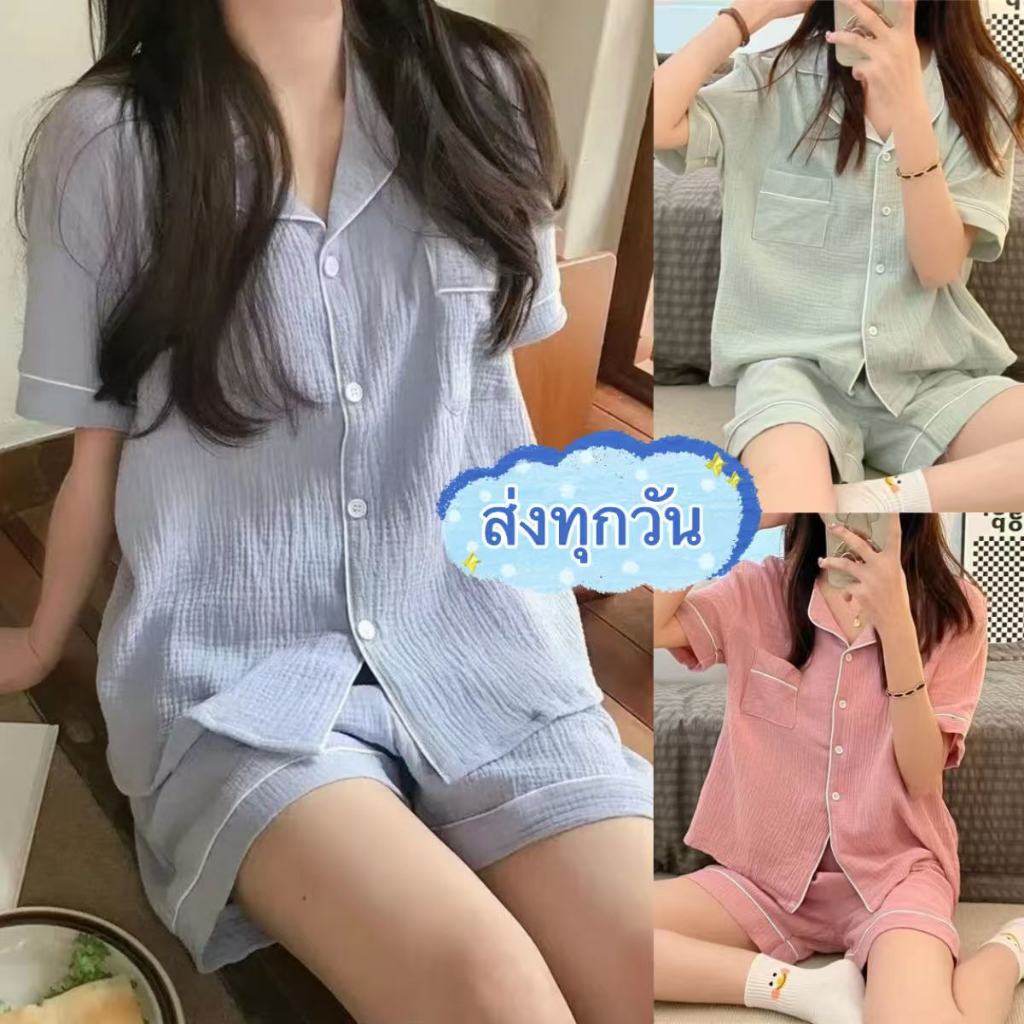 ✨ส่งจากไทย✨ชุดนอนผู้หญิง แขนสั้น+กางเกงขาสั้น สไตล์หวาน ผ้าเบาสบาย ระบายอากาศได้ดี ใส่สบายในหน้าร้อน