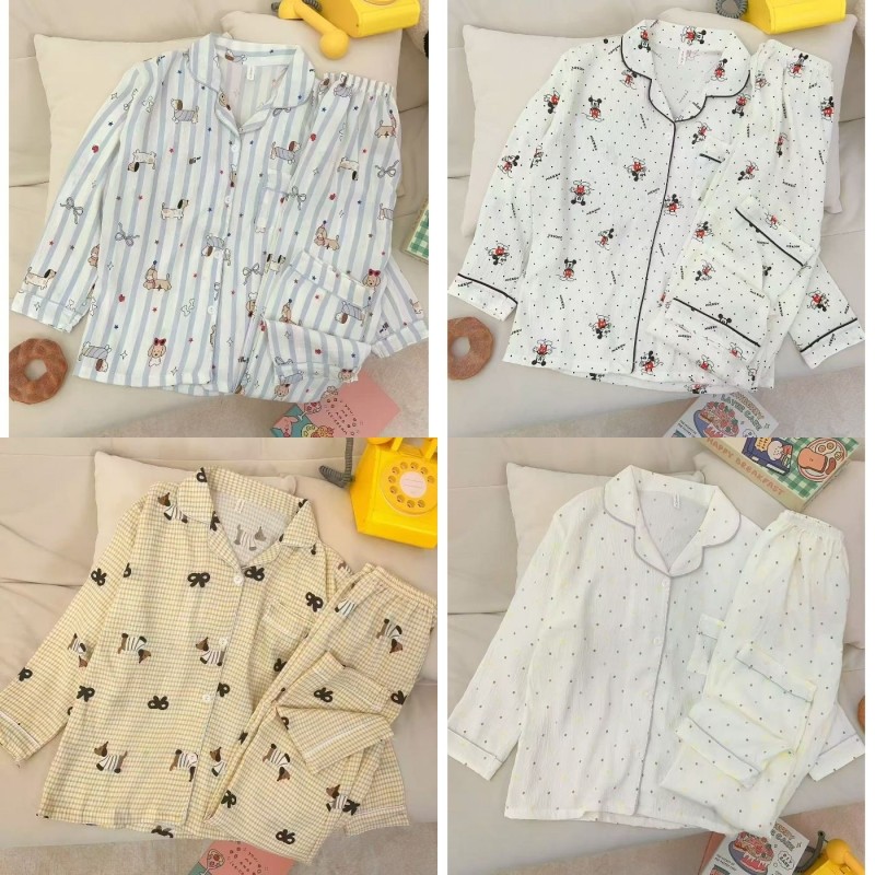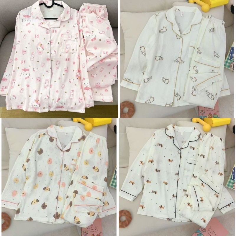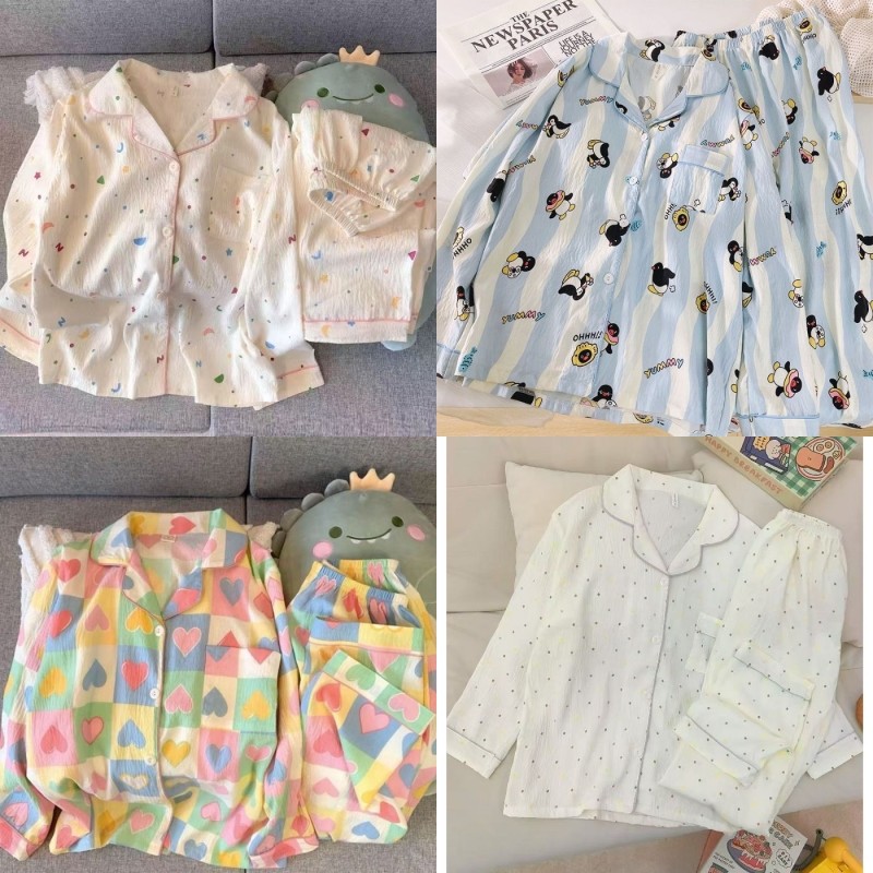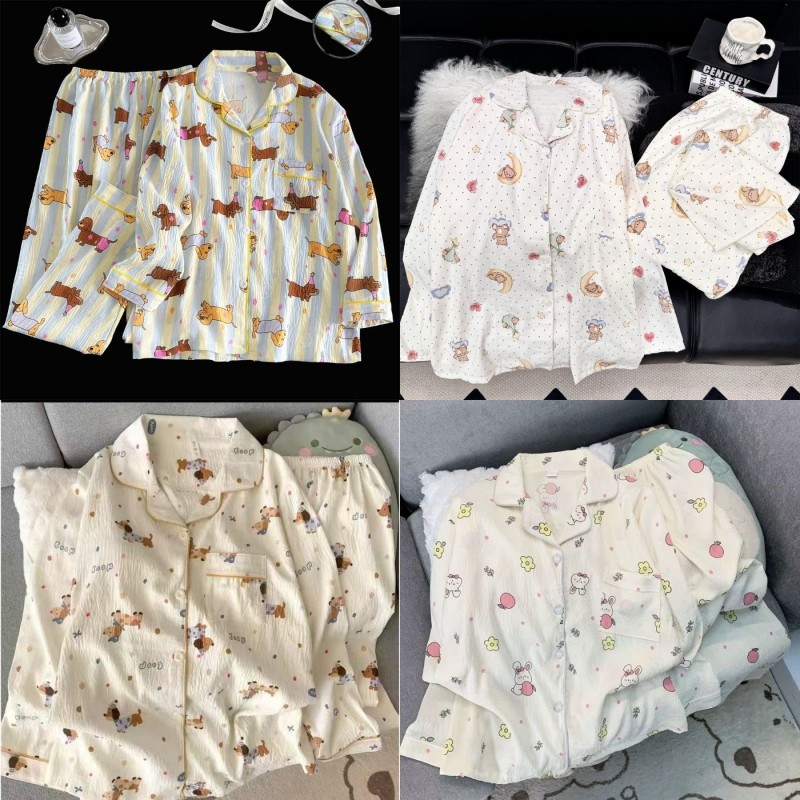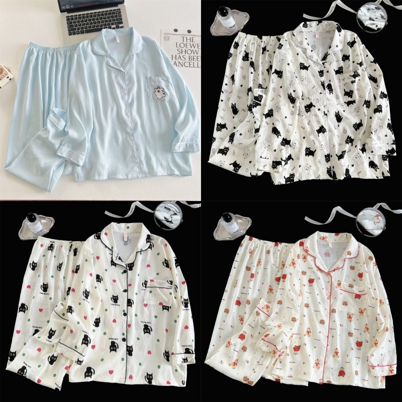 เซตชุดนอน ชุดนอนสตรี ประกอบด้วยคาร์ดิแกนแขนยาวและแจ็คเก็ตเมฆ จากผ้าฝ้าย กางเกงการ์ตูนพิมพ์ลายหวาน สวมใส่สบายทั้งบ้าน ผ้าใส่สบาย