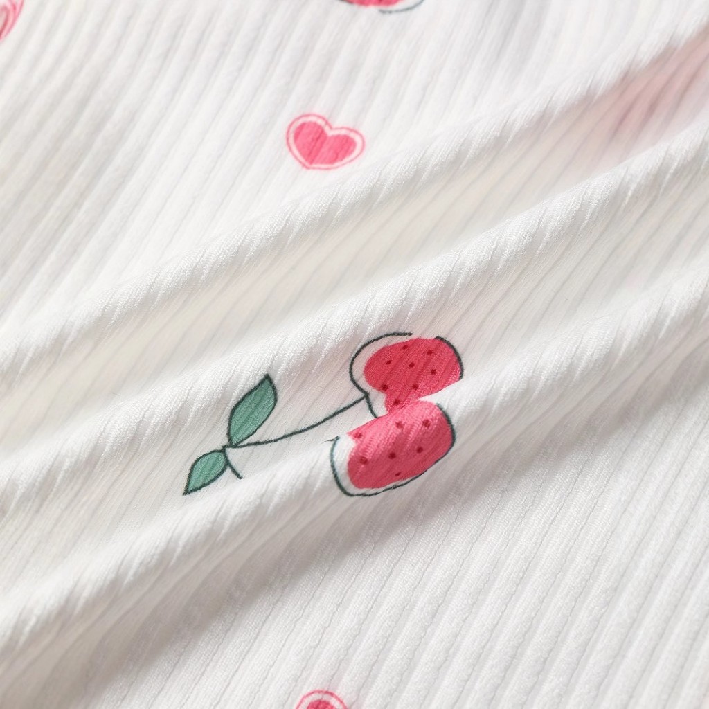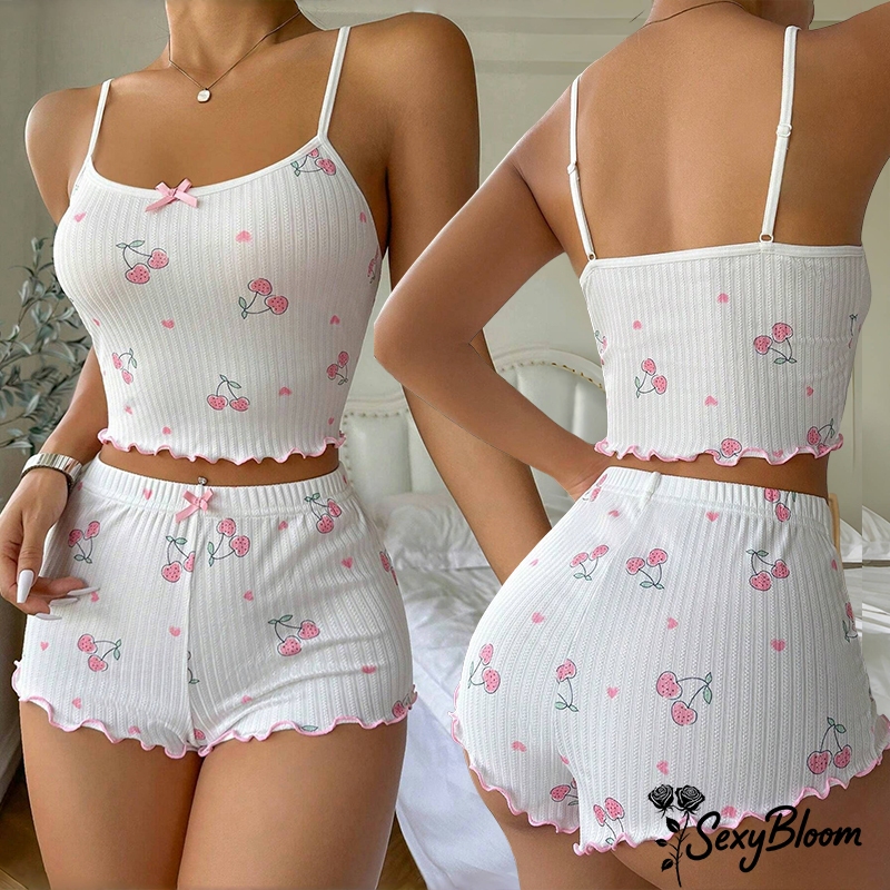🌹Sexy Bloom🌹คุณภาพดีและราคาถูก🍒🍒ชุดนอนน่ารัก ชุดนอน เสื้อกล้าม + กางเกงขาสั้น เนื้อนุ่ม ใส่สบาย ลายเชอร์รี่ S-L