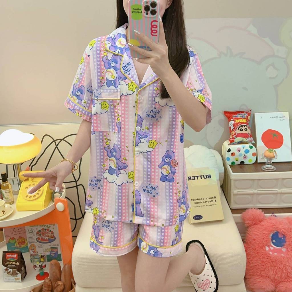 🌙จัดส่งทันที⭐เซตชุดนอน ชุดนอนผู้หญิง แขนสั้น+ขาสั้น ผ้าเด้ง ลายน่ารัก ผ้านิ่มใส่สบายมากค่ะ
