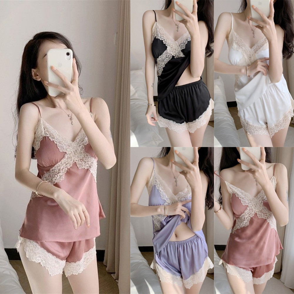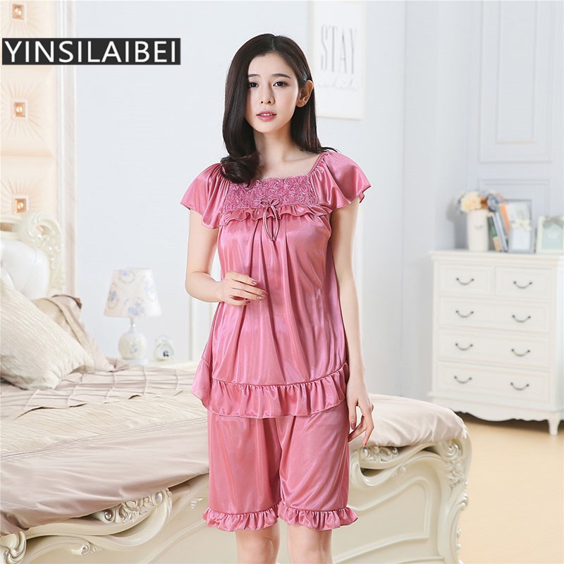ชุดนอน ผ้าไหมซาติน และกางเกงขาสั้น ขนาดใหญ่ เหมาะกับฤดูร้อน สําหรับผู้หญิง