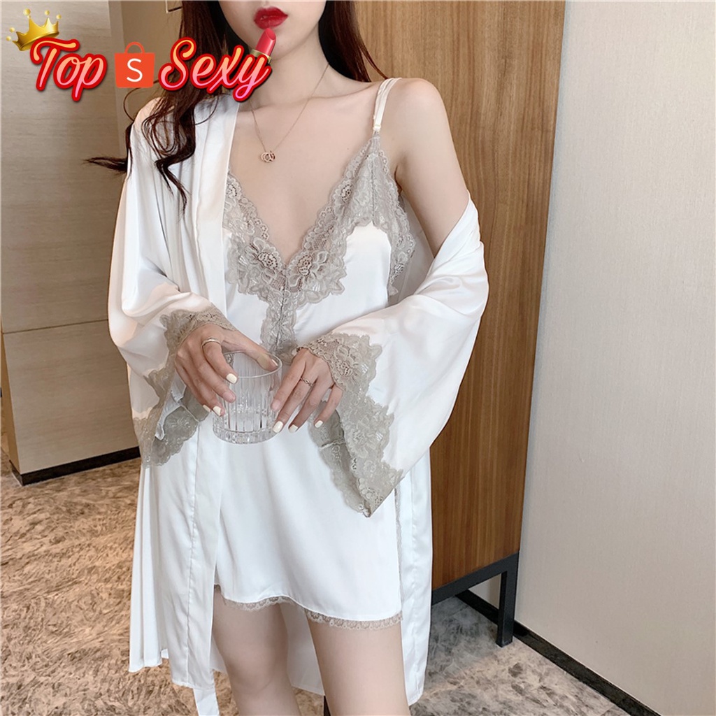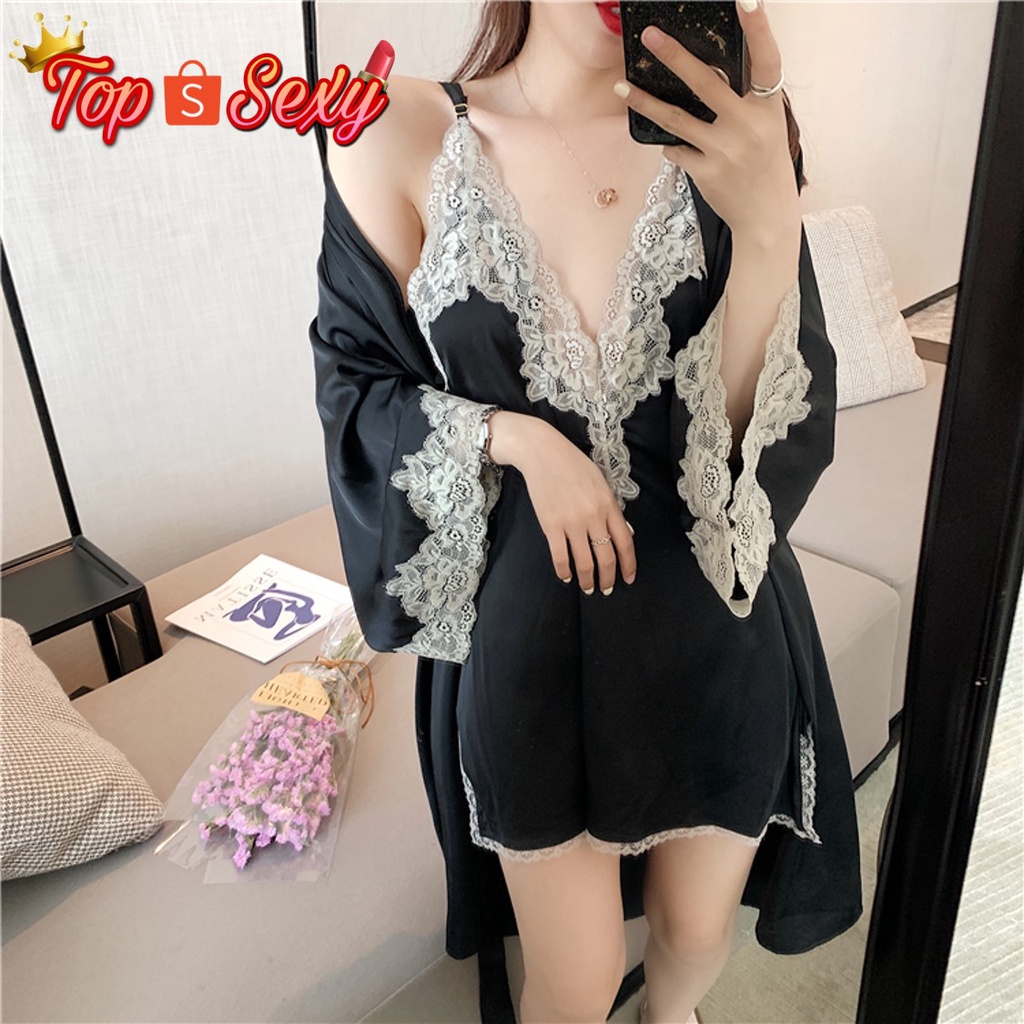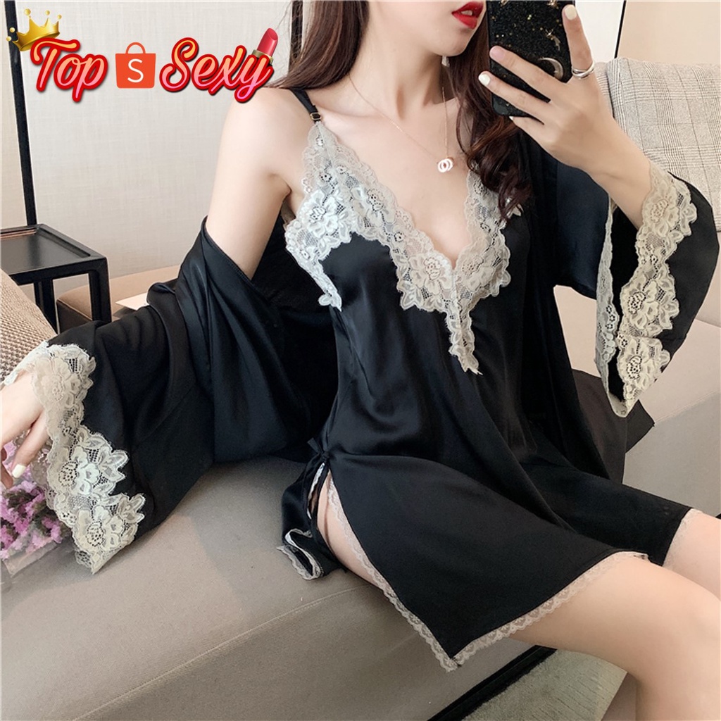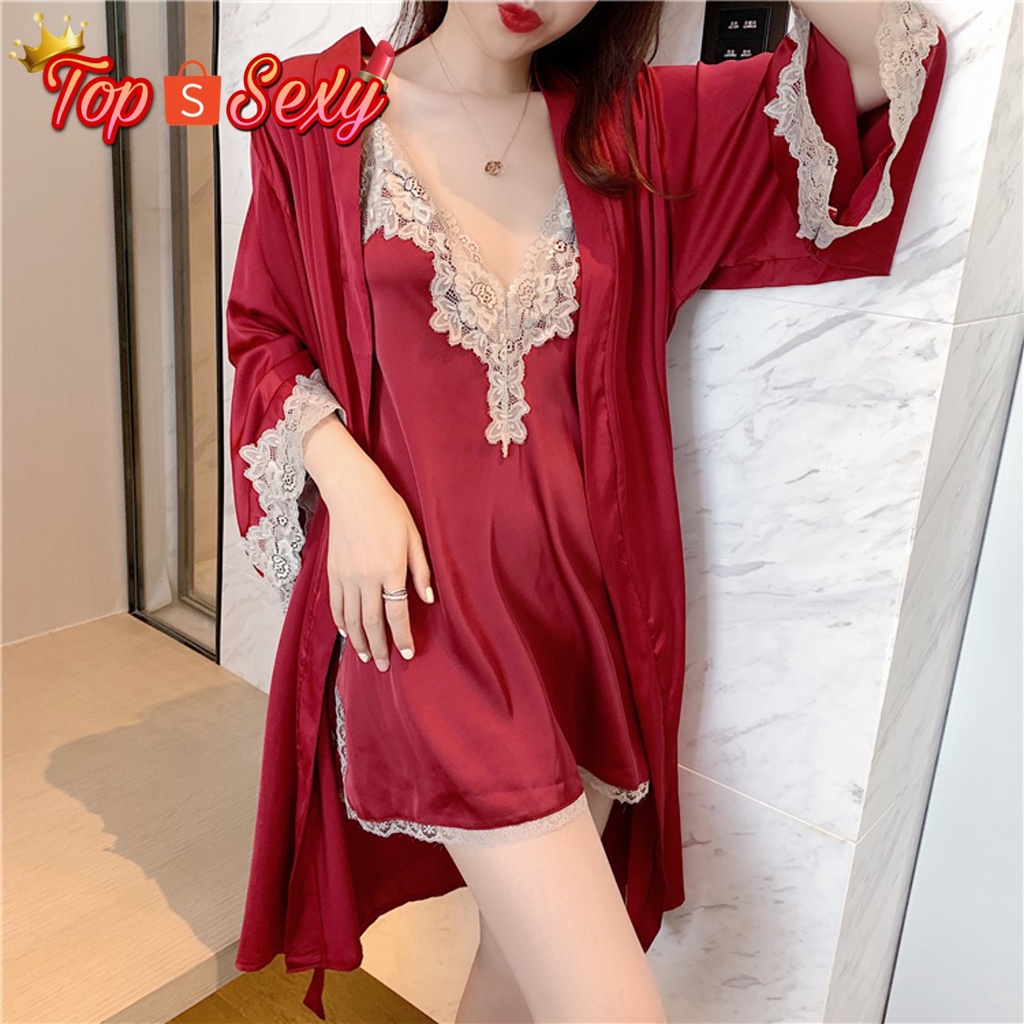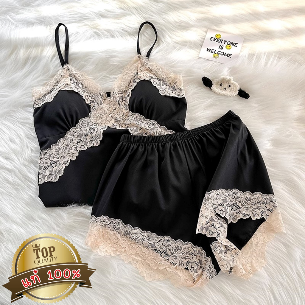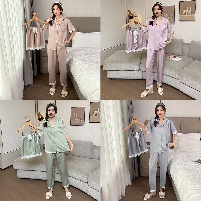 ชุดนอน ชุดนอน ผู้หญิง ชุดนอนสวยหรูดูแพง ชุดนอนไหมซาติน ชุดนนอน 3 ชิ้น เสื้อ+กางเกงขายาว+กางเกงขาสั้น สินค้าพร้อมส่ง