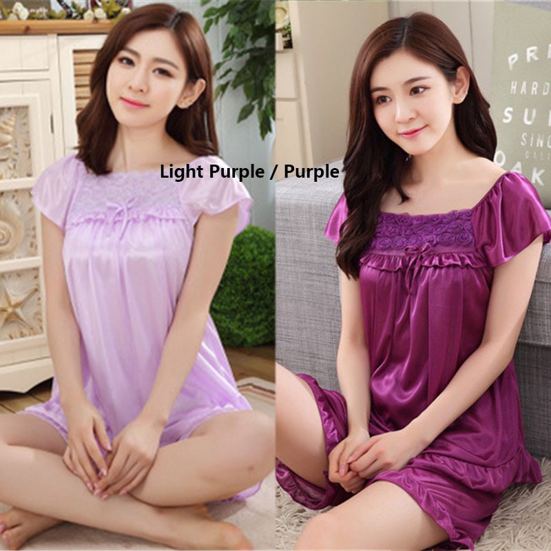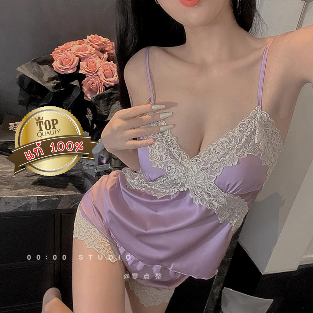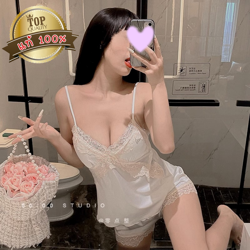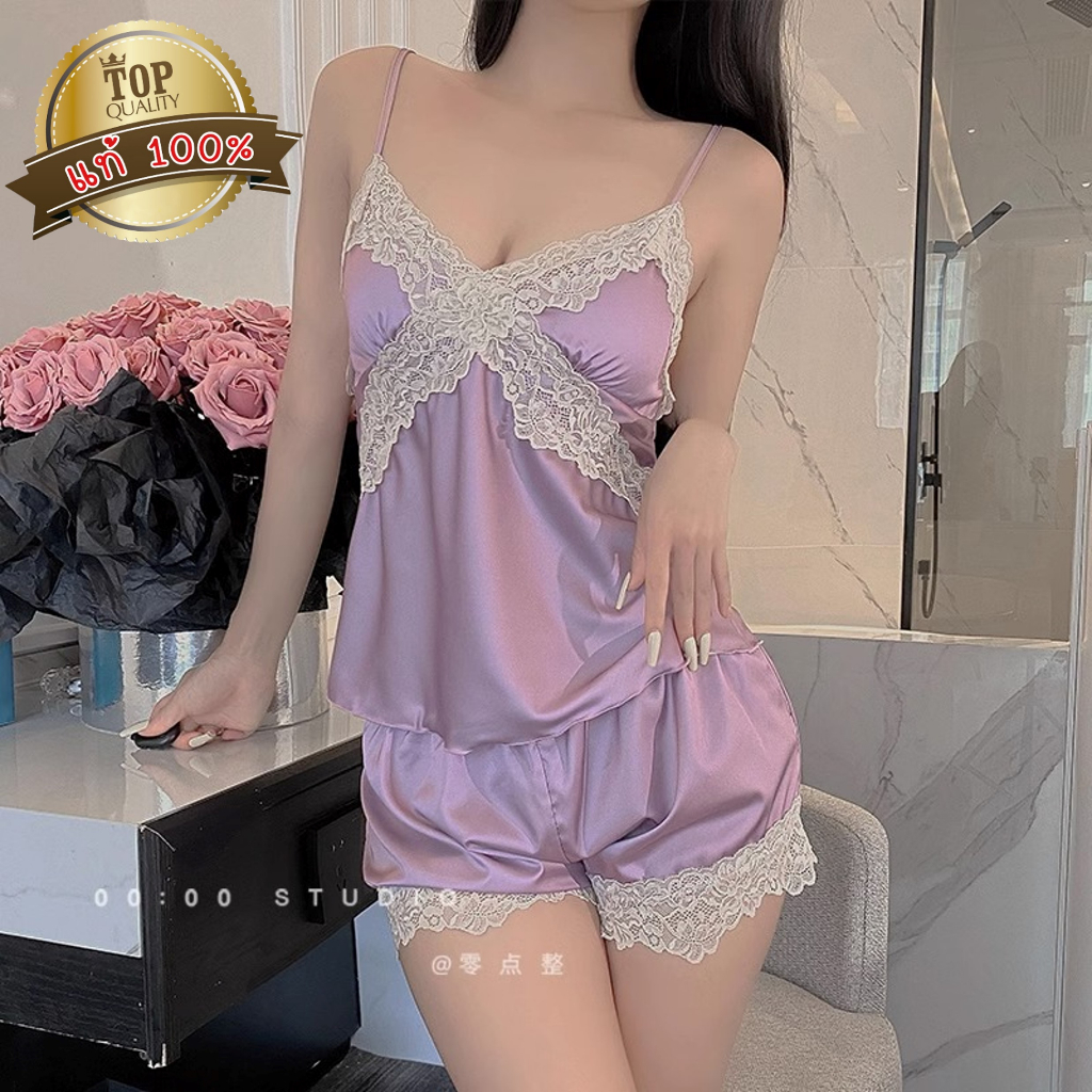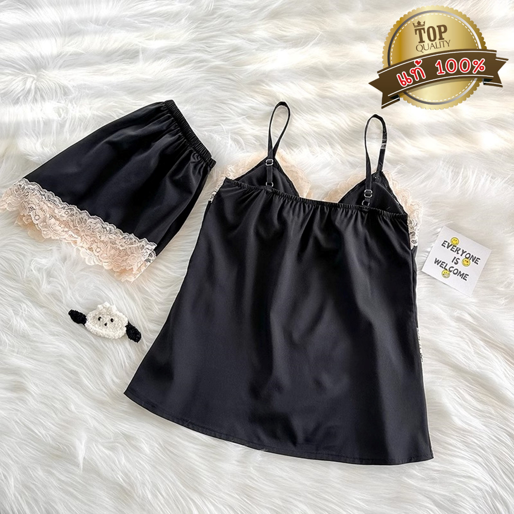 ชุดนอน ชุดนอนสายเดี่ยว+ขาสั้น เนื้อผ้าซาตินอย่างดี ยืดนุ่ม ใส่ง่าย ไซต์ใหญ่ ชุดนอนแนวเซ็กซี่ QQ41
