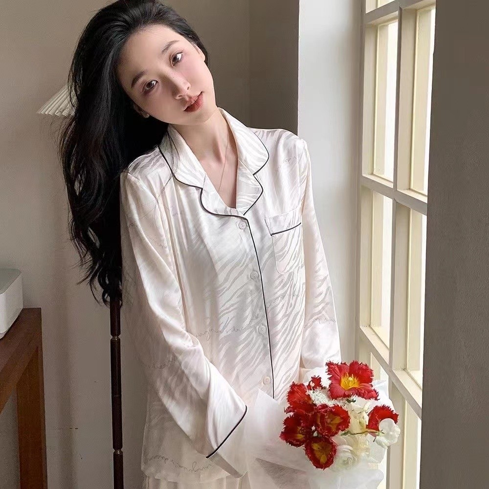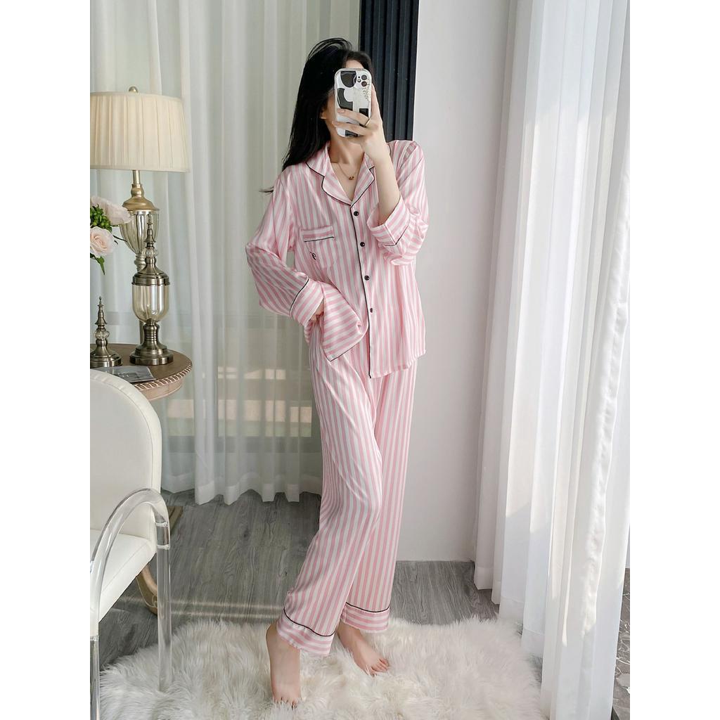 ชุดนอน เสื้อคาร์ดิแกน แขนยาว ผ้าเรยอน พิมพ์ลายทาง แบบบาง แฟชั่นสไตล์เกาหลี สําหรับผู้หญิง