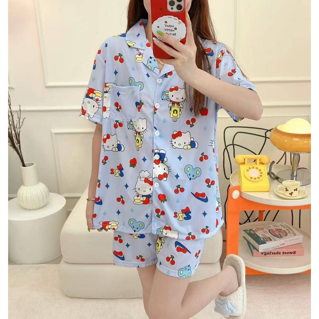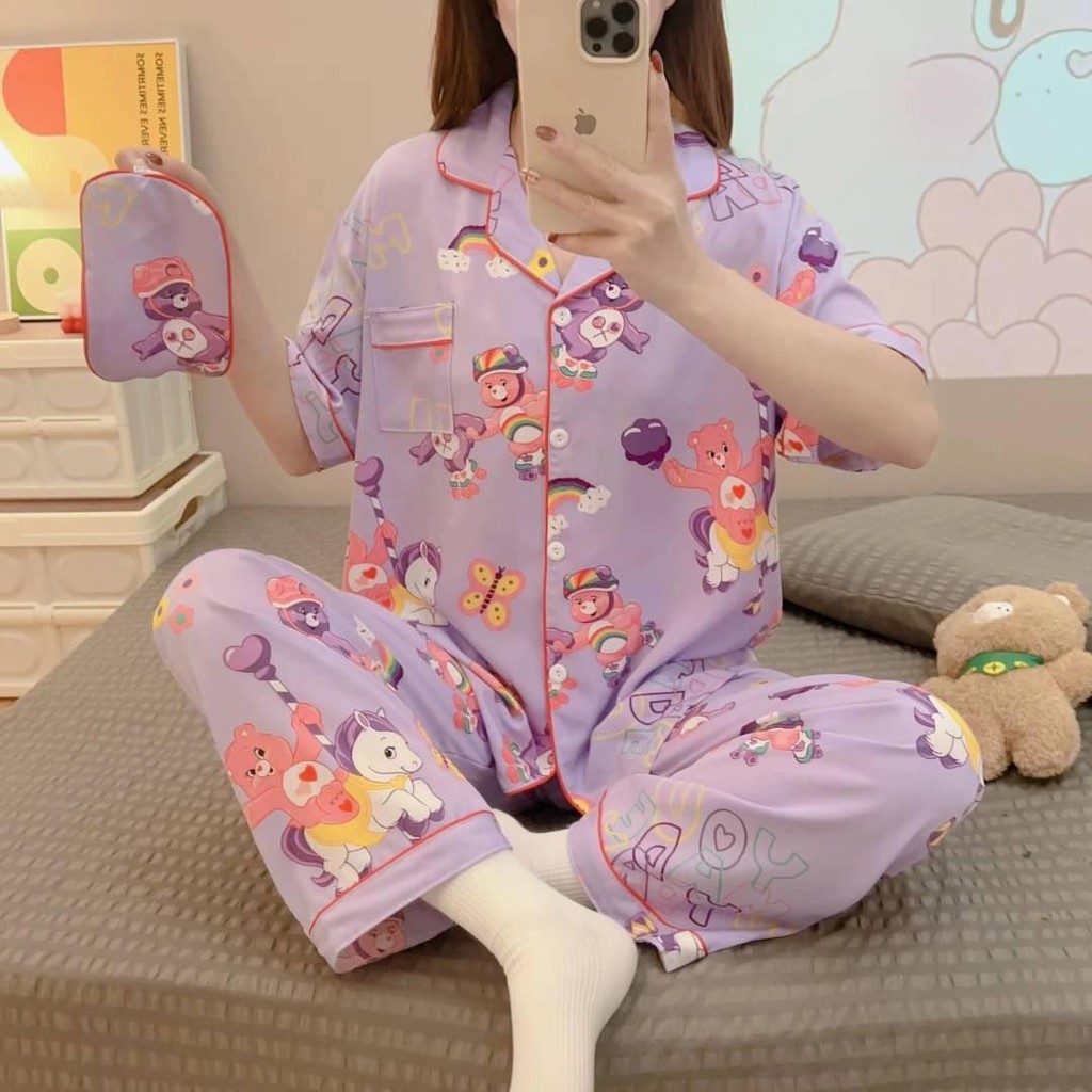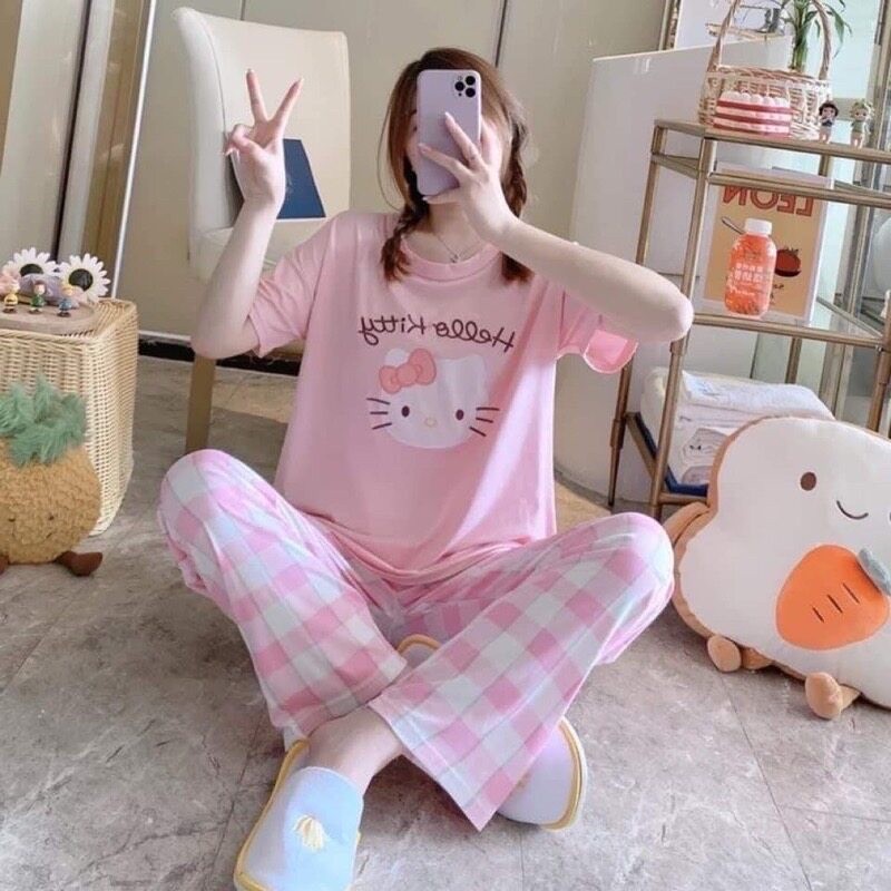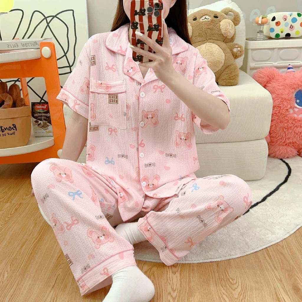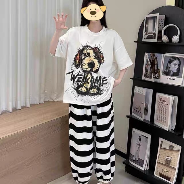 ชุดนอน เซ็ต2ชิ้น เสื้อแขนสั้น-กางเกงขายาว ฟรีไซส์ ลายการ์ตูนน่ารักๆ ผ้านิ่ม ใส่สบาย พร้อมส่ง