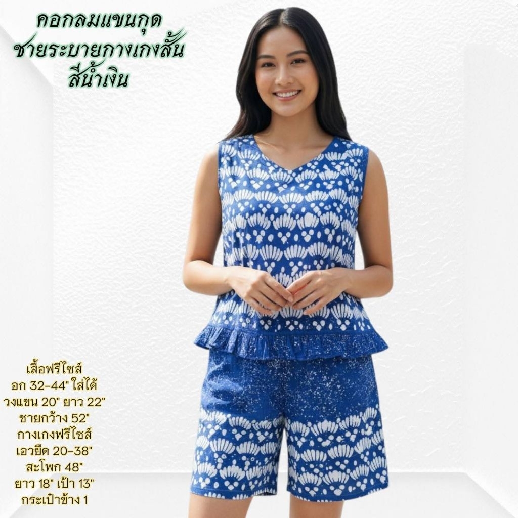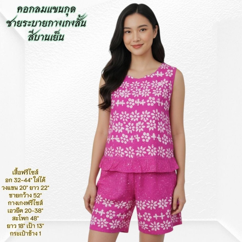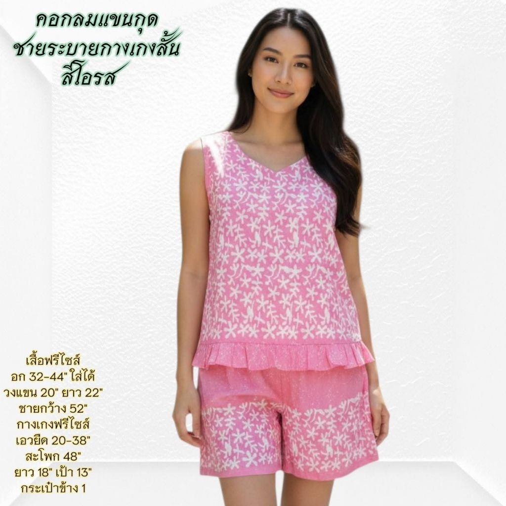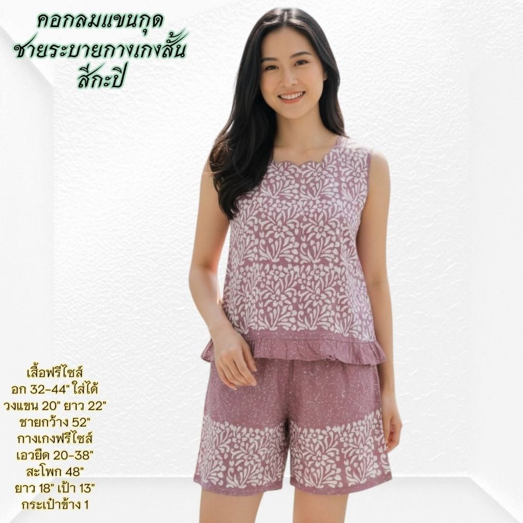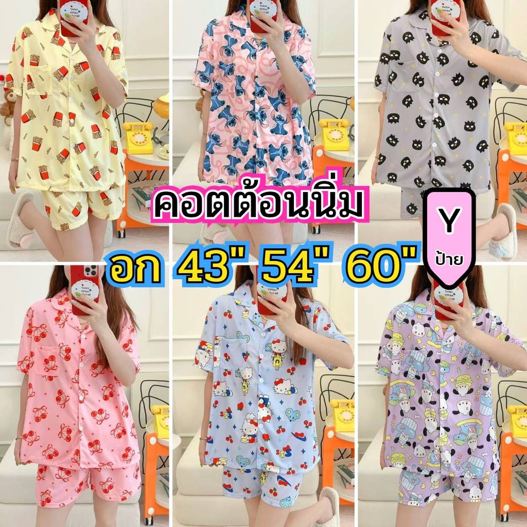 ชุดนอน ผ้าชิโนริ แขนสั้นขาสั้น/แขนสั้นขายาว (รอบอก44 นิ้ว) มีให้เลือกหลายแบบ