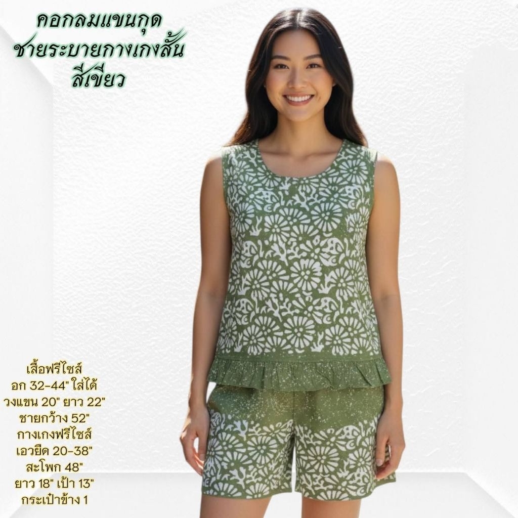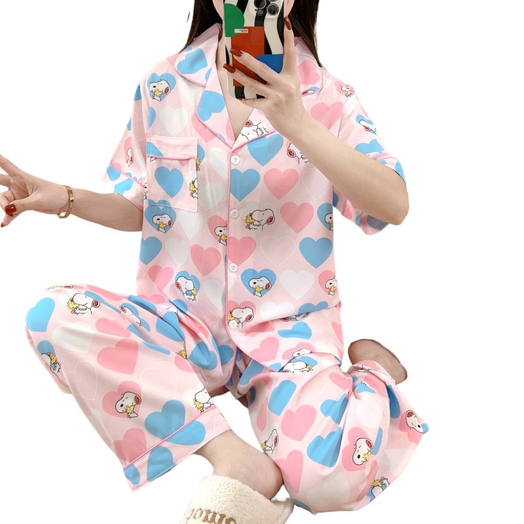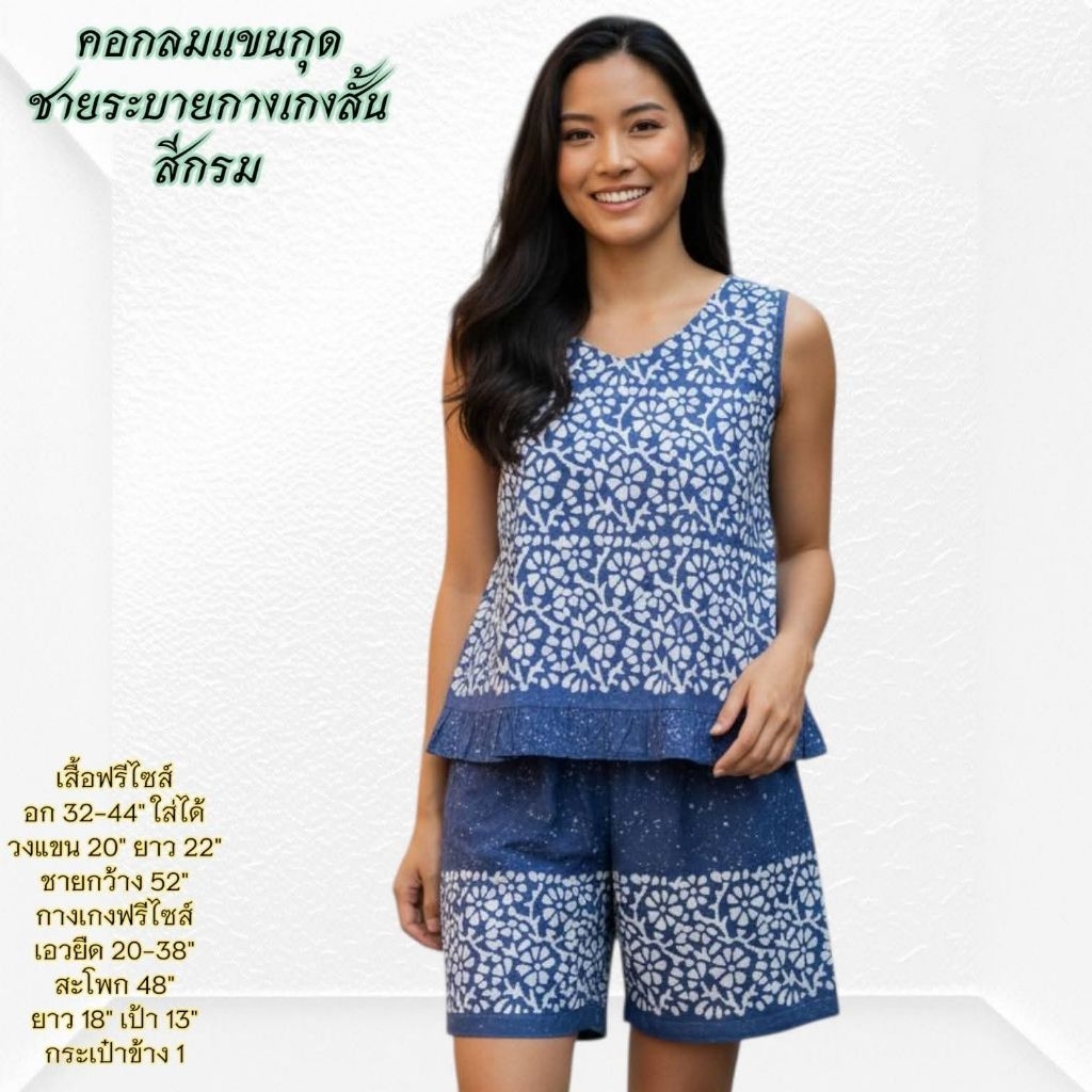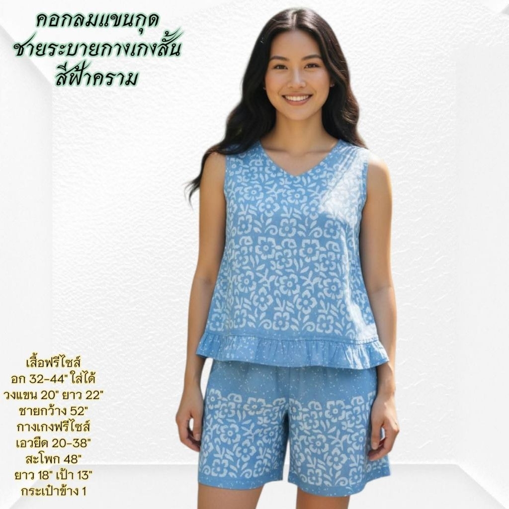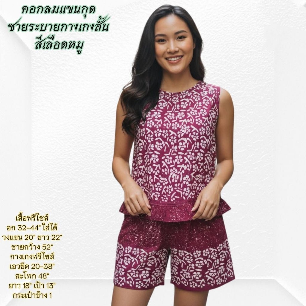 ชุดนอน ผ้าชิโนริ แขนสั้นขาสั้น/แขนสั้นขายาว (รอบอก44 นิ้ว) มีให้เลือกหลายแบบ
