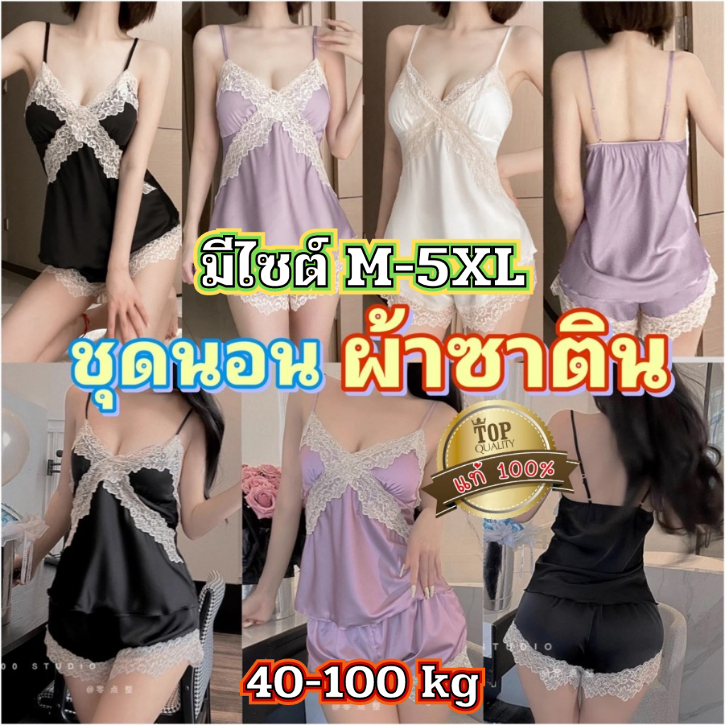 ชุดนอน ชุดนอนซาติน 👑เกรดแท้พรีเมี่ยม 💥มีไซต์ใหญ่ M-5XL ได้ถึง 40-100kg พร้อมส่งS-862