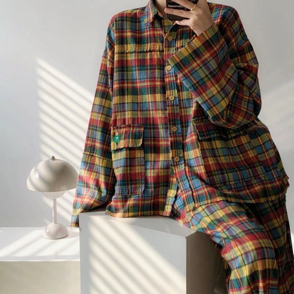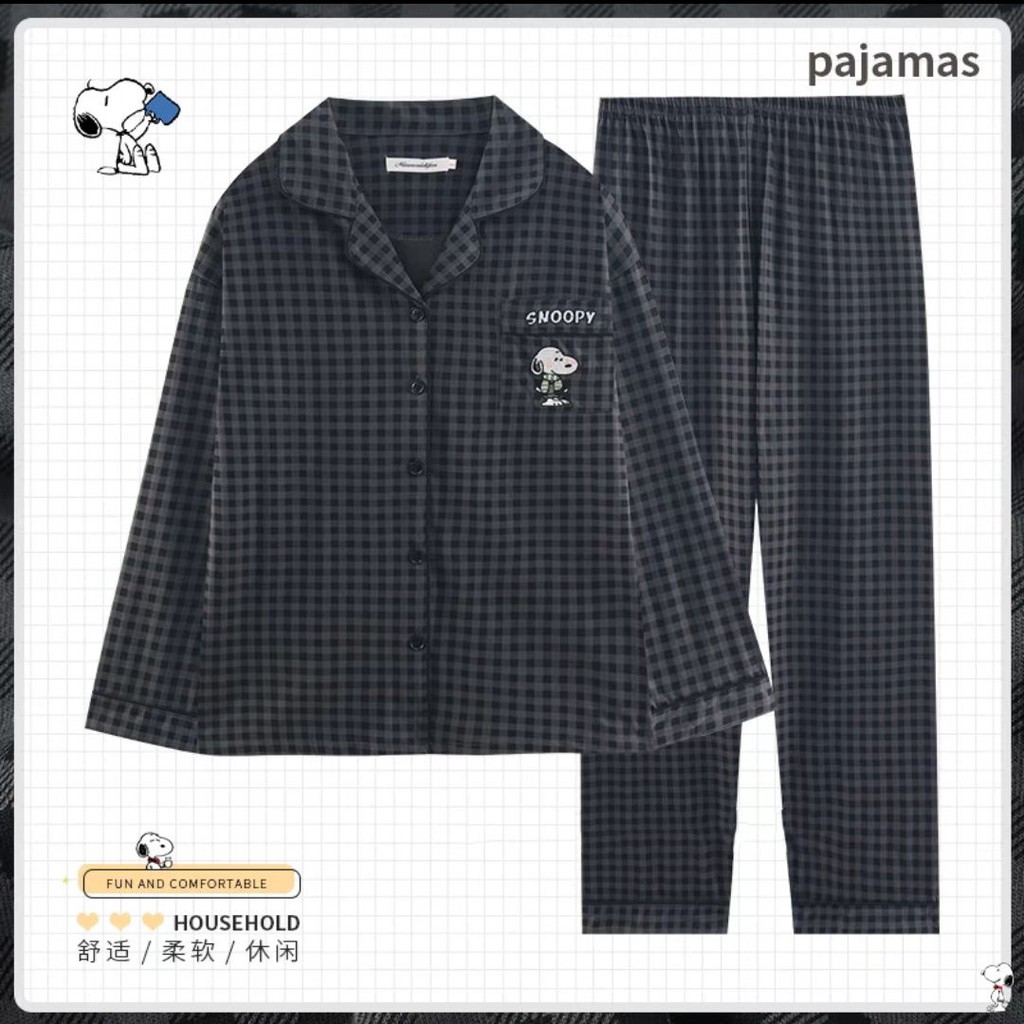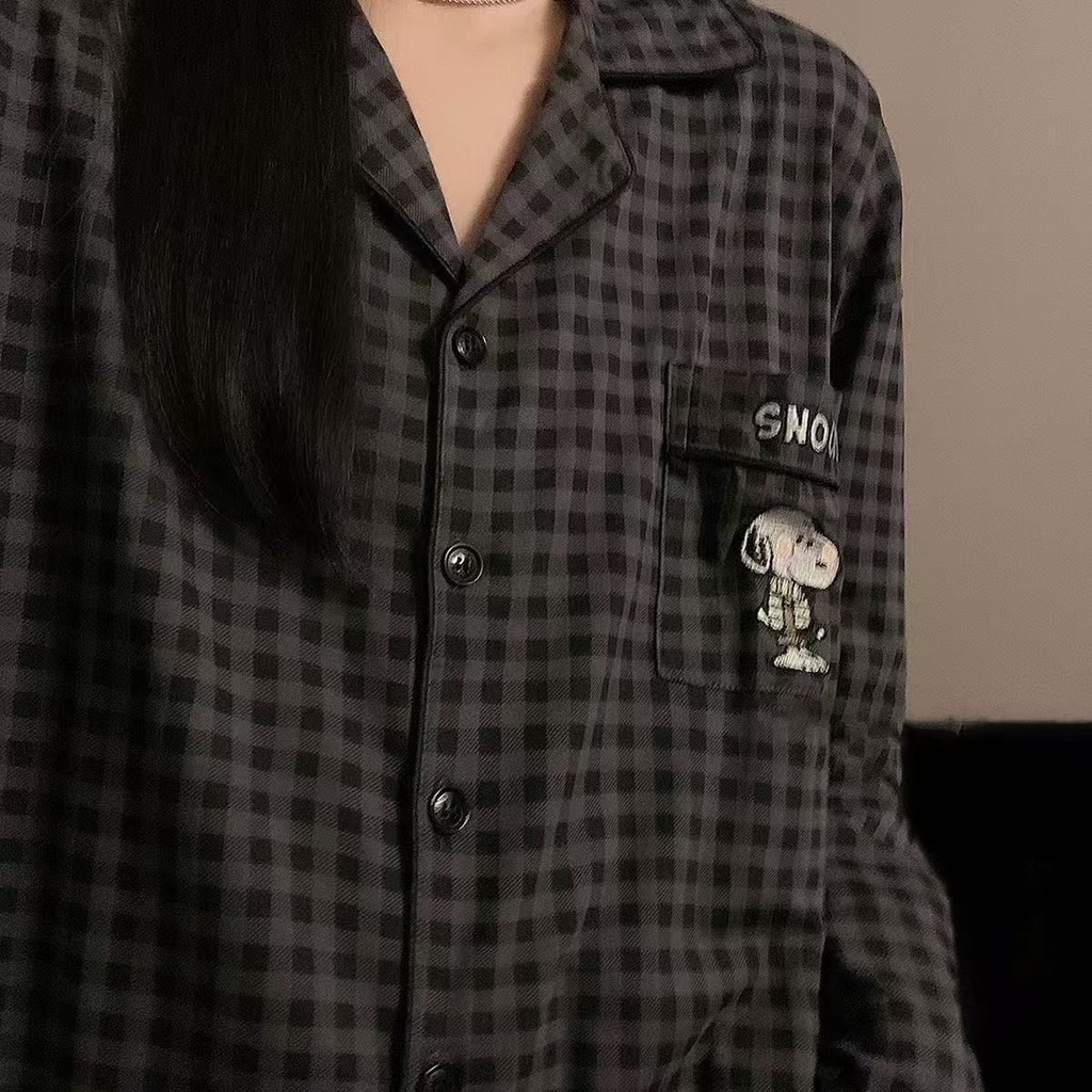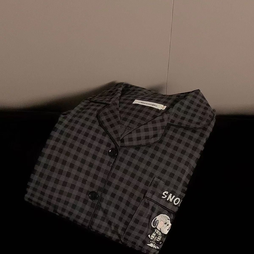 ชุดนอนผู้หญิงญี่ปุ่นฤดูใบไม้ผลิและฤดูใบไม้ร่วงเย็บลายสก๊อตสีหวานย้อนยุคกางเกงขายาวแขนยาวออกเสื้อผ้าที่บ้าน