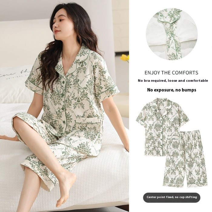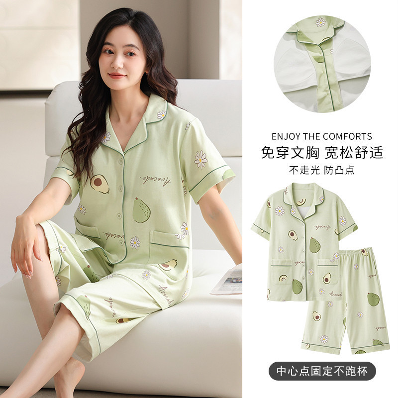 ชุดนอนสตรีแขนสั้น3/4 ผ้าฝ้ายคุณภาพ ทรงหลวมสำหรับฤดูร้อน, เบาะชุดนอนผู้หญิงผ้าฝ้าย 100% ขนาดชุดนอนชุดแขนสั้น